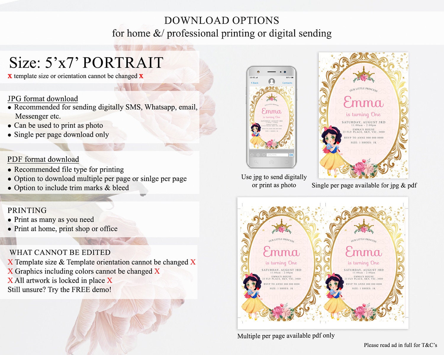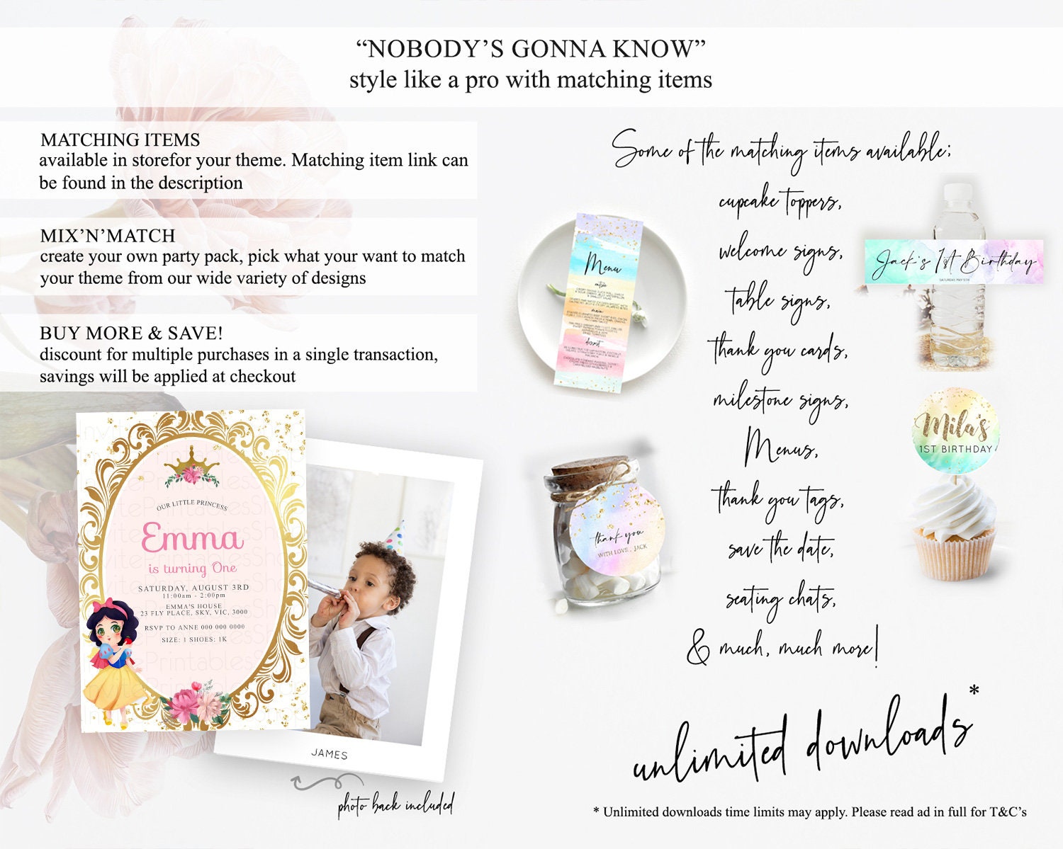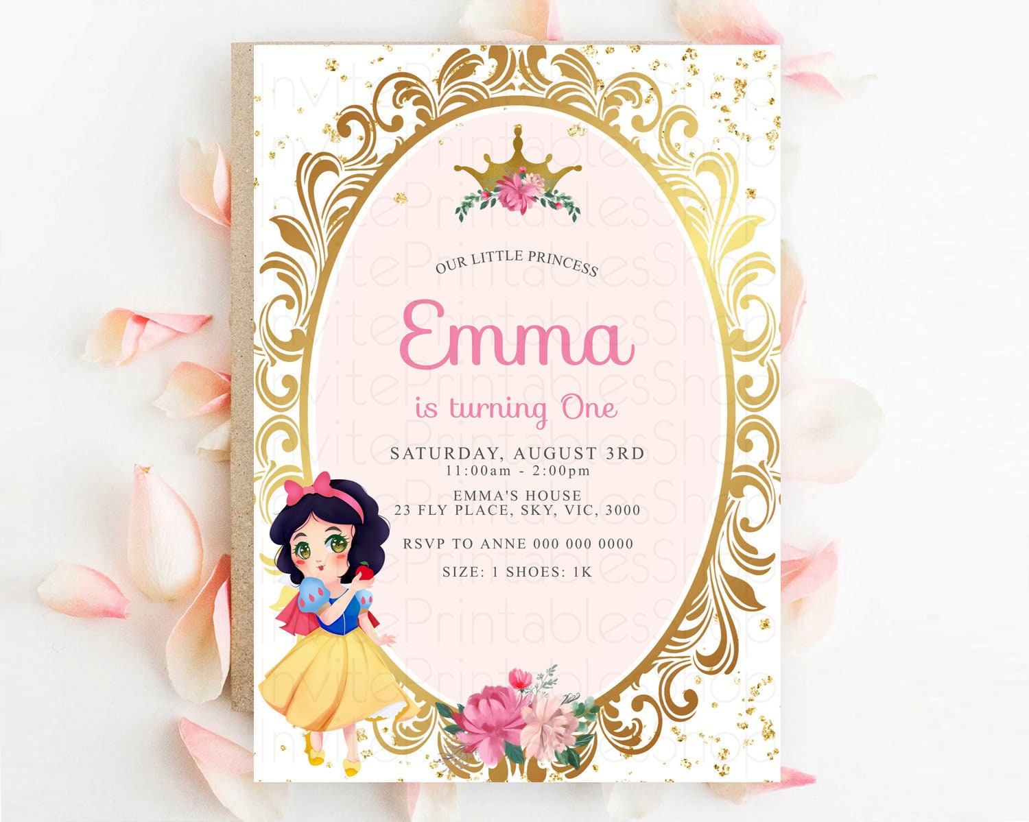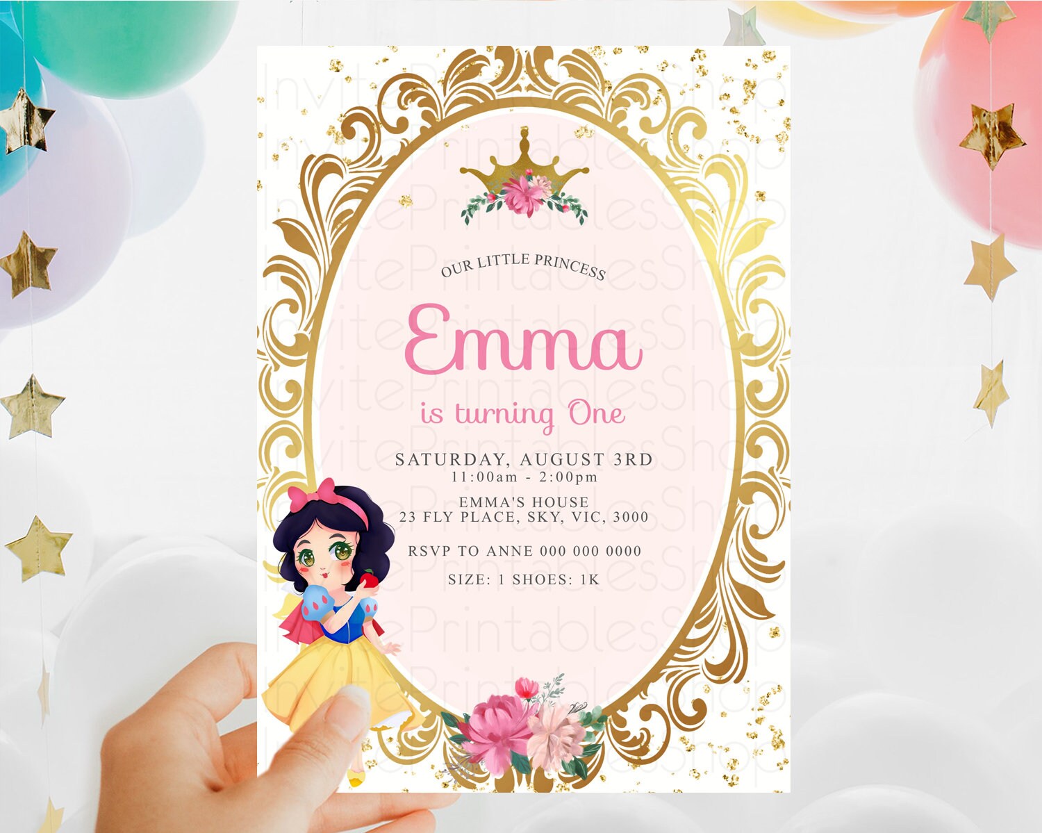 Princess Birthday Invitation Castle Invitation Royal Birthday Fairy Tale Enchanted Mirror Pastel Floral Garden 1st First Birthday D10127