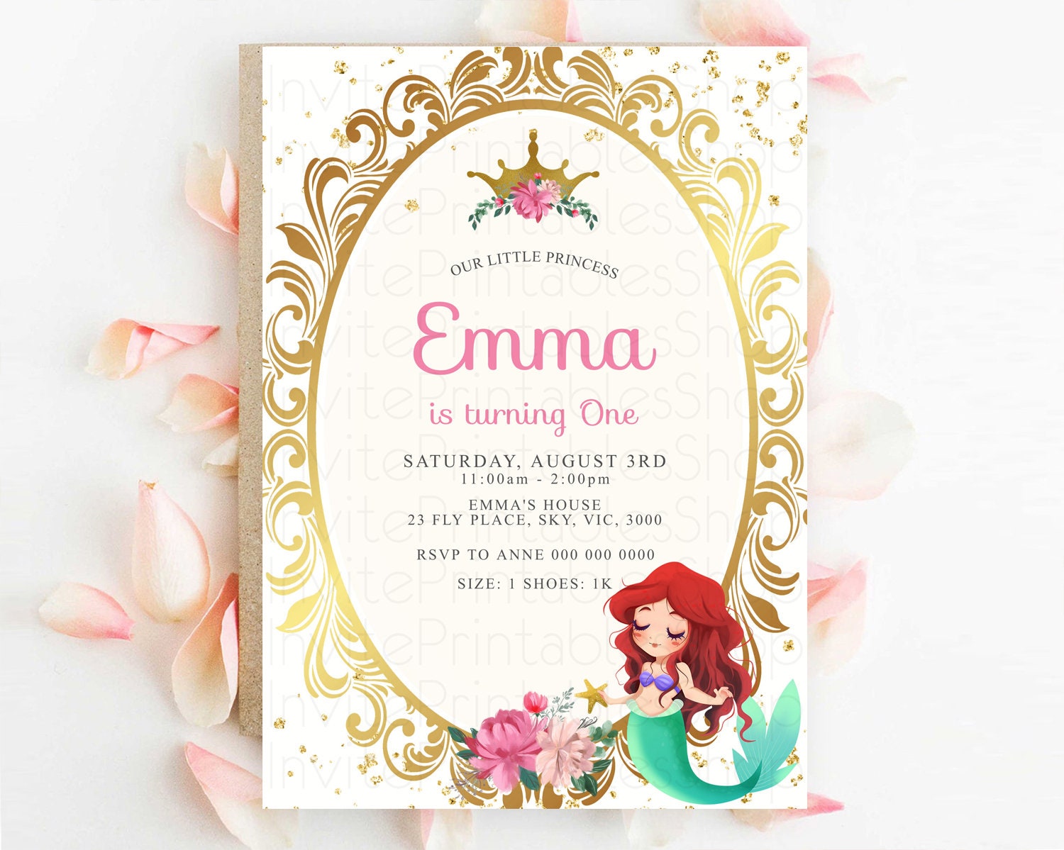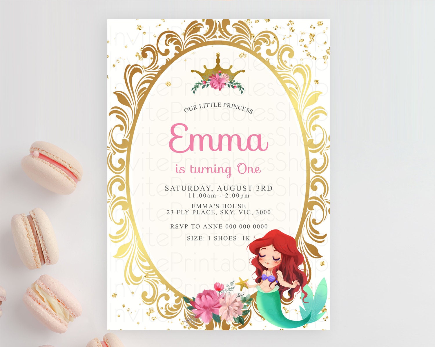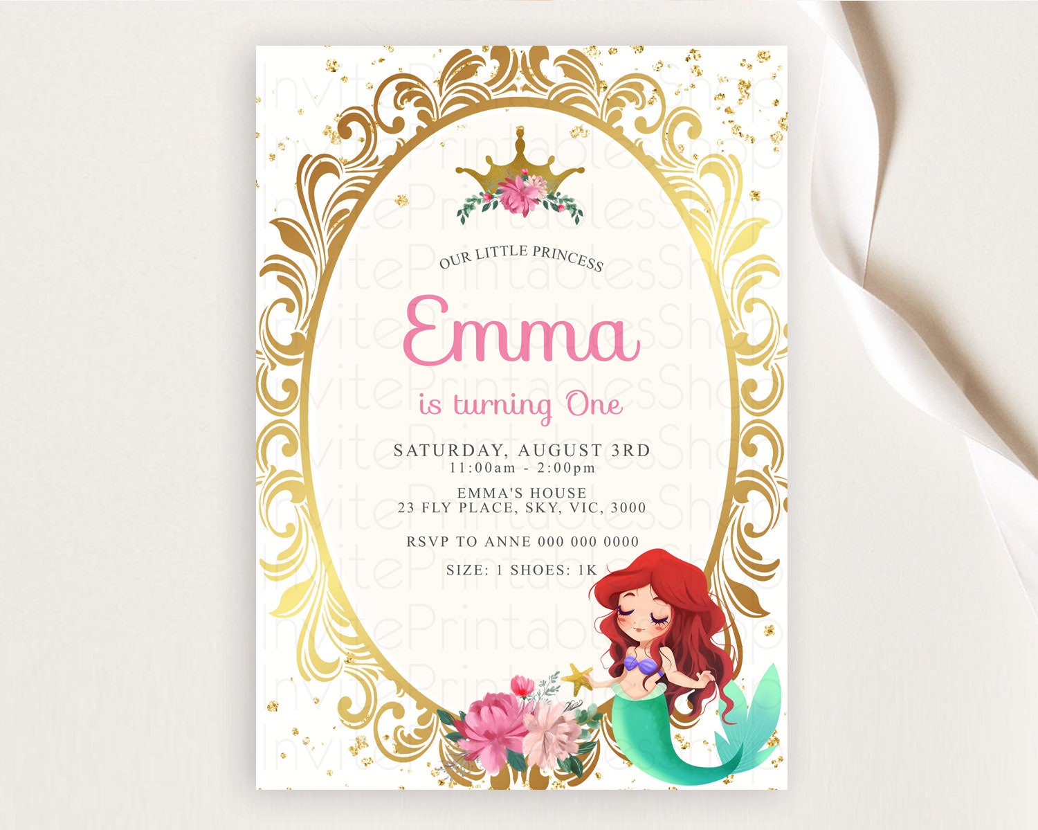 Princess Birthday Invitation Castle Invitation Royal Birthday Fairy Tale Enchanted Mirror Pastel Floral Garden 1st First Birthday D10133