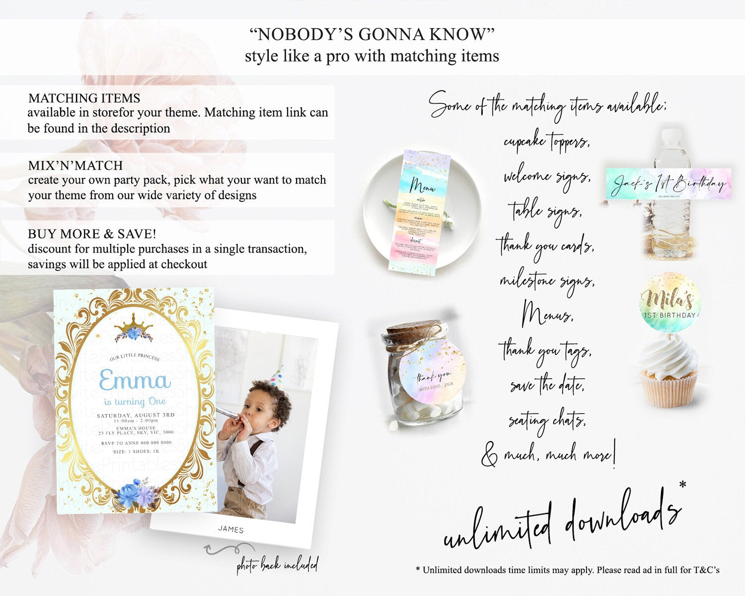 Princess Birthday Invitation Castle Invitation Royal Birthday Fairy Tale Enchanted Mirror Pastel Floral Garden 1st First Birthday D10137