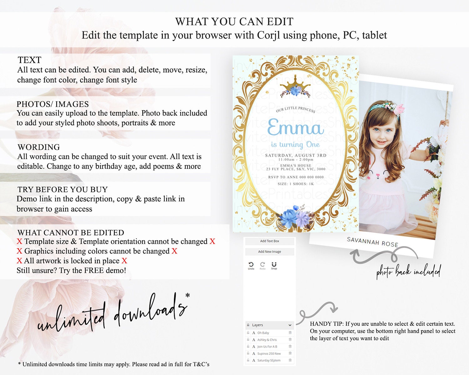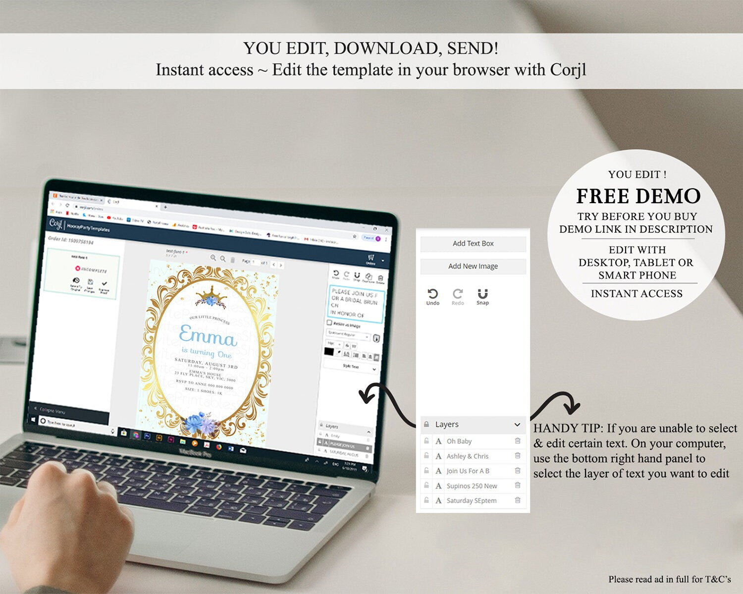 • After purchase, Corjl emails your editing link. Allow up to 15 minutes for delivery.