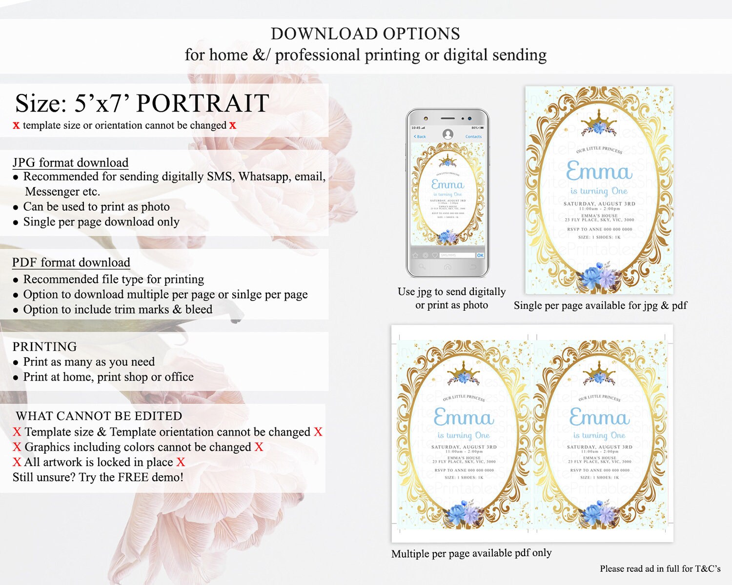 • Template size & orientation cannot be changed. Please use the demo link to confirm this product suits your needs.