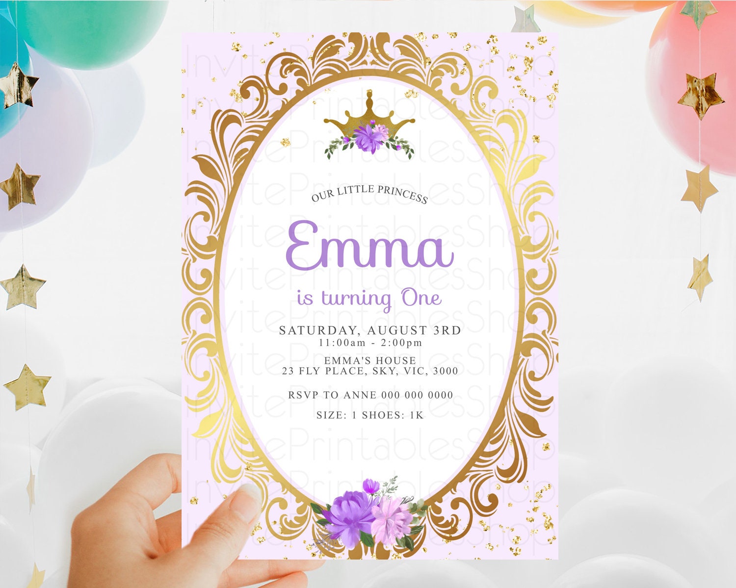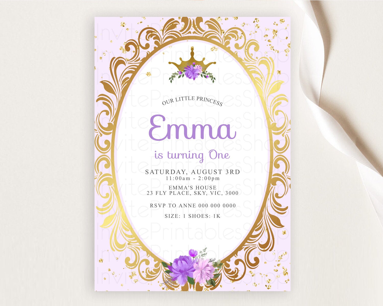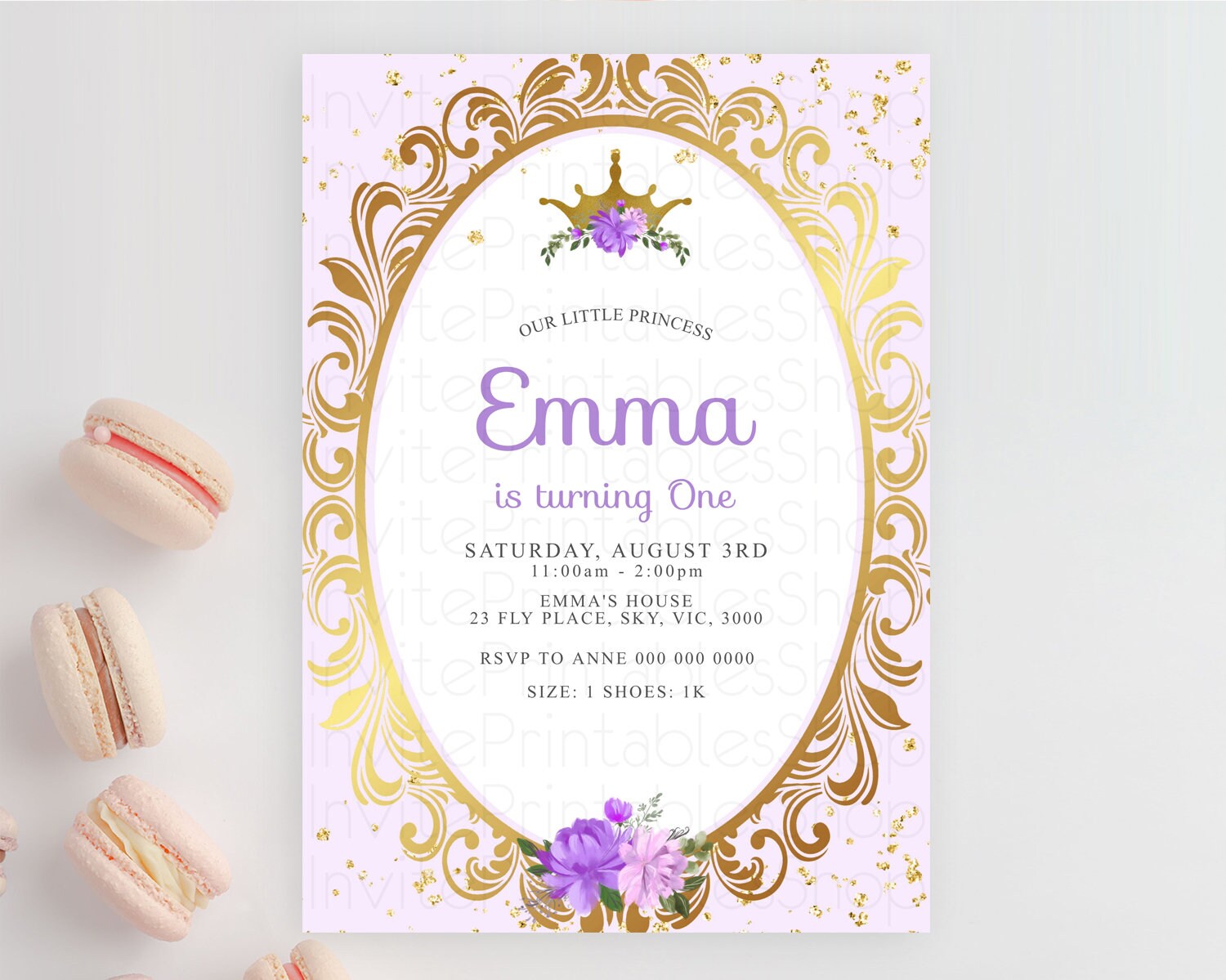 Princess Birthday Invitation Castle Invitation Royal Birthday Fairy Tale Enchanted Mirror Pastel Floral Garden 1st First Birthday D10138