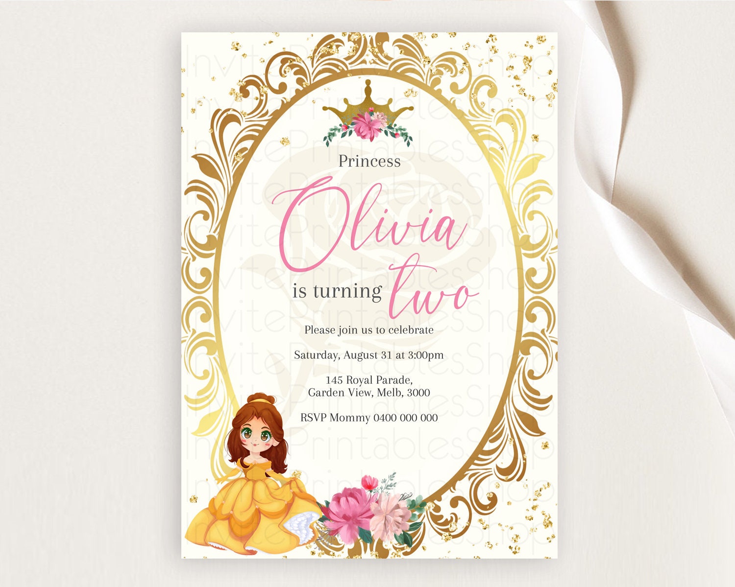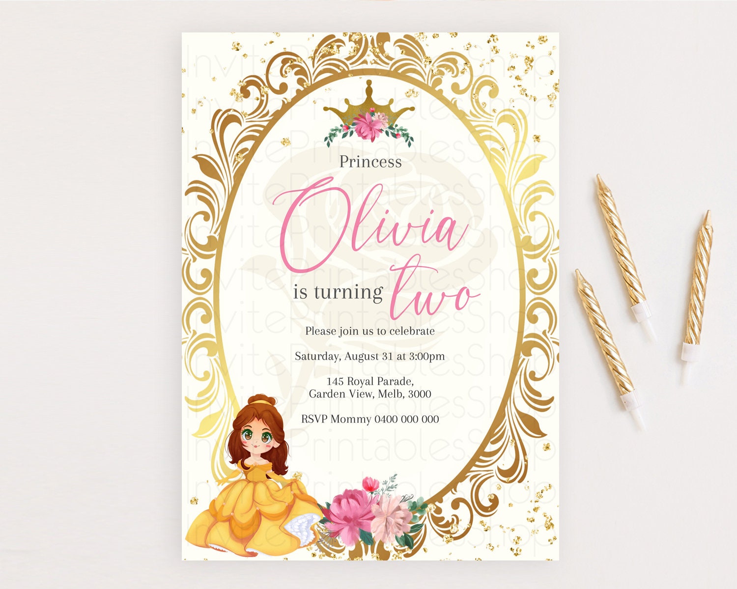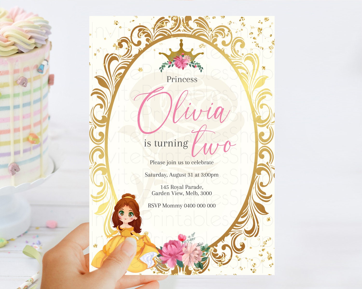 Princess Birthday Invitation Castle Invitation Royal Birthday Fairy Tale Enchanted Mirror Pastel Floral Garden 1st First Birthday D10739