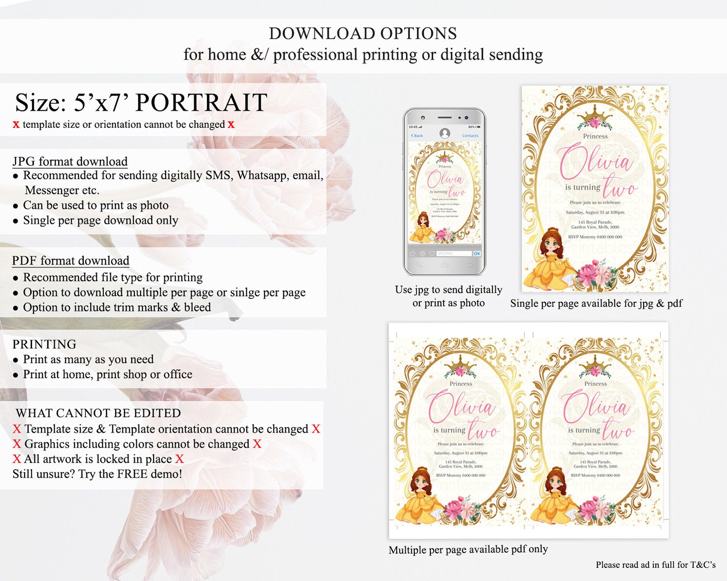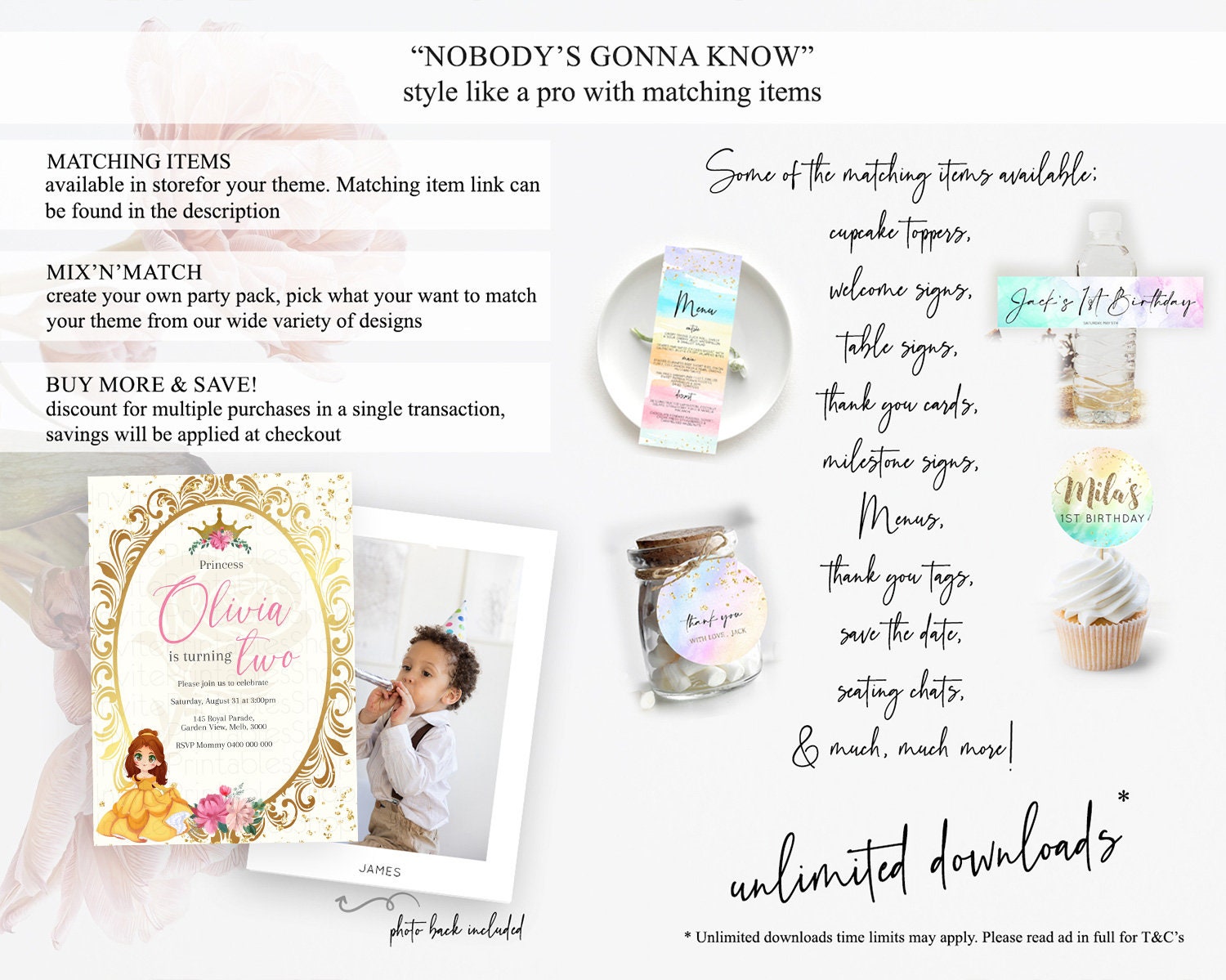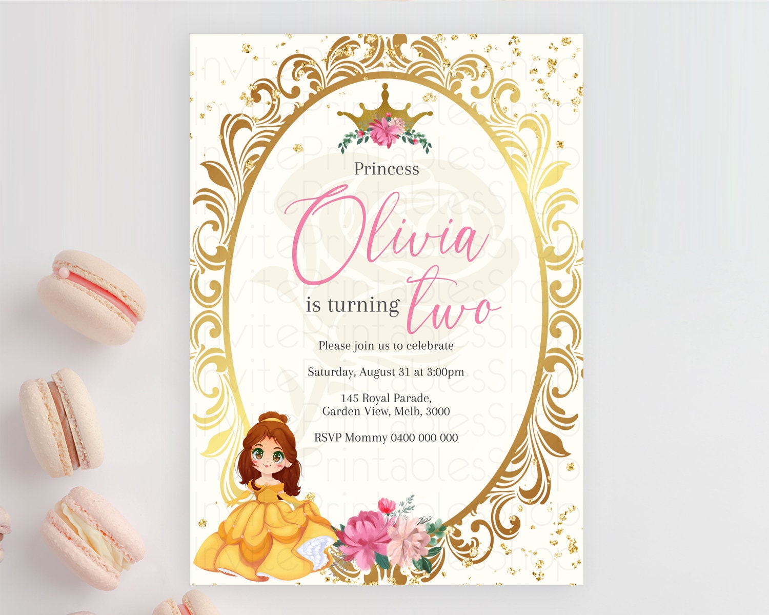 Princess Birthday Invitation Castle Invitation Royal Birthday Fairy Tale Enchanted Mirror Pastel Floral Garden 1st First Birthday D10739