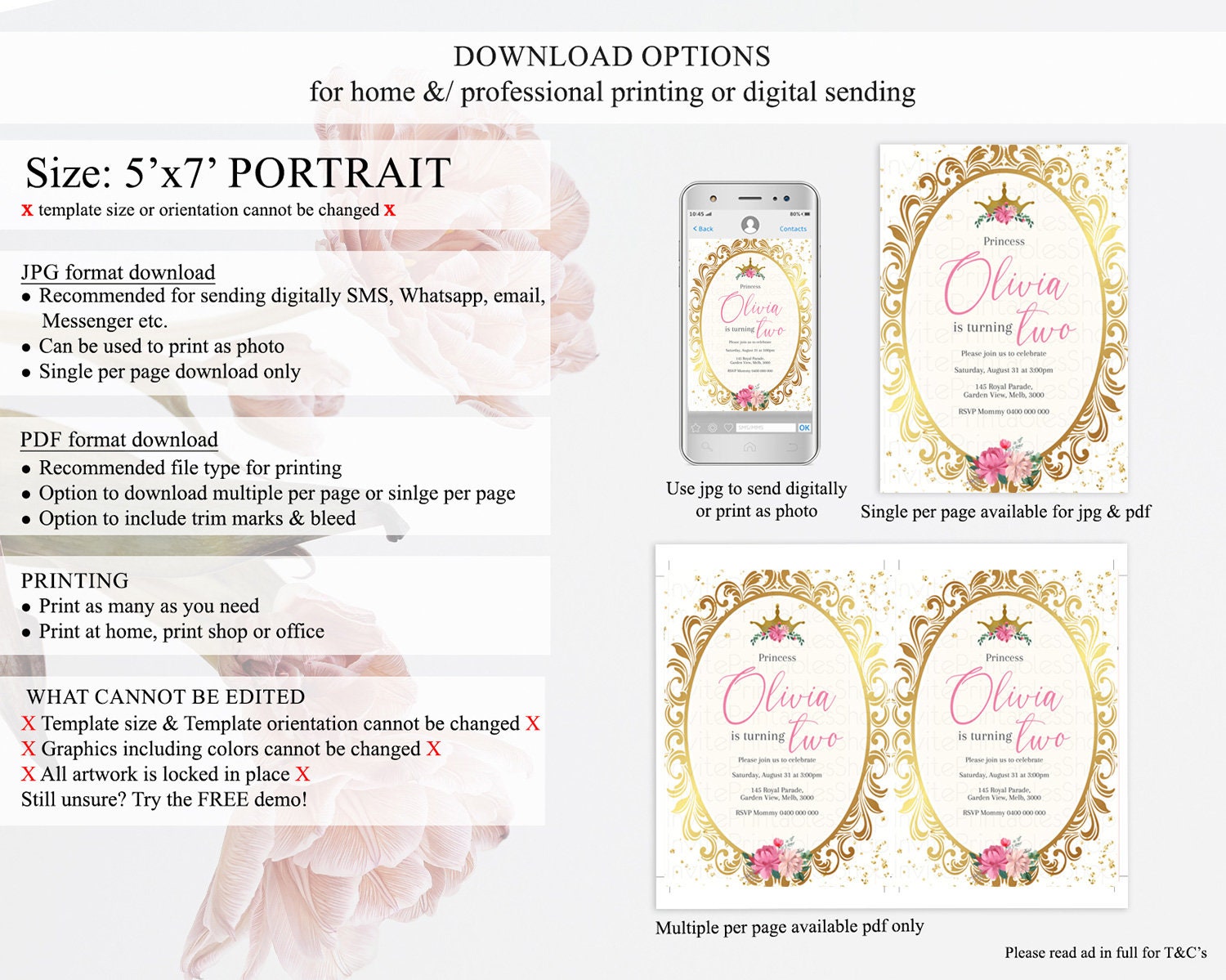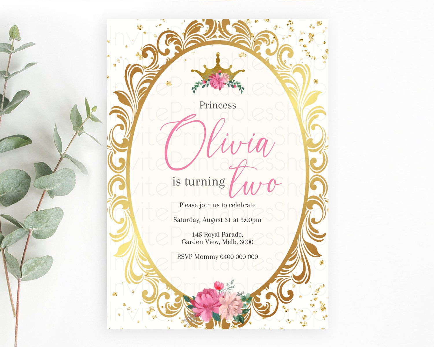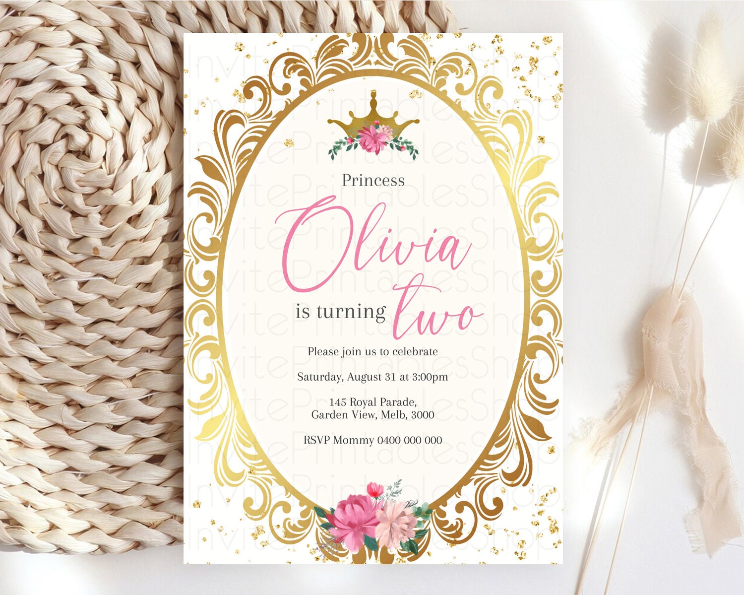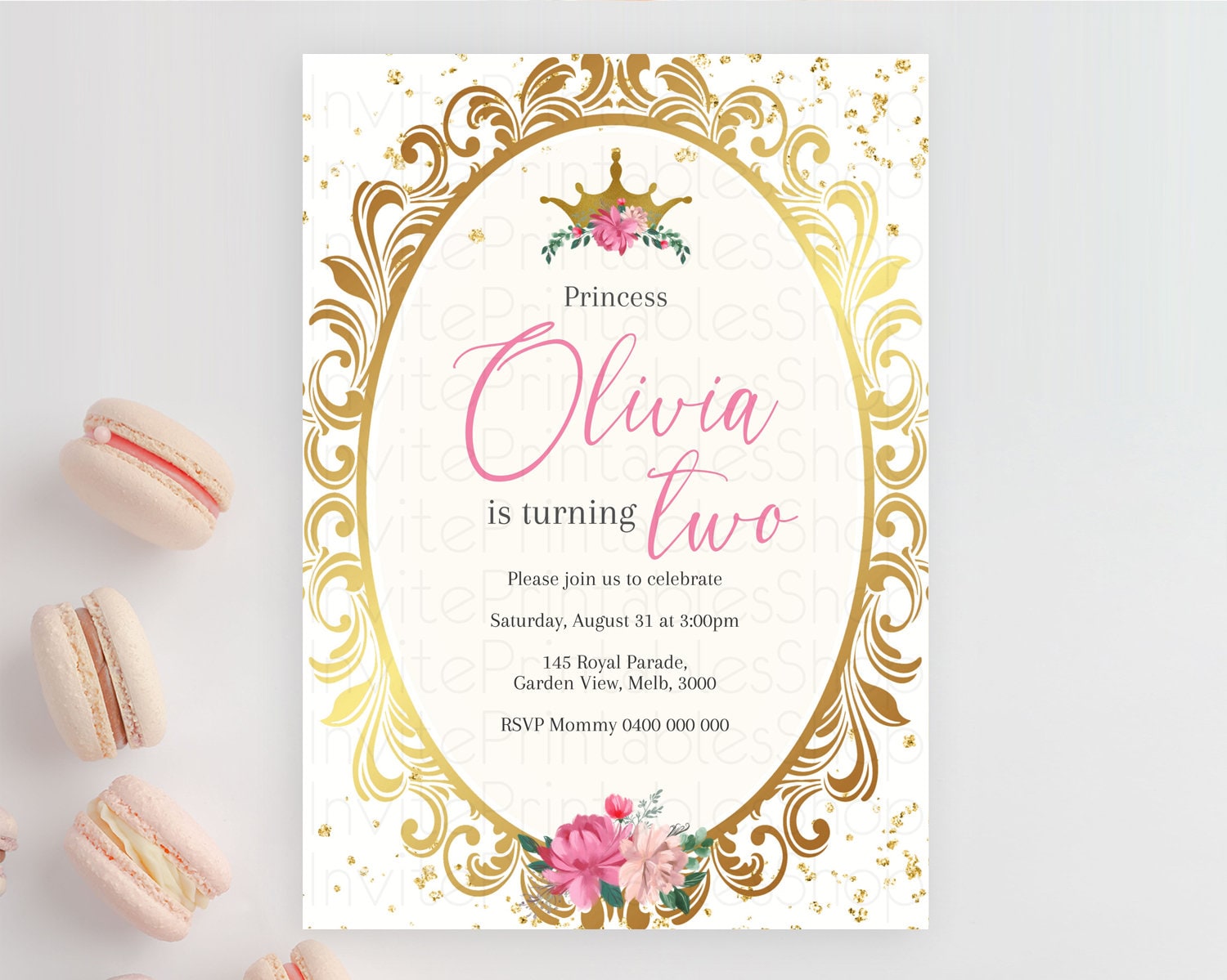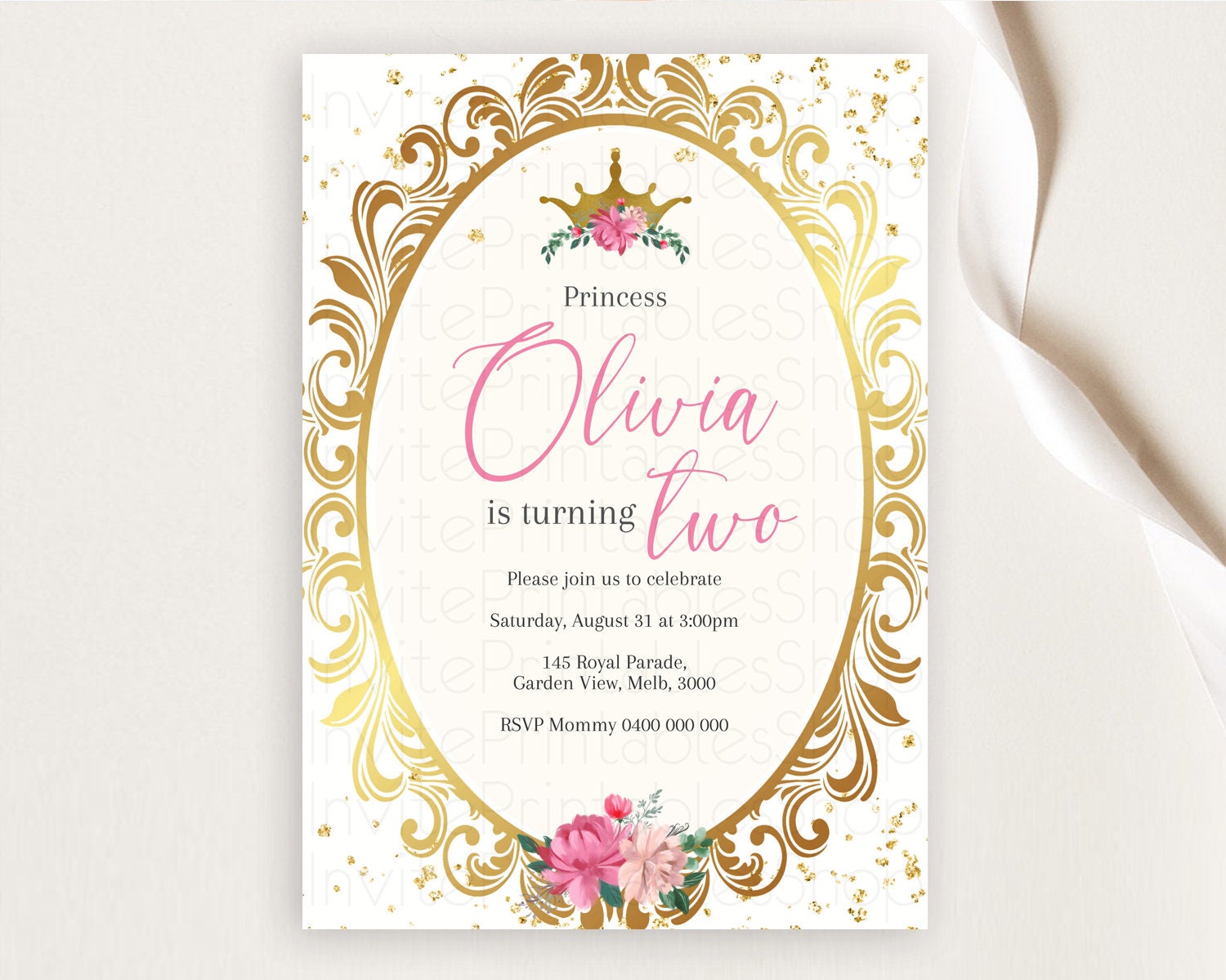 Princess Birthday Invitation Castle Invitation Royal Birthday Fairy Tale Enchanted Mirror Pastel Floral Garden 1st First Birthday D10743