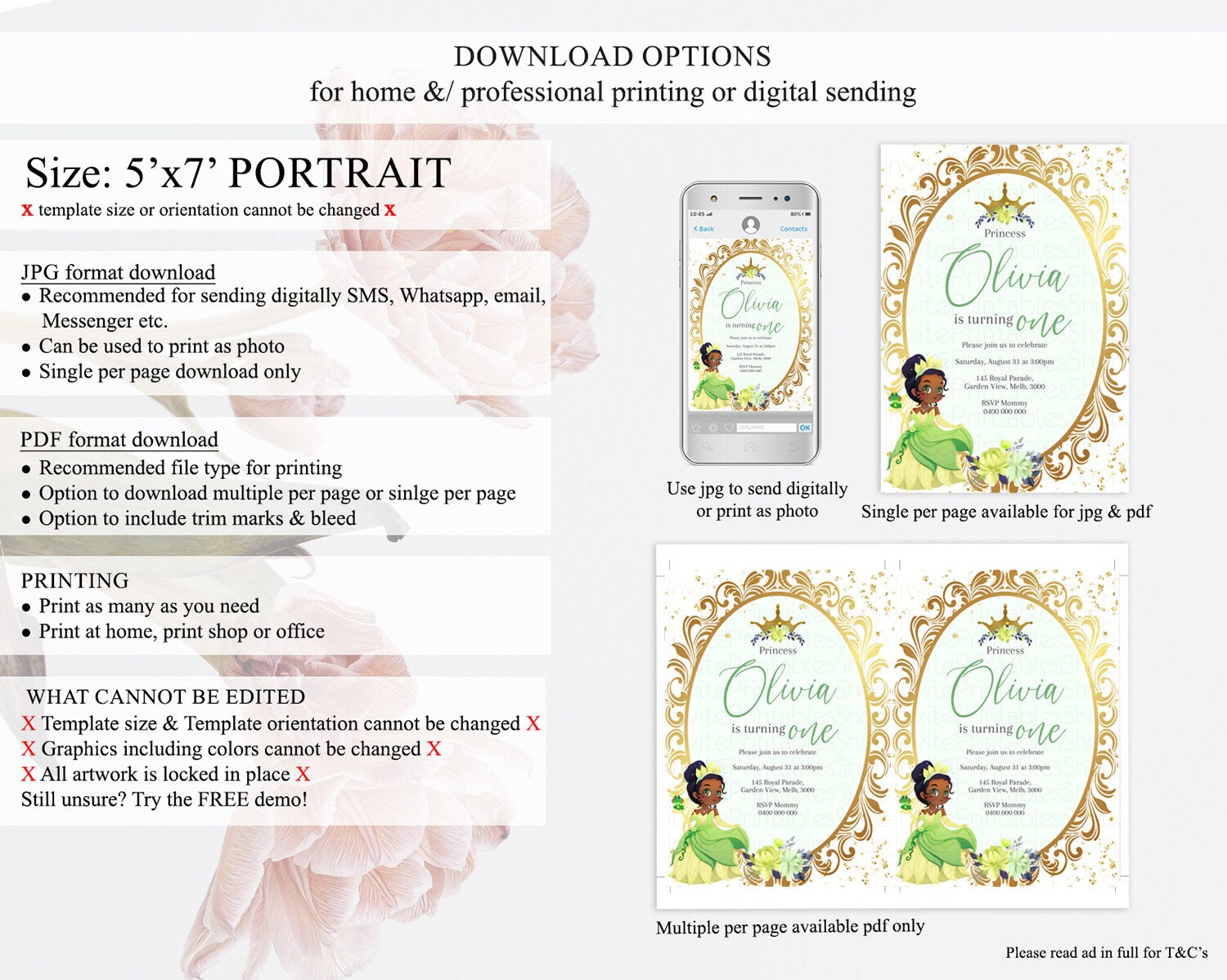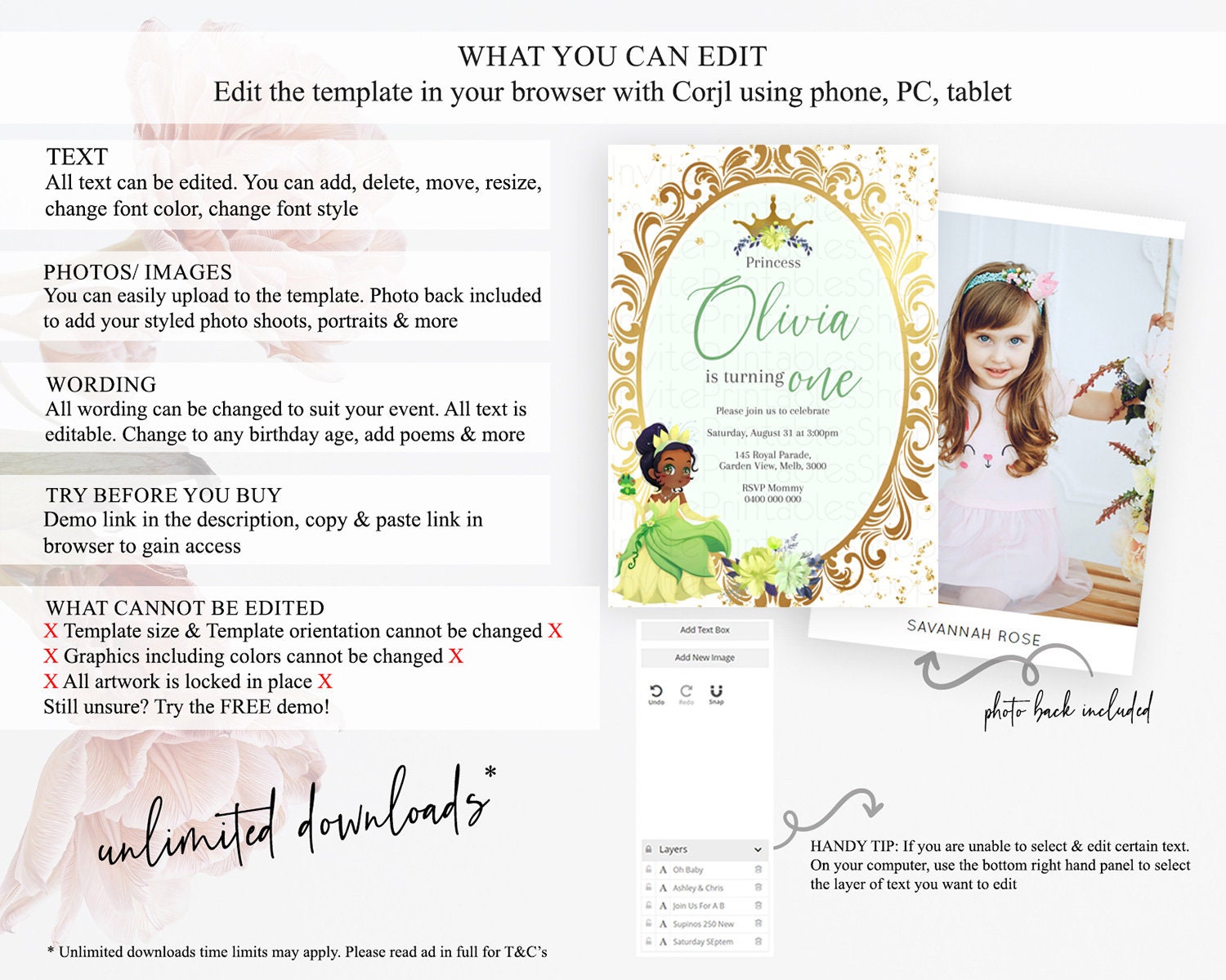 Princess Birthday Invitation Castle Invitation Royal Birthday Fairy Tale Enchanted Mirror Pastel Floral Garden 1st First Birthday D10744