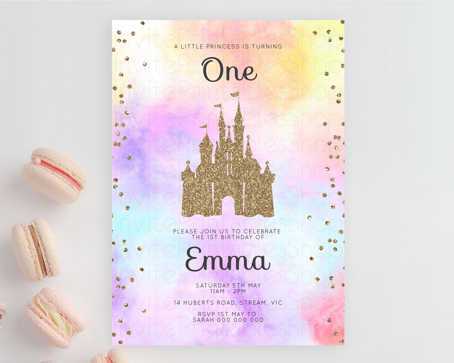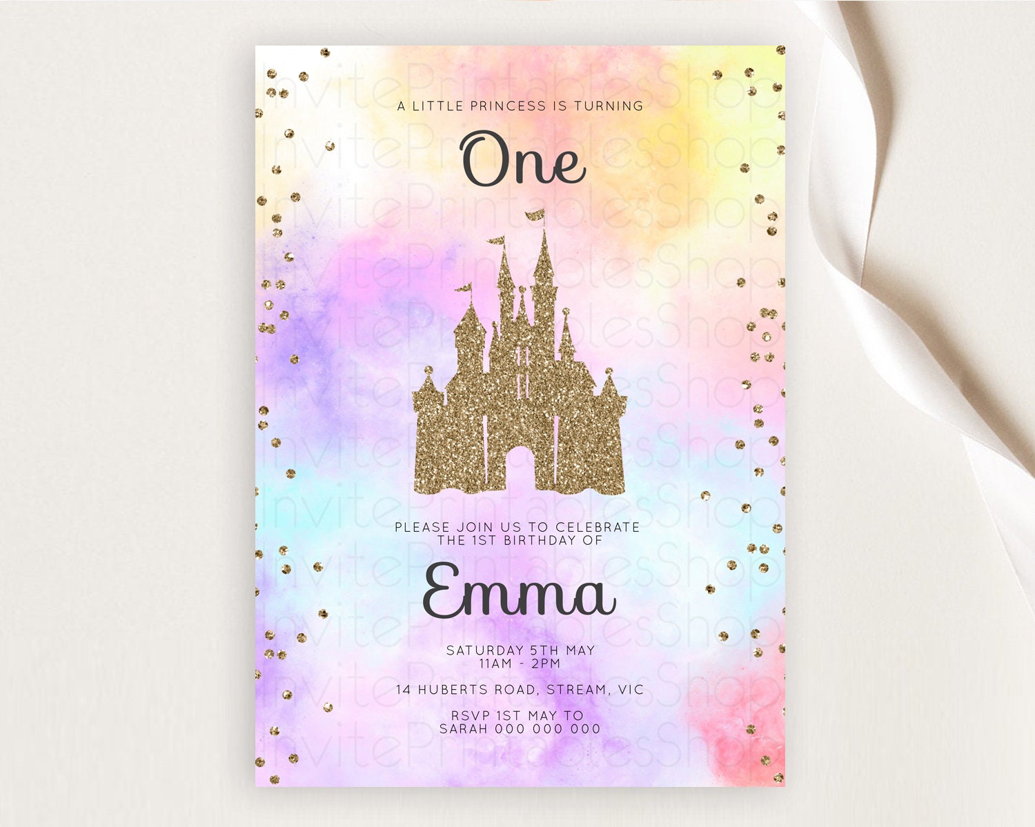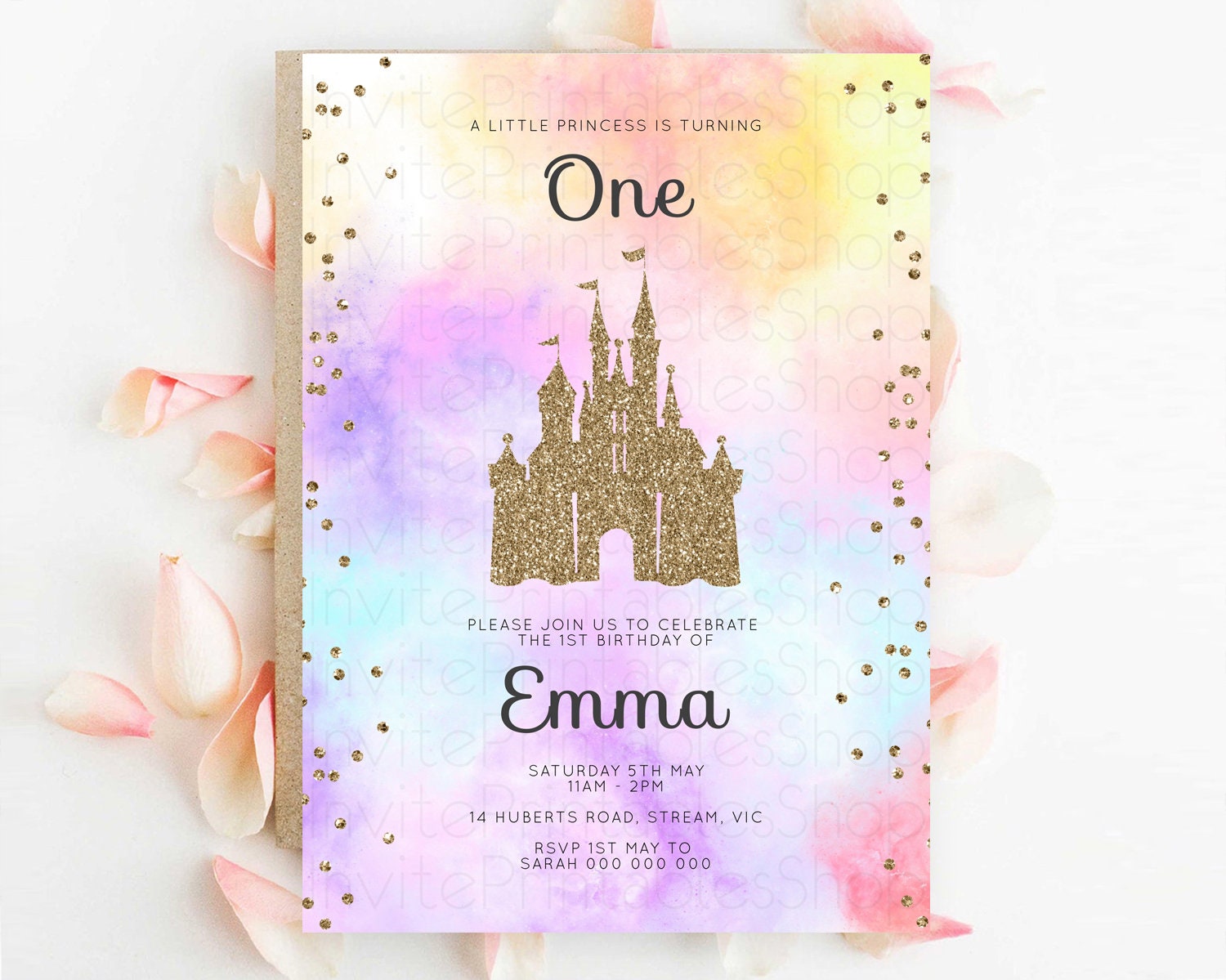 Princess Birthday Invitation Princess Invitation Pastel Invitation Royal Birthday Rainbow Color Enchanted Castle 1st First Birthday D10148