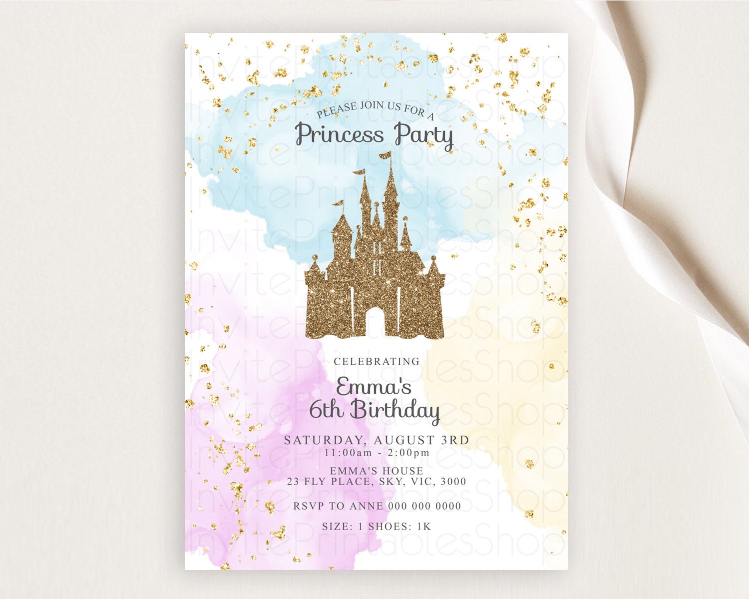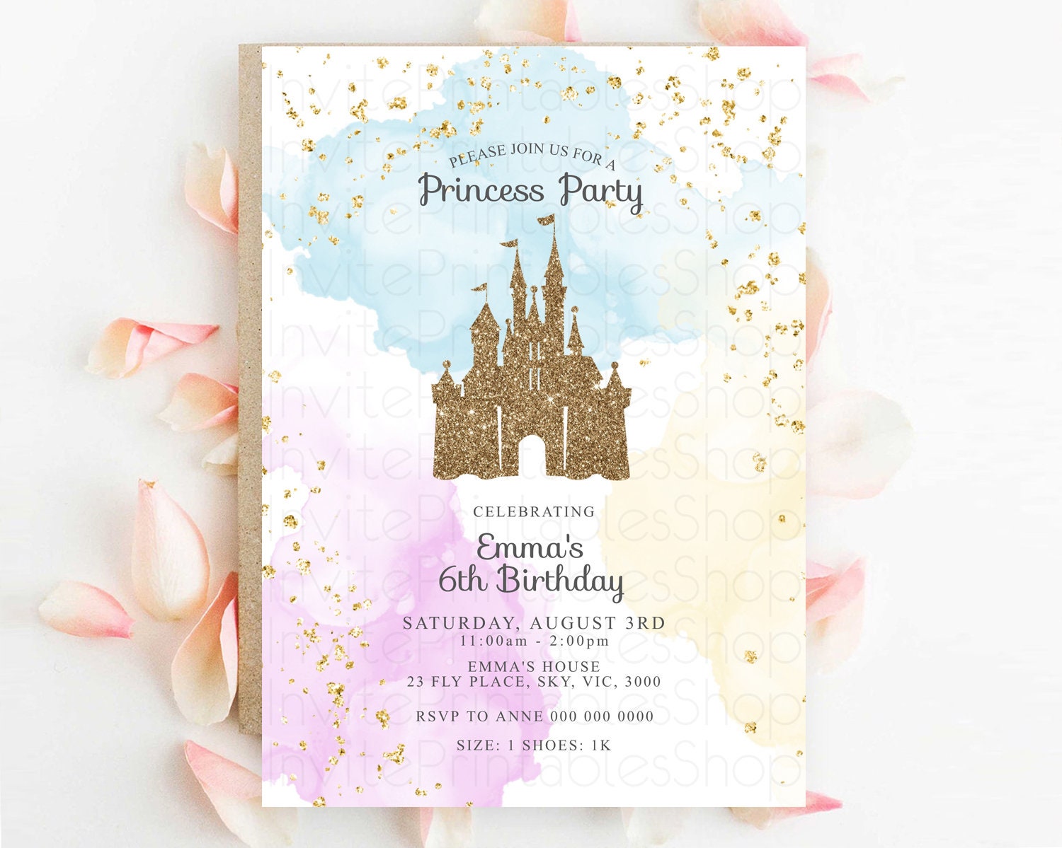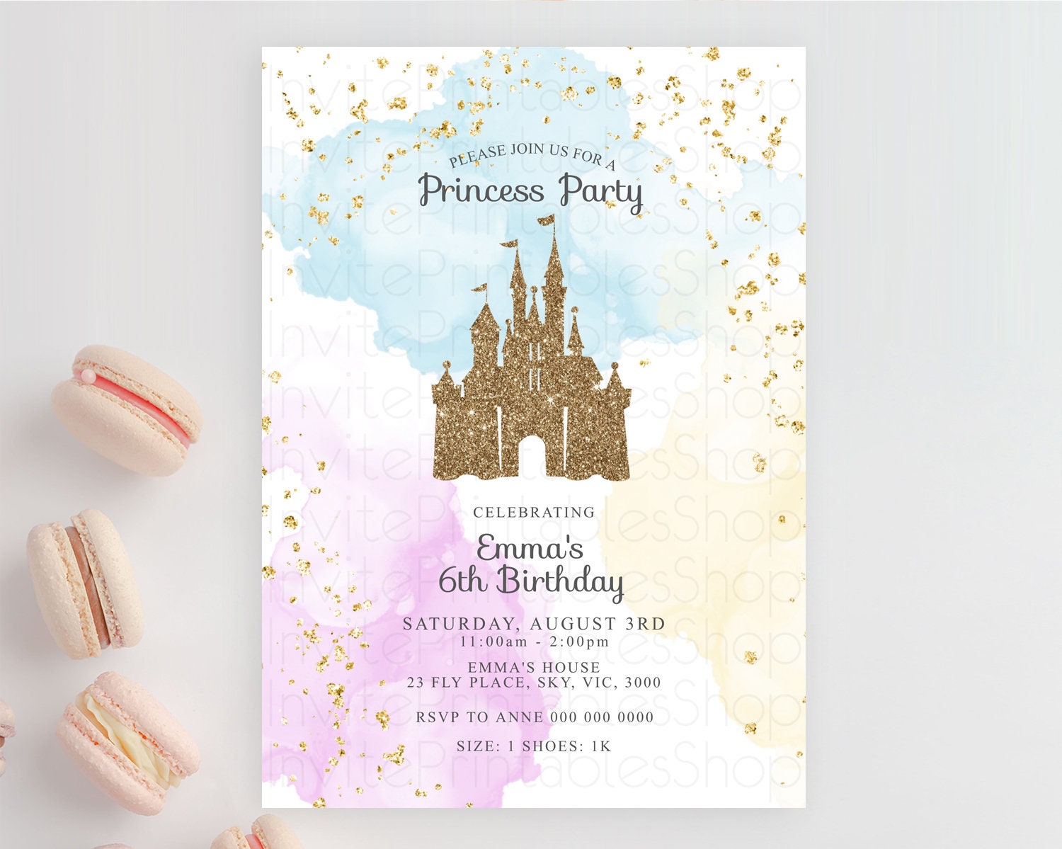 Princess Birthday Invitation Princess Invitation Pastel Invitation Royal Birthday Rainbow Color Enchanted Castle 1st First Birthday D10154