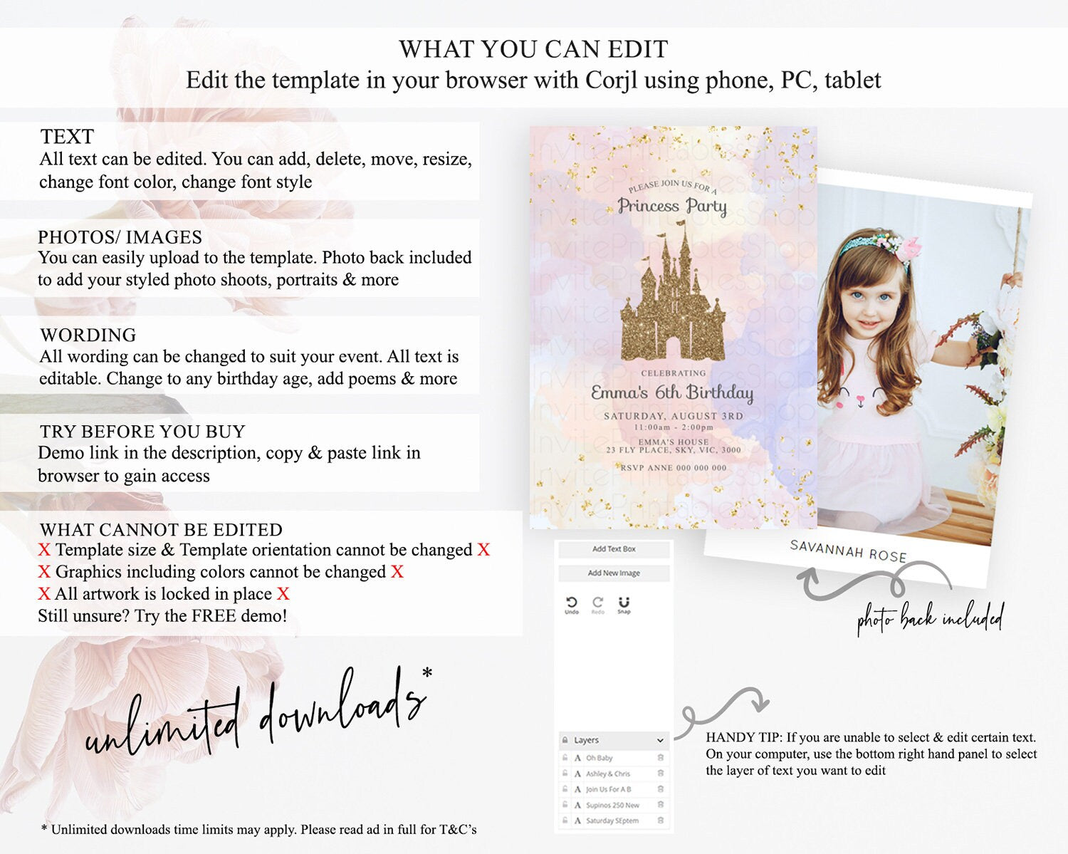 • Template size & orientation cannot be changed. Please use the demo link to confirm this product suits your needs.
