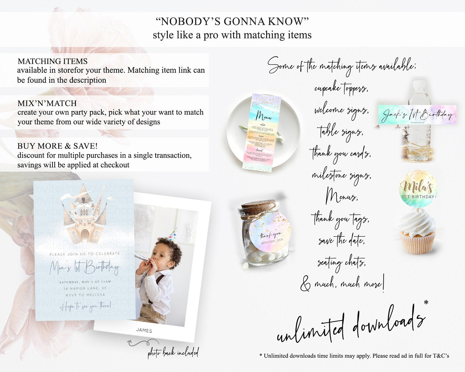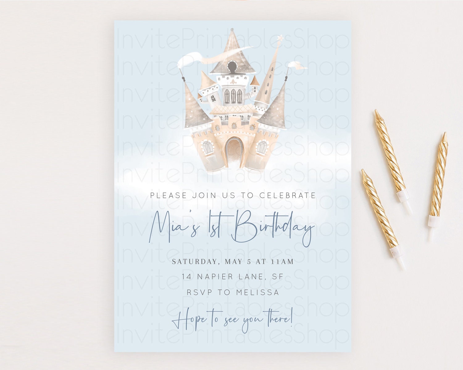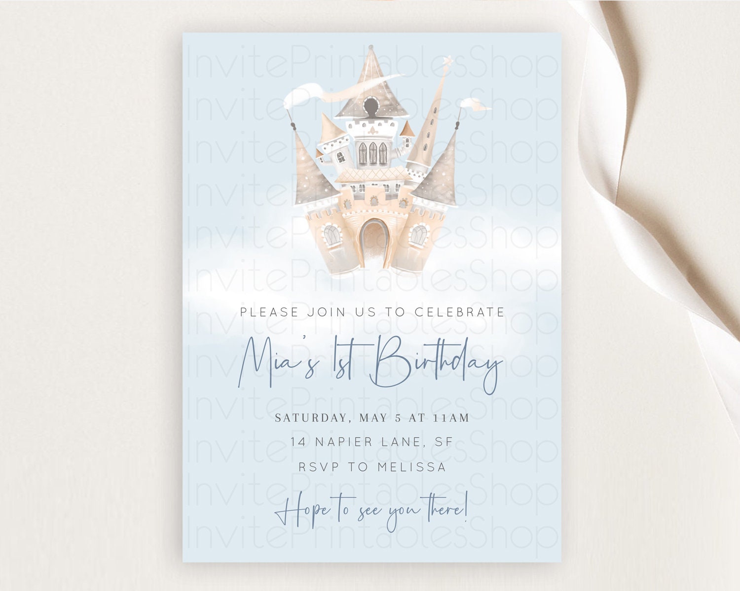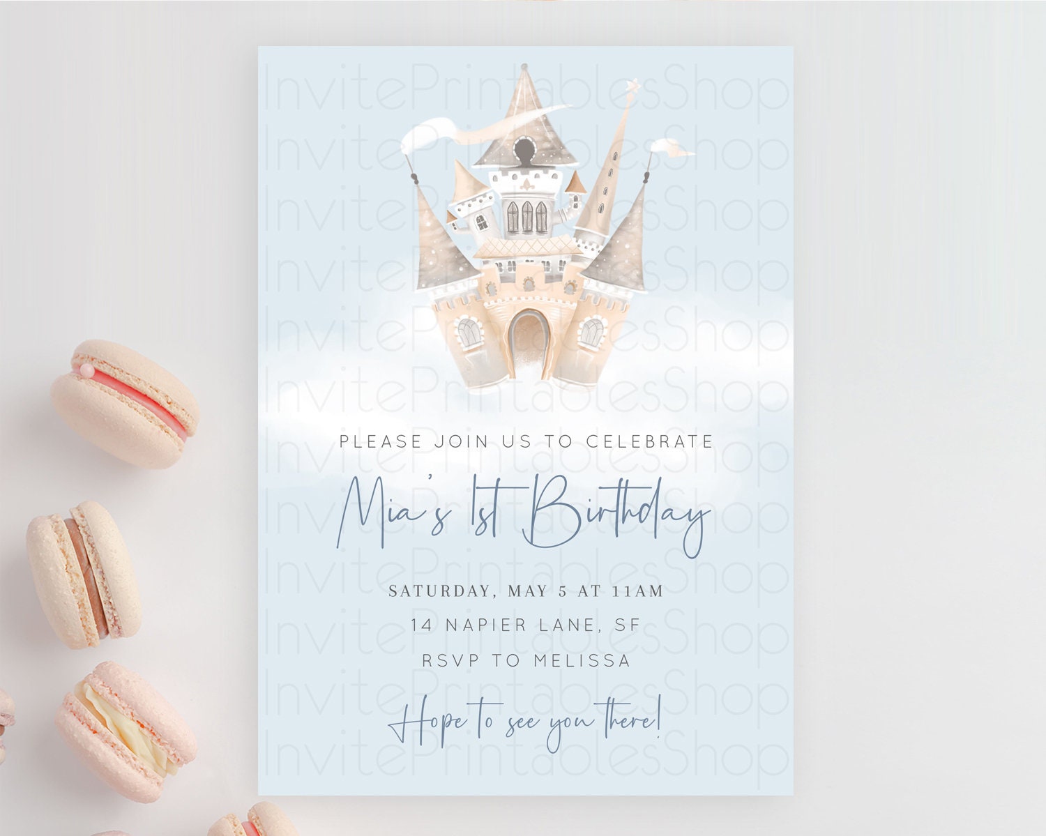 Princess Birthday Invitation Princess Invitation Pastel Invitation Royal Birthday Rainbow Color Enchanted Castle 1st First Birthday D10251