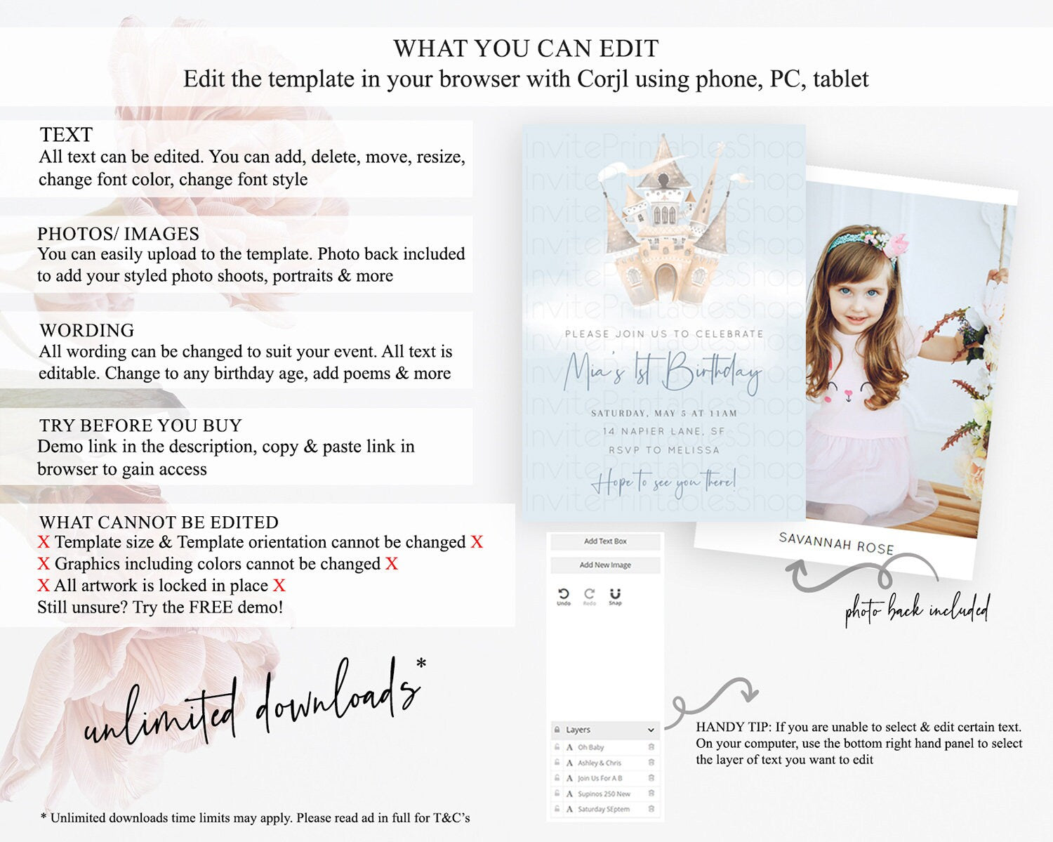 • After purchase, Corjl emails your editing link. Allow up to 15 minutes for delivery.