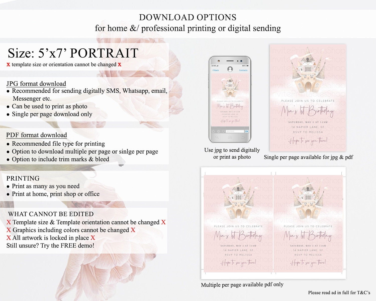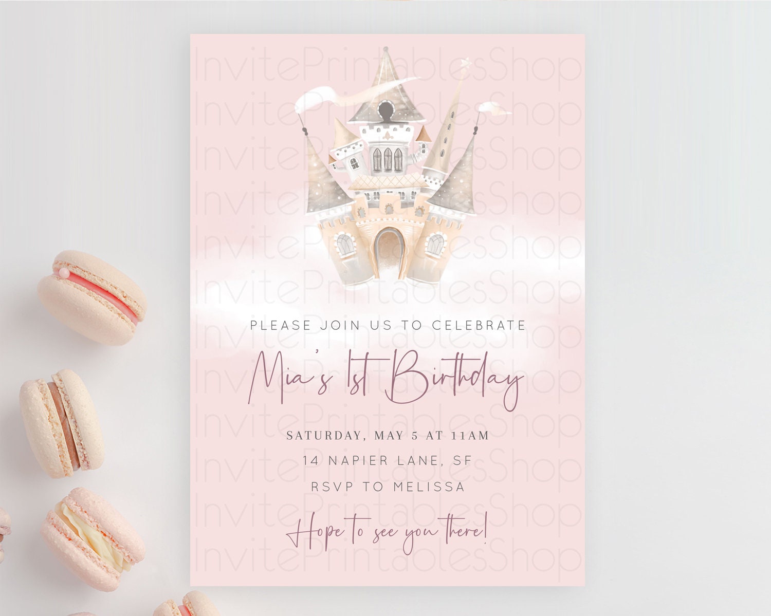 Princess Birthday Invitation Princess Invitation Pastel Invitation Royal Birthday Rainbow Color Enchanted Castle 1st First Birthday D10252