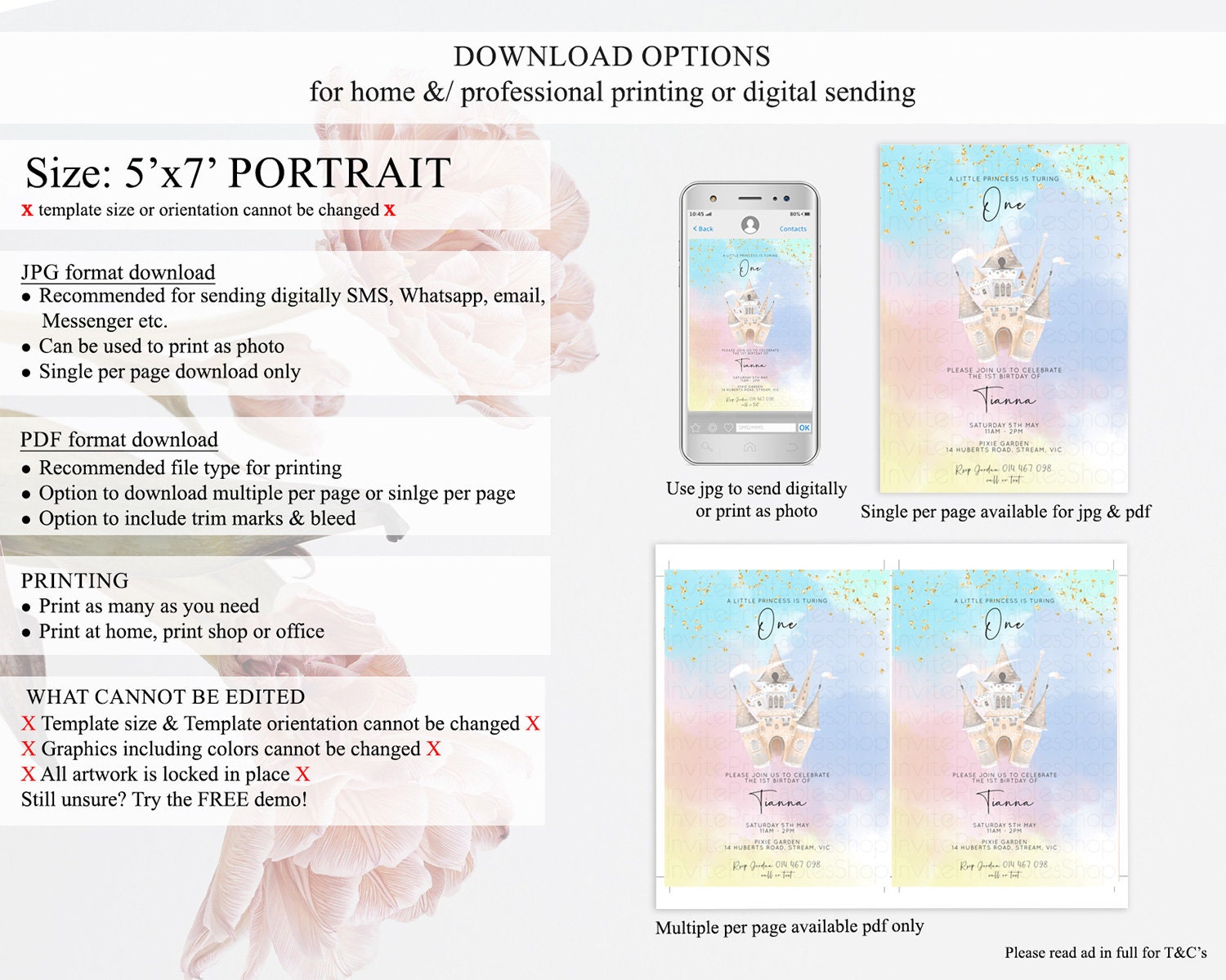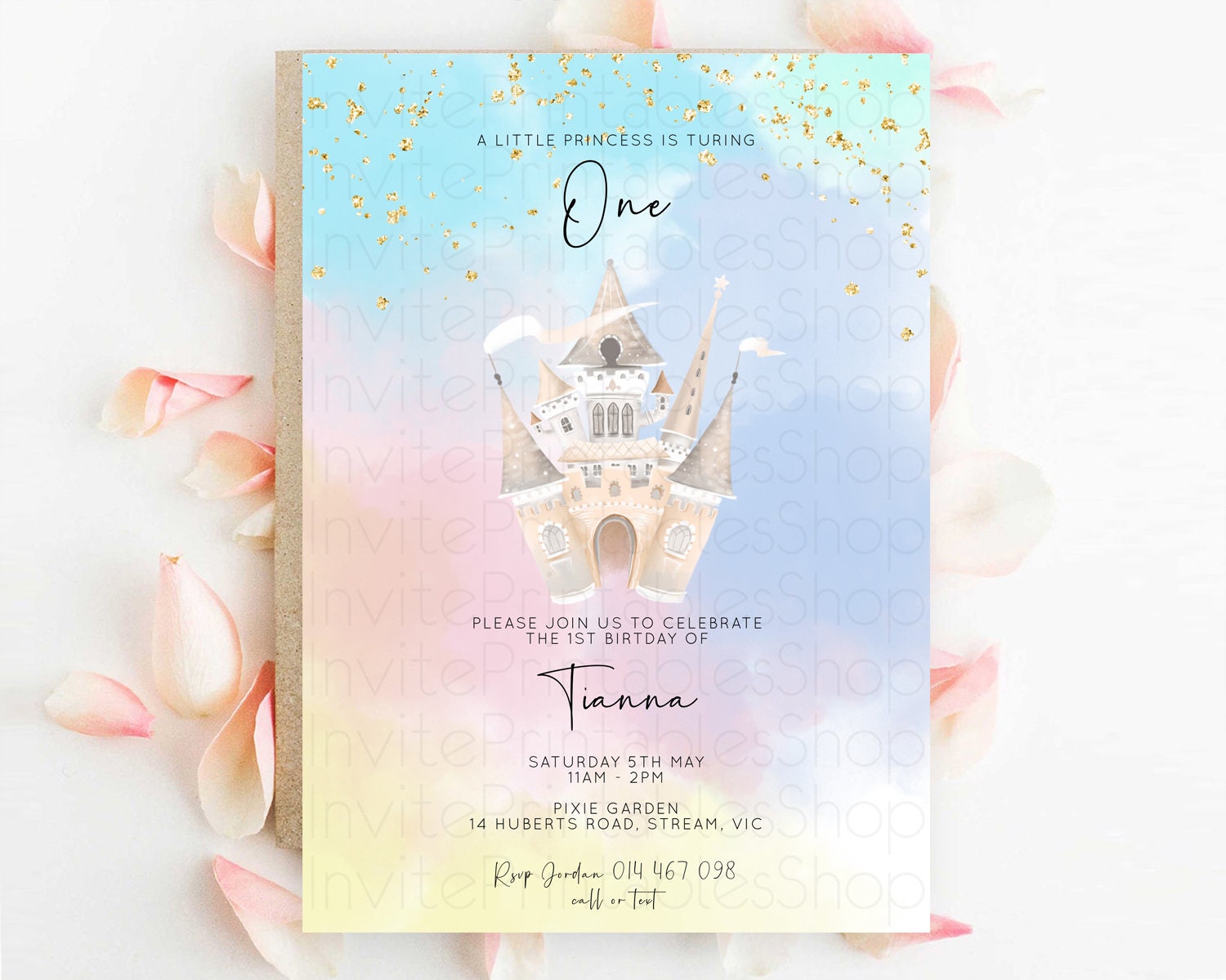 Princess Birthday Invitation Princess Invitation Pastel Invitation Royal Birthday Rainbow Color Enchanted Castle 1st First Birthday D10376