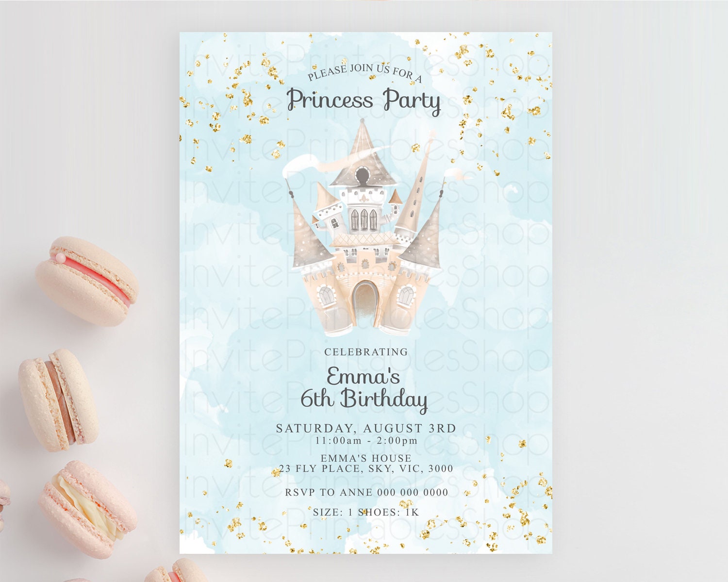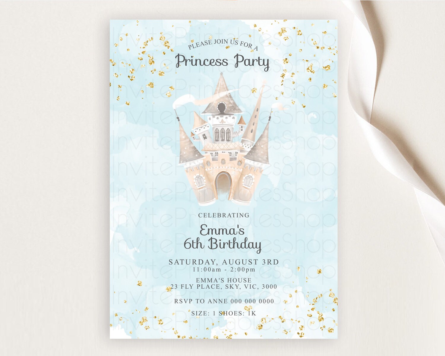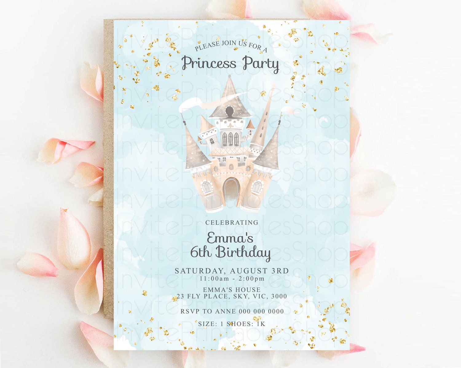 Princess Birthday Invitation Princess Invitation Pastel Invitation Royal Birthday Rainbow Color Enchanted Castle 1st First Birthday D10659