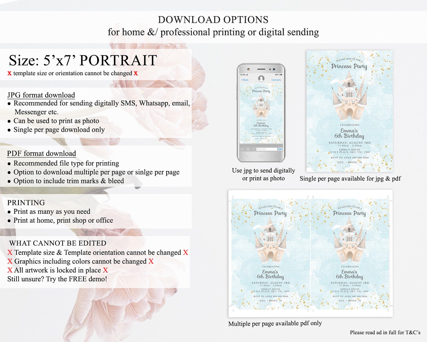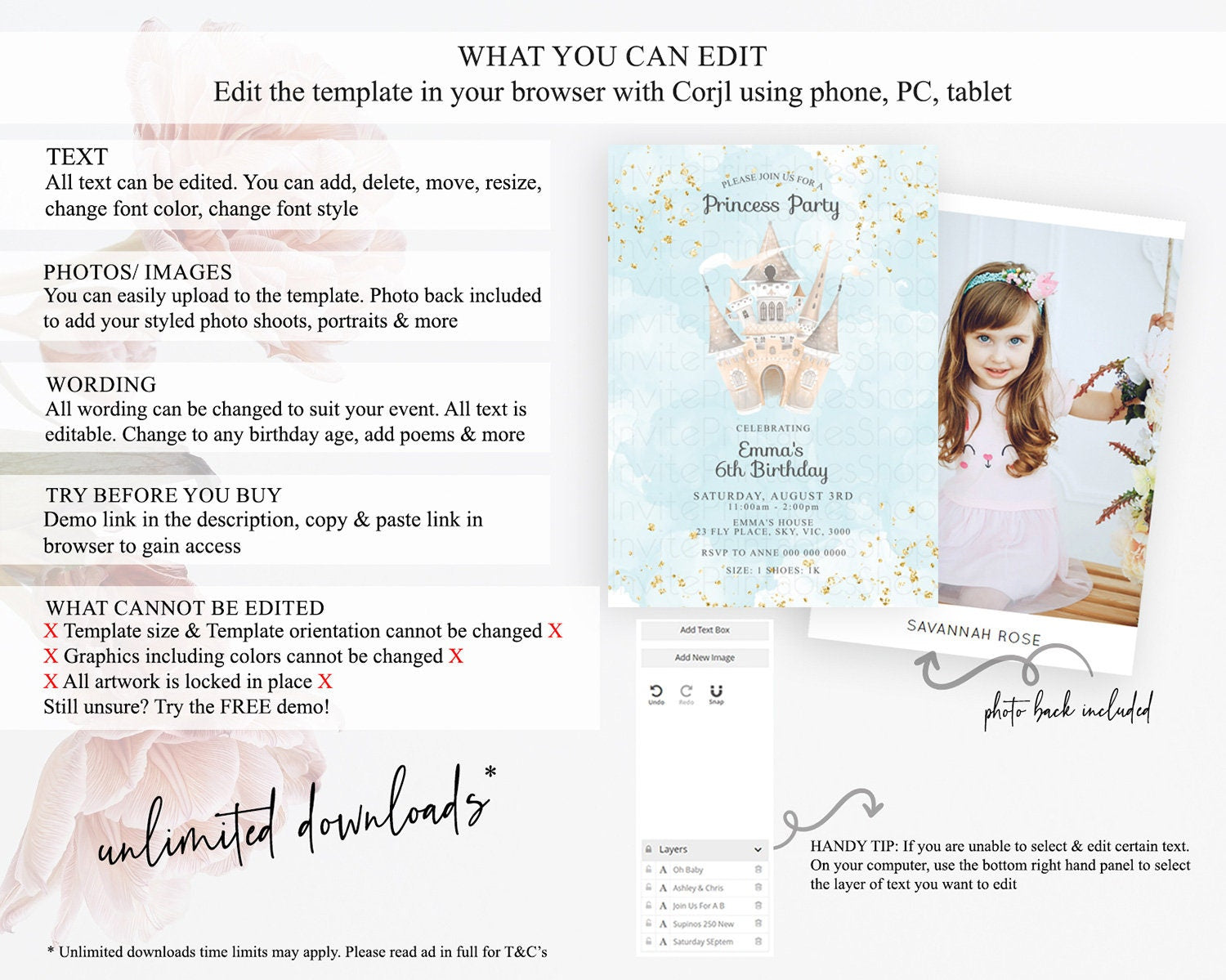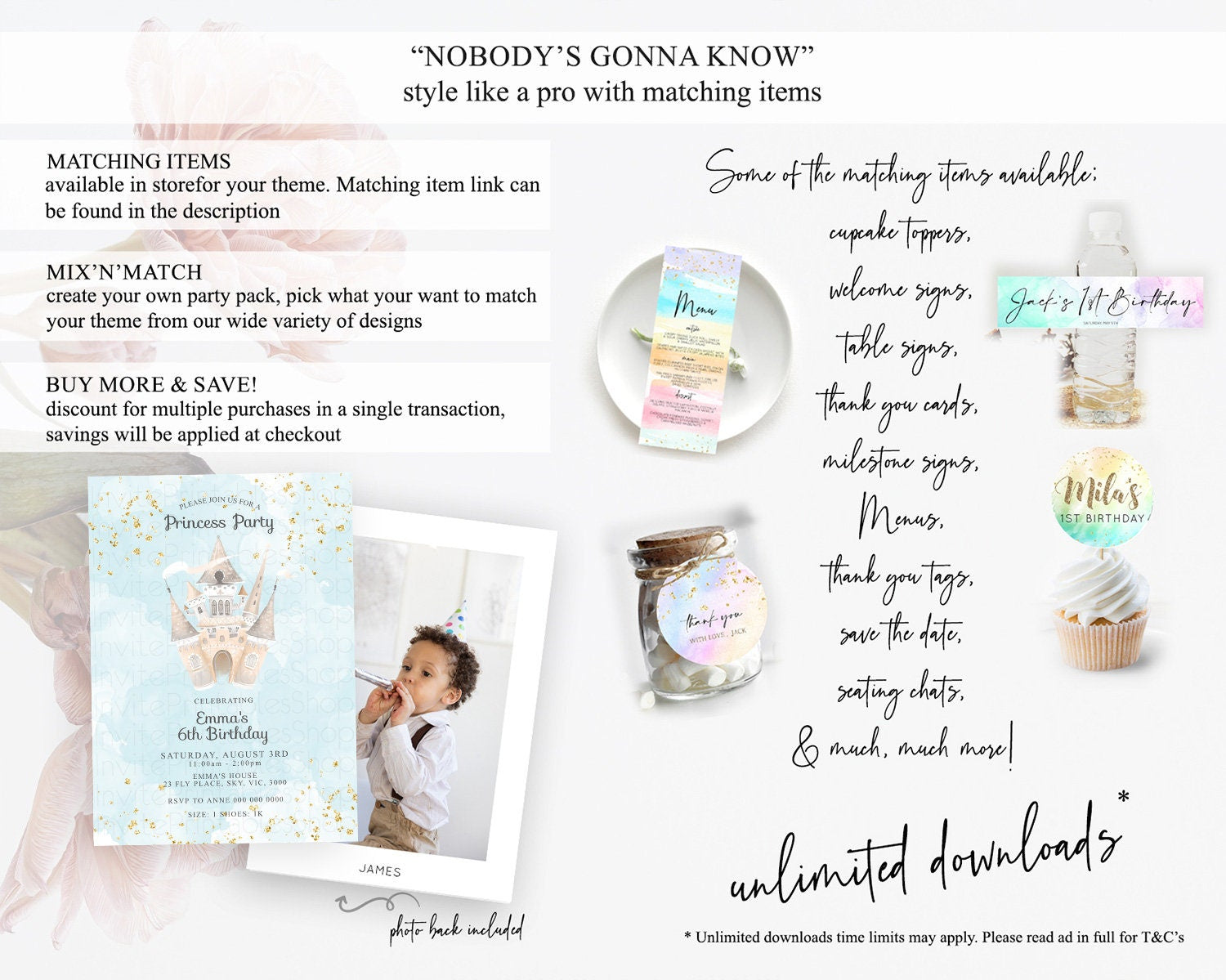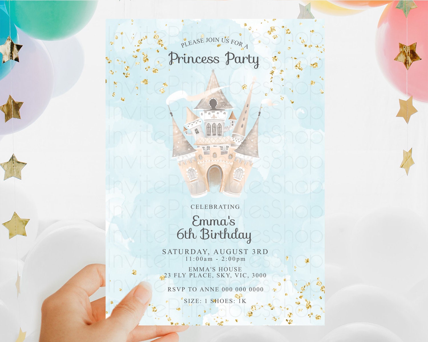 Princess Birthday Invitation Princess Invitation Pastel Invitation Royal Birthday Rainbow Color Enchanted Castle 1st First Birthday D10659
