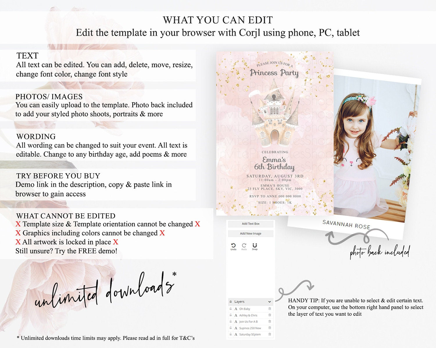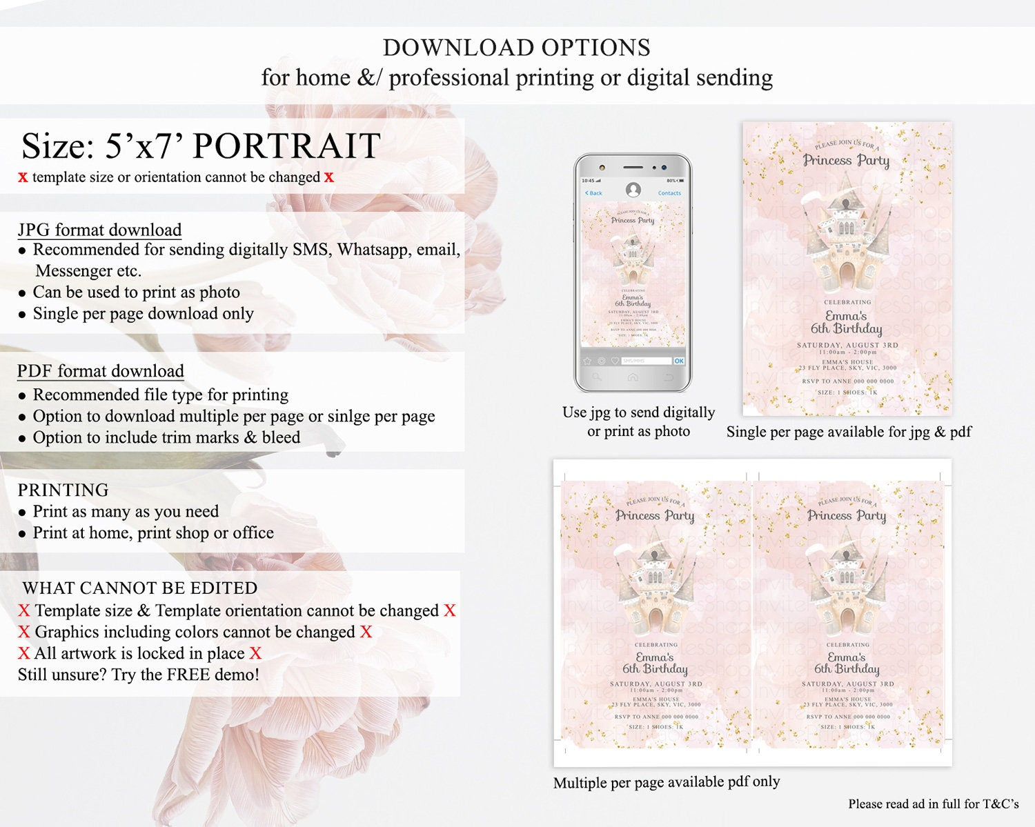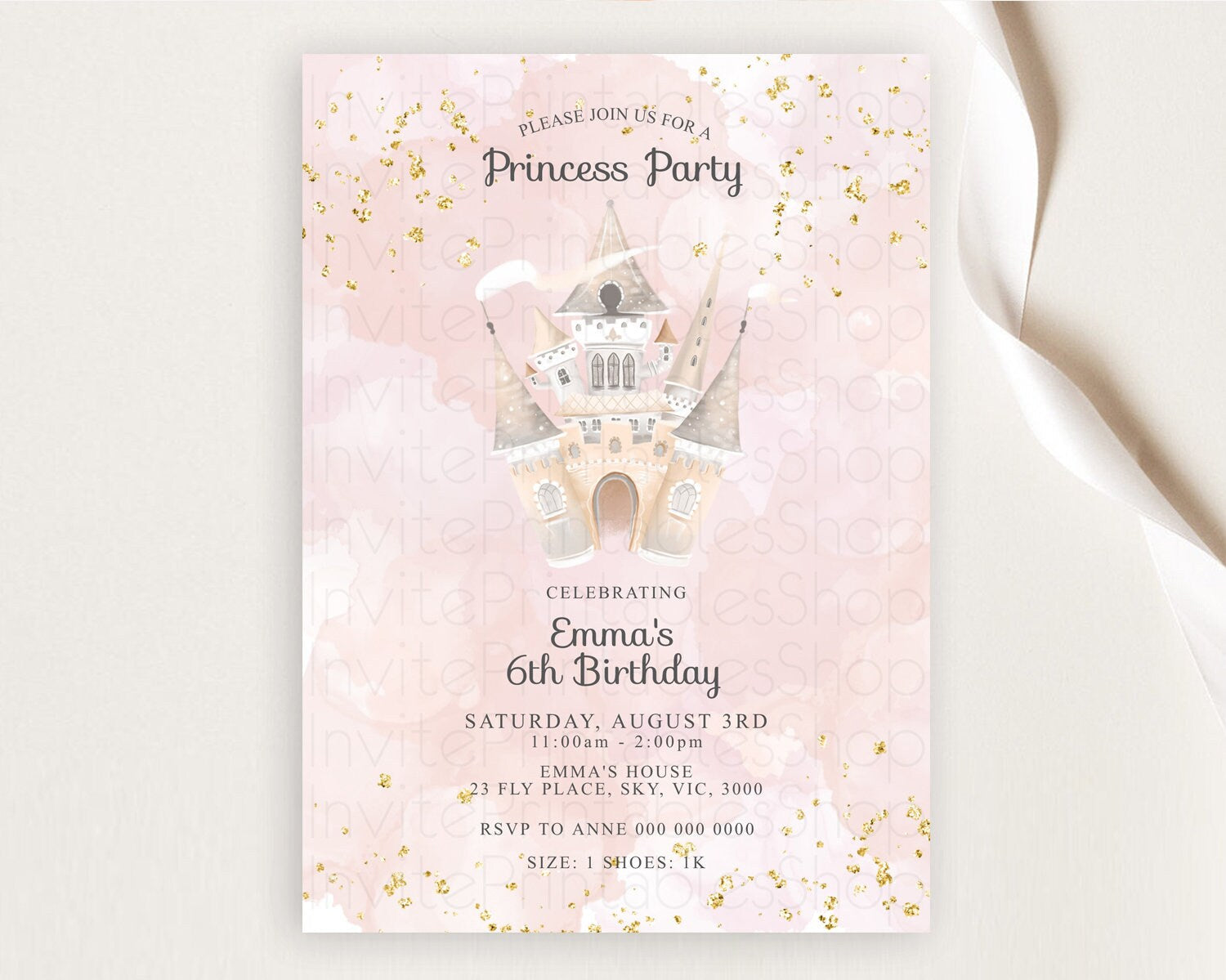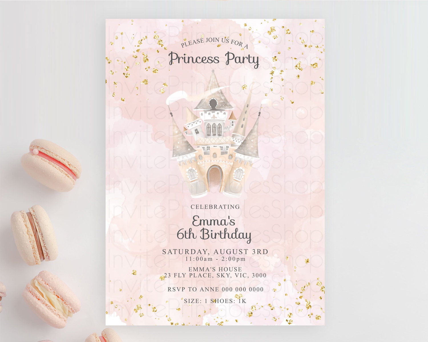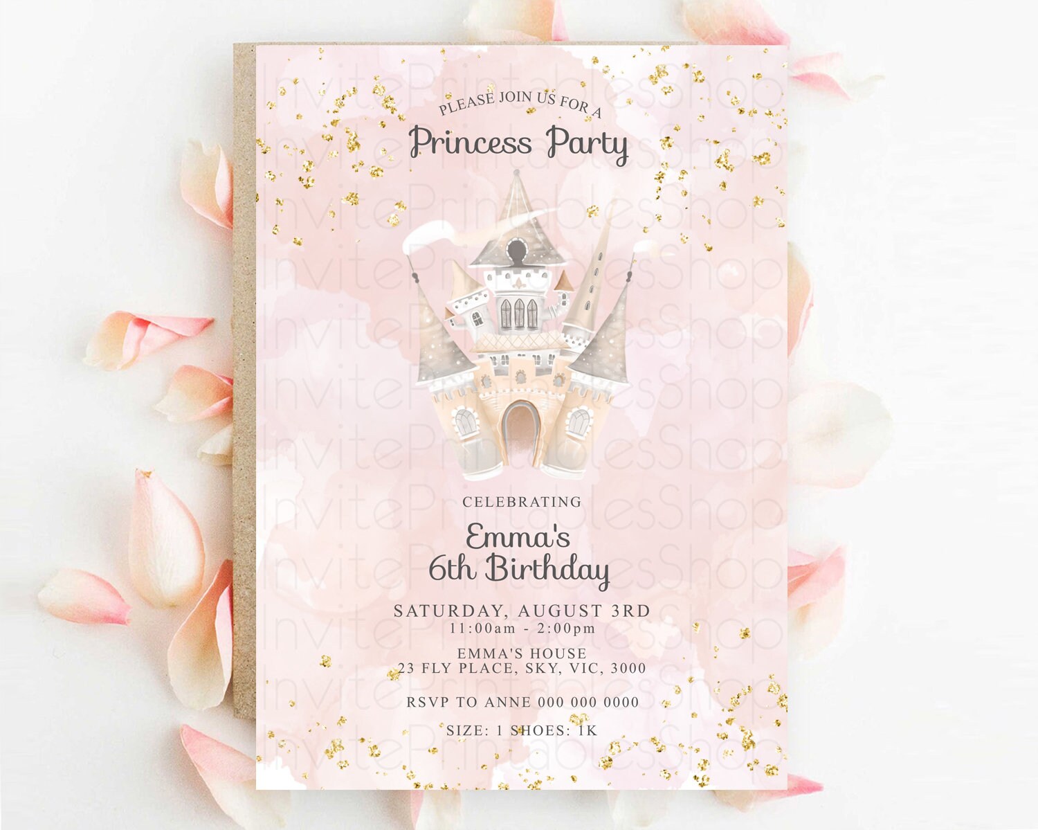 Princess Birthday Invitation Princess Invitation Pastel Invitation Royal Birthday Rainbow Color Enchanted Castle 1st First Birthday D10660