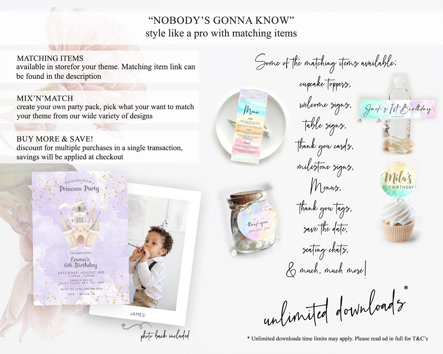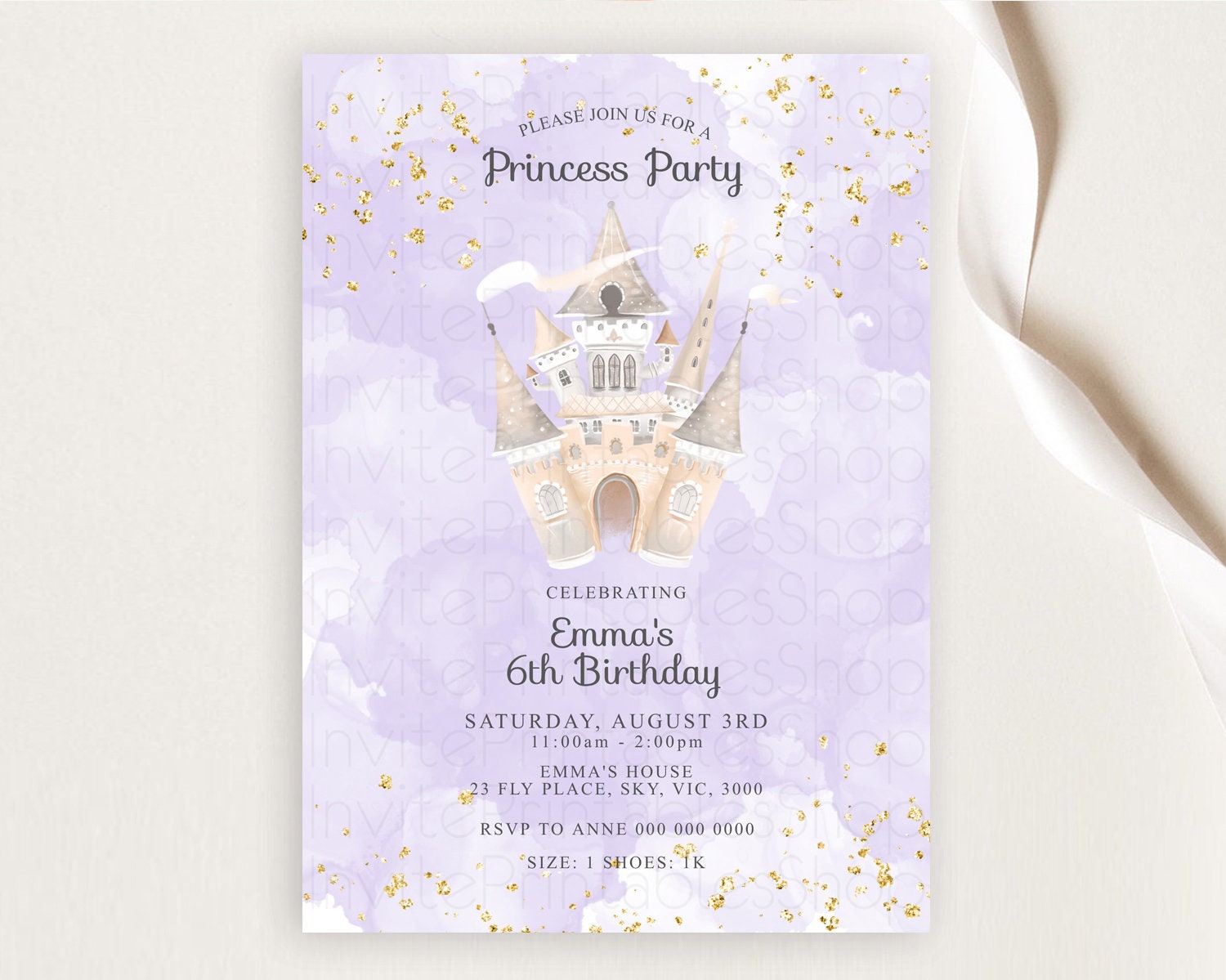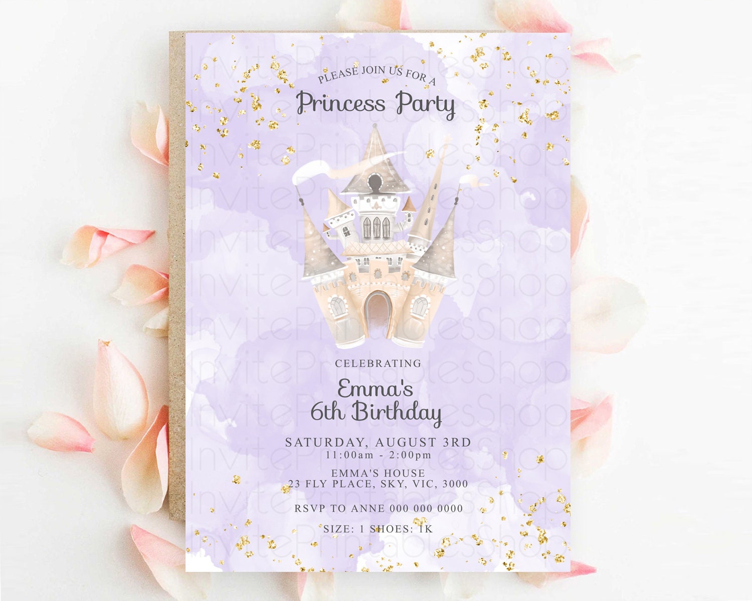 Princess Birthday Invitation Princess Invitation Pastel Invitation Royal Birthday Rainbow Color Enchanted Castle 1st First Birthday D10662