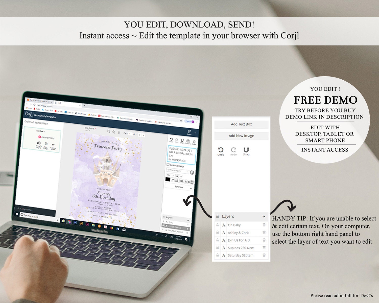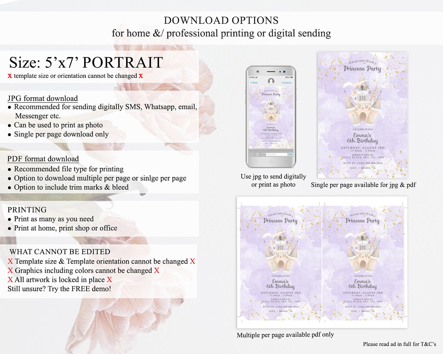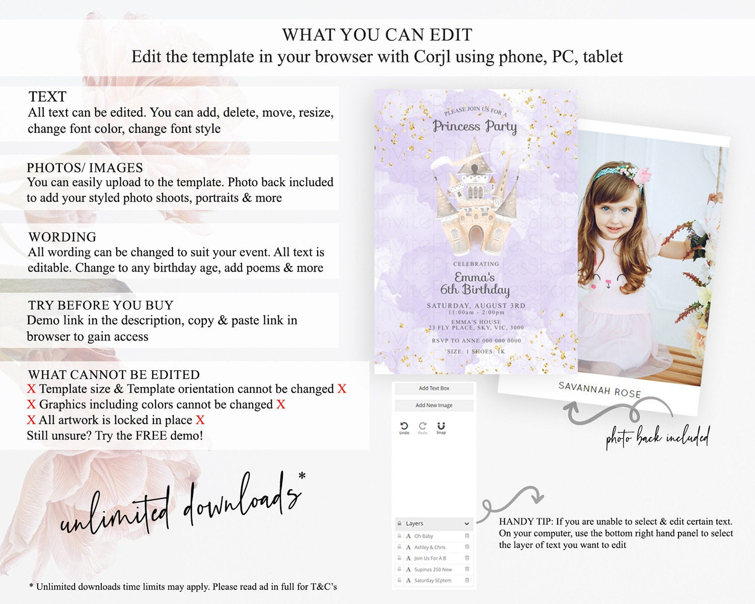 Princess Birthday Invitation Princess Invitation Pastel Invitation Royal Birthday Rainbow Color Enchanted Castle 1st First Birthday D10662