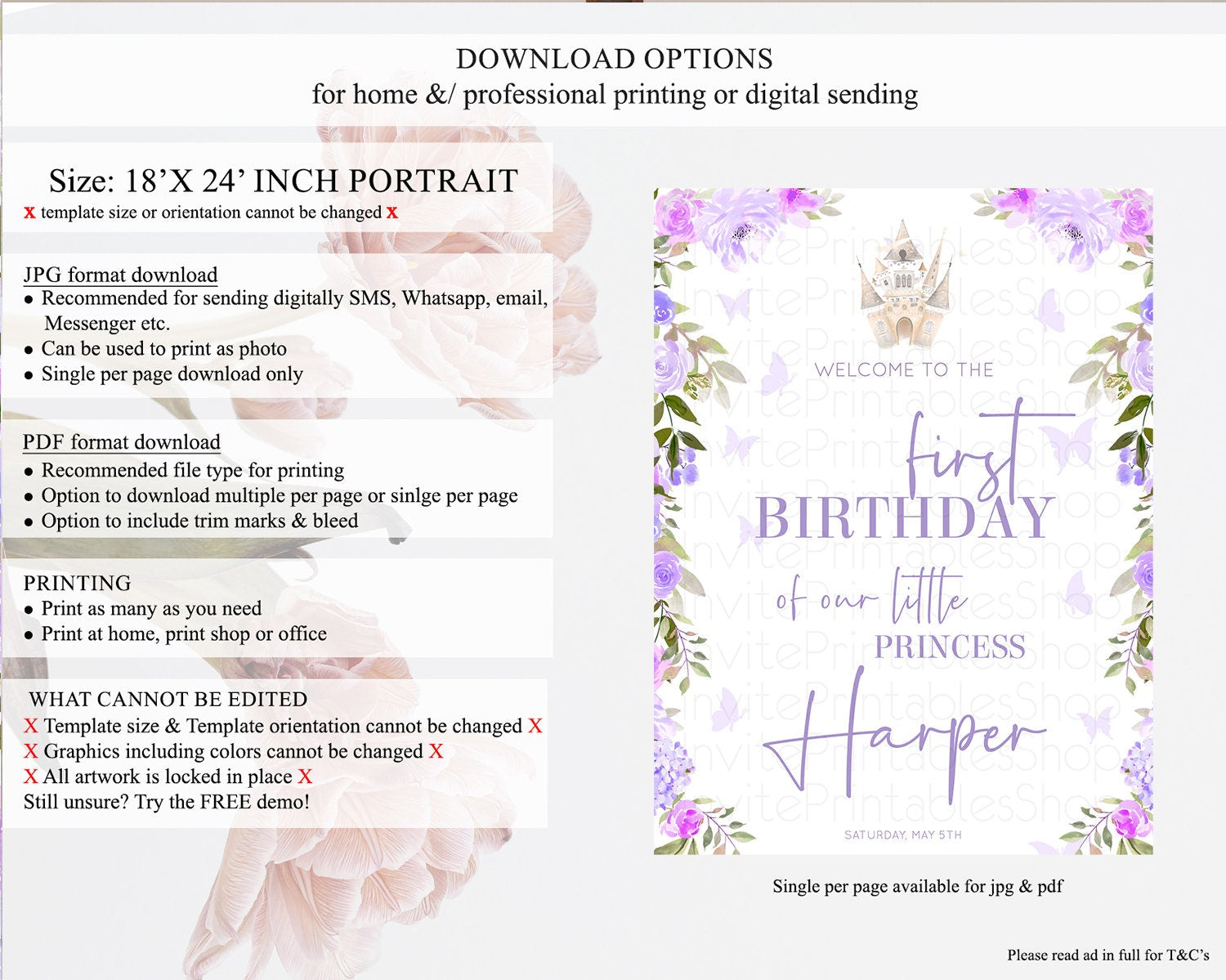 • Template size & orientation cannot be changed. Please use the demo link to confirm this product suits your needs.