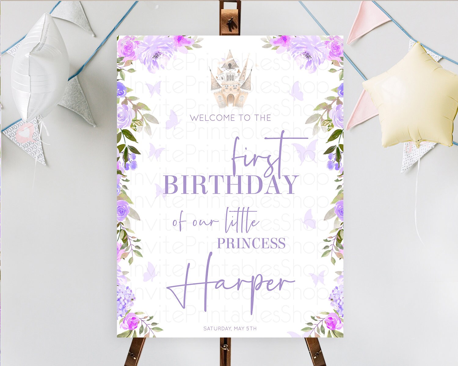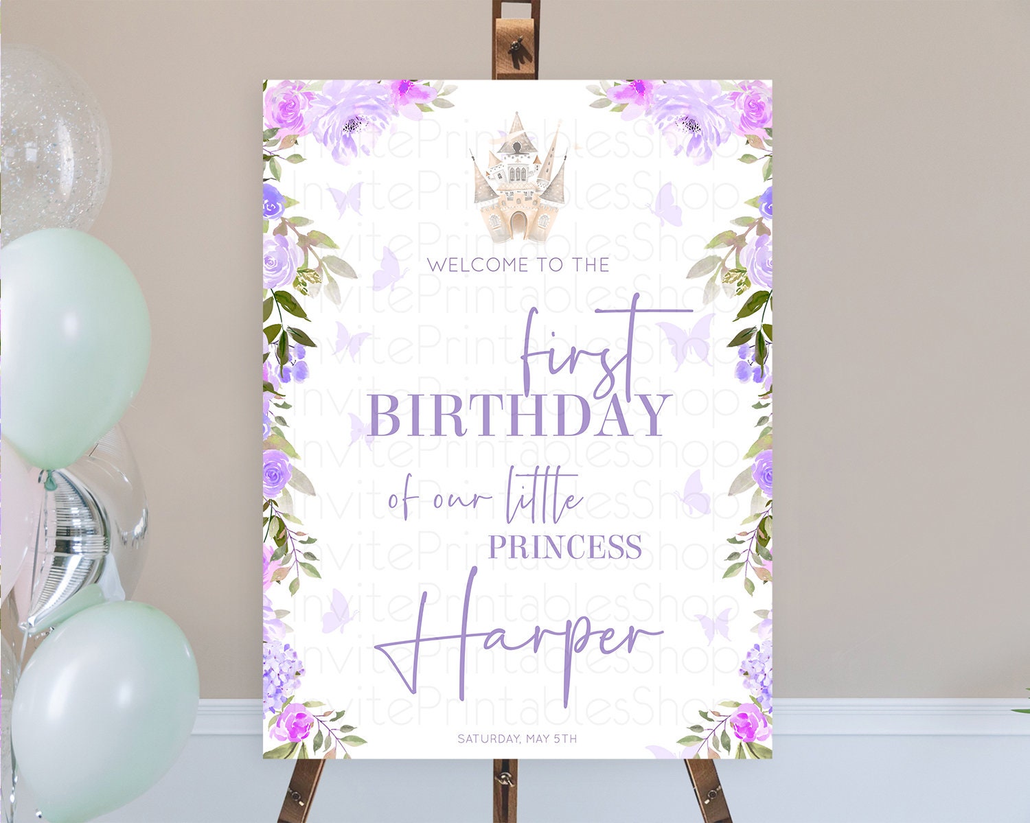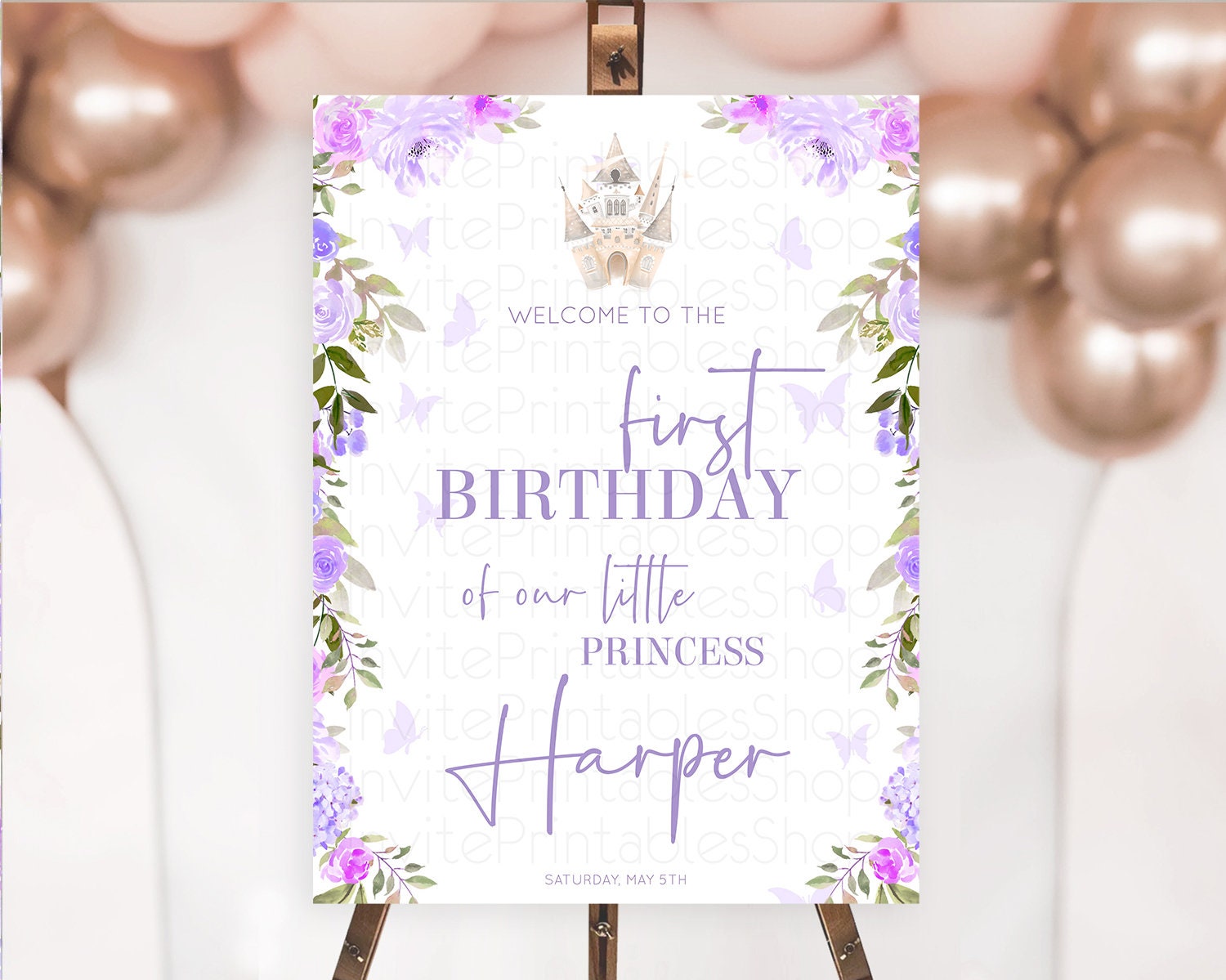 Princess Birthday Welcome Sign Castle Welcome Board Secret Garden Enchanted Castle Pastel Floral Garden First Birthday Welcome Sign D10339