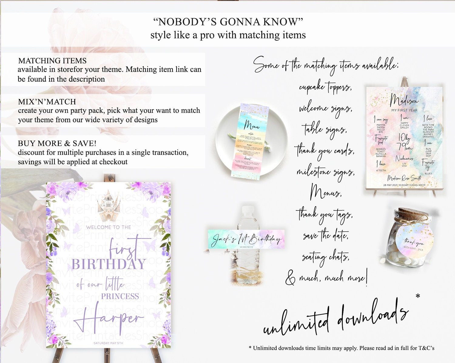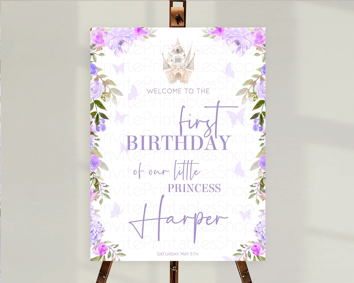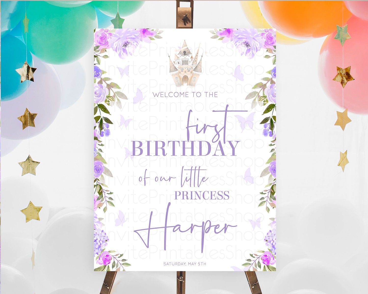 Princess Birthday Welcome Sign Castle Welcome Board Secret Garden Enchanted Castle Pastel Floral Garden First Birthday Welcome Sign D10339