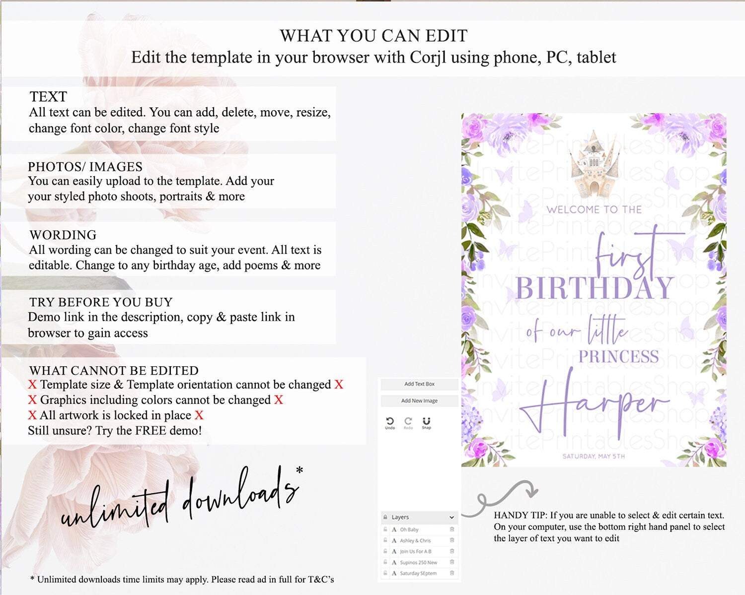 • After purchase, Corjl emails your editing link. Allow up to 15 minutes for delivery.