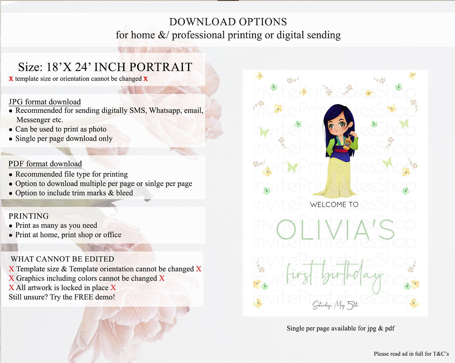 Princess Birthday Welcome Sign Castle Welcome Board Secret Garden Enchanted Castle Pastel Floral Garden First Birthday Welcome Sign D10350