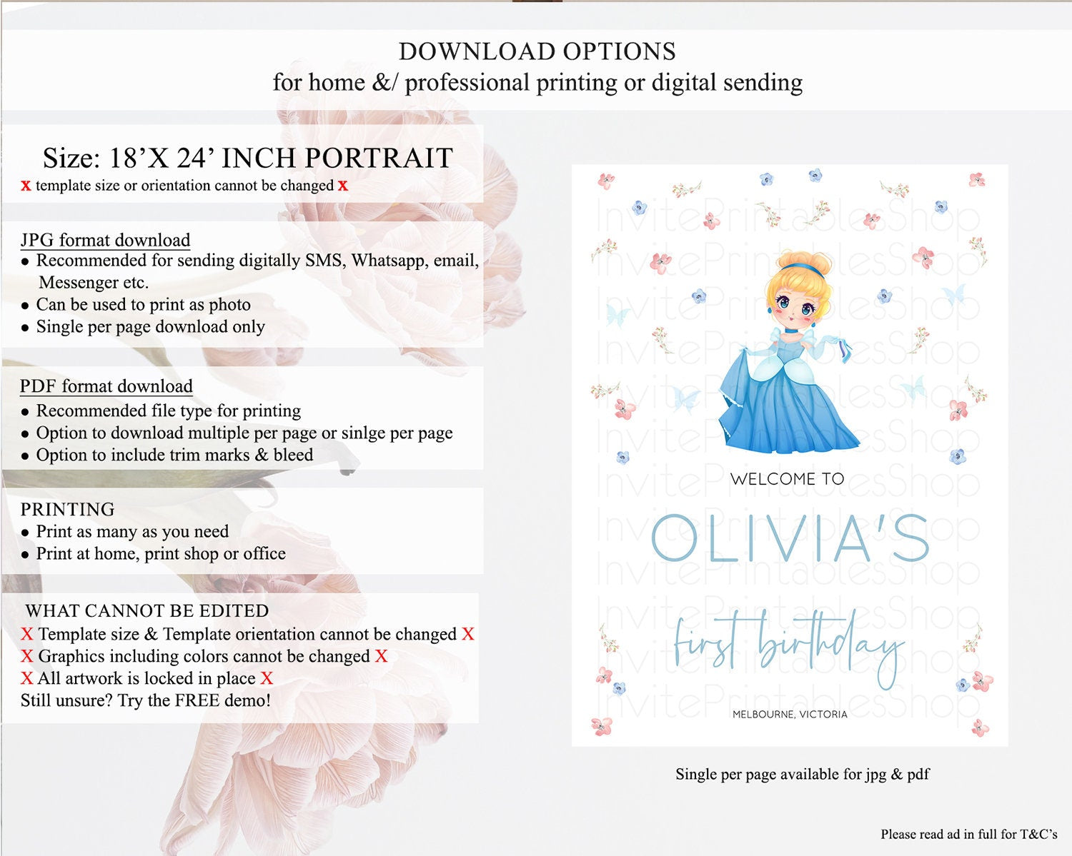 Princess Birthday Welcome Sign Castle Welcome Board Secret Garden Enchanted Castle Pastel Floral Garden First Birthday Welcome Sign D10354