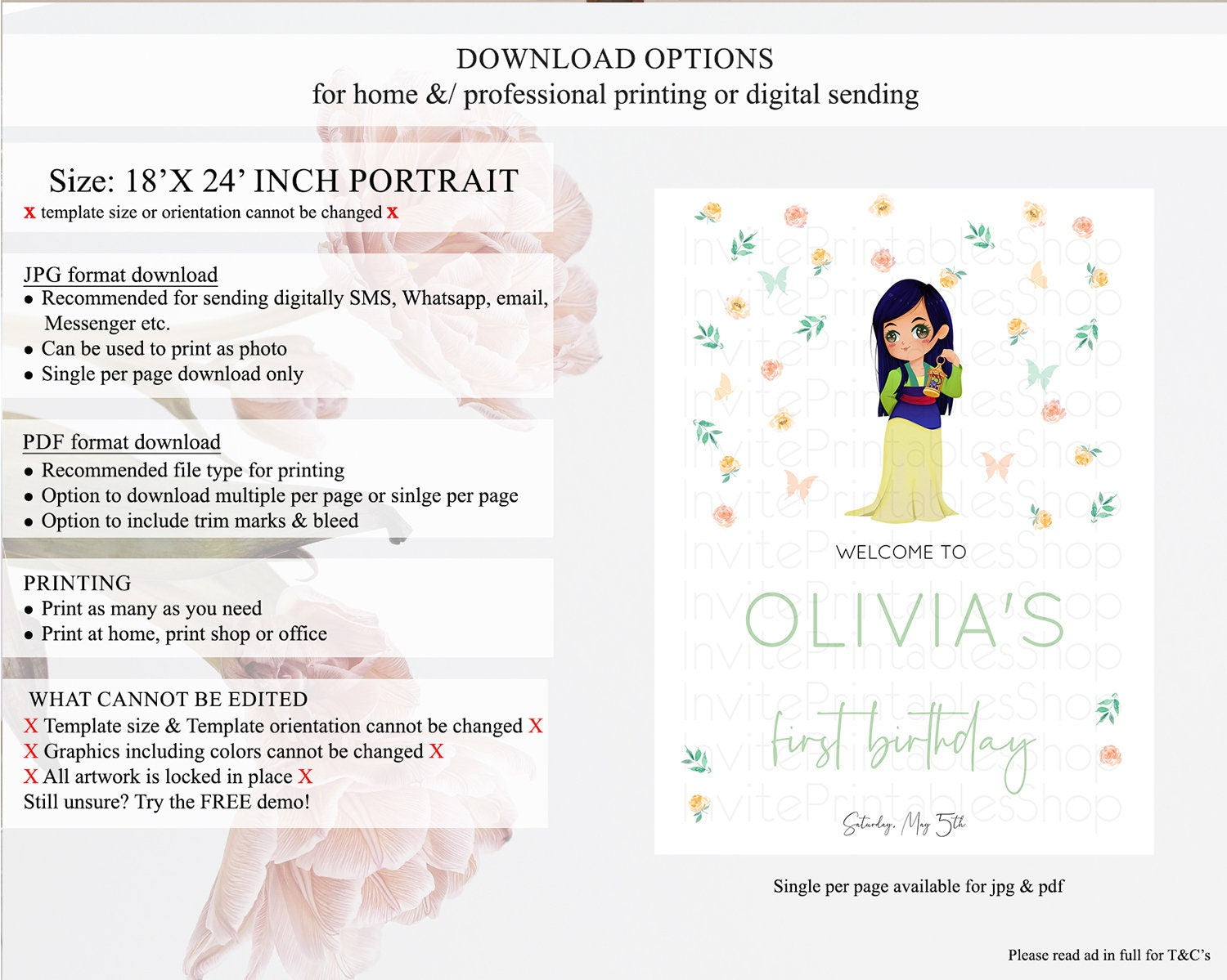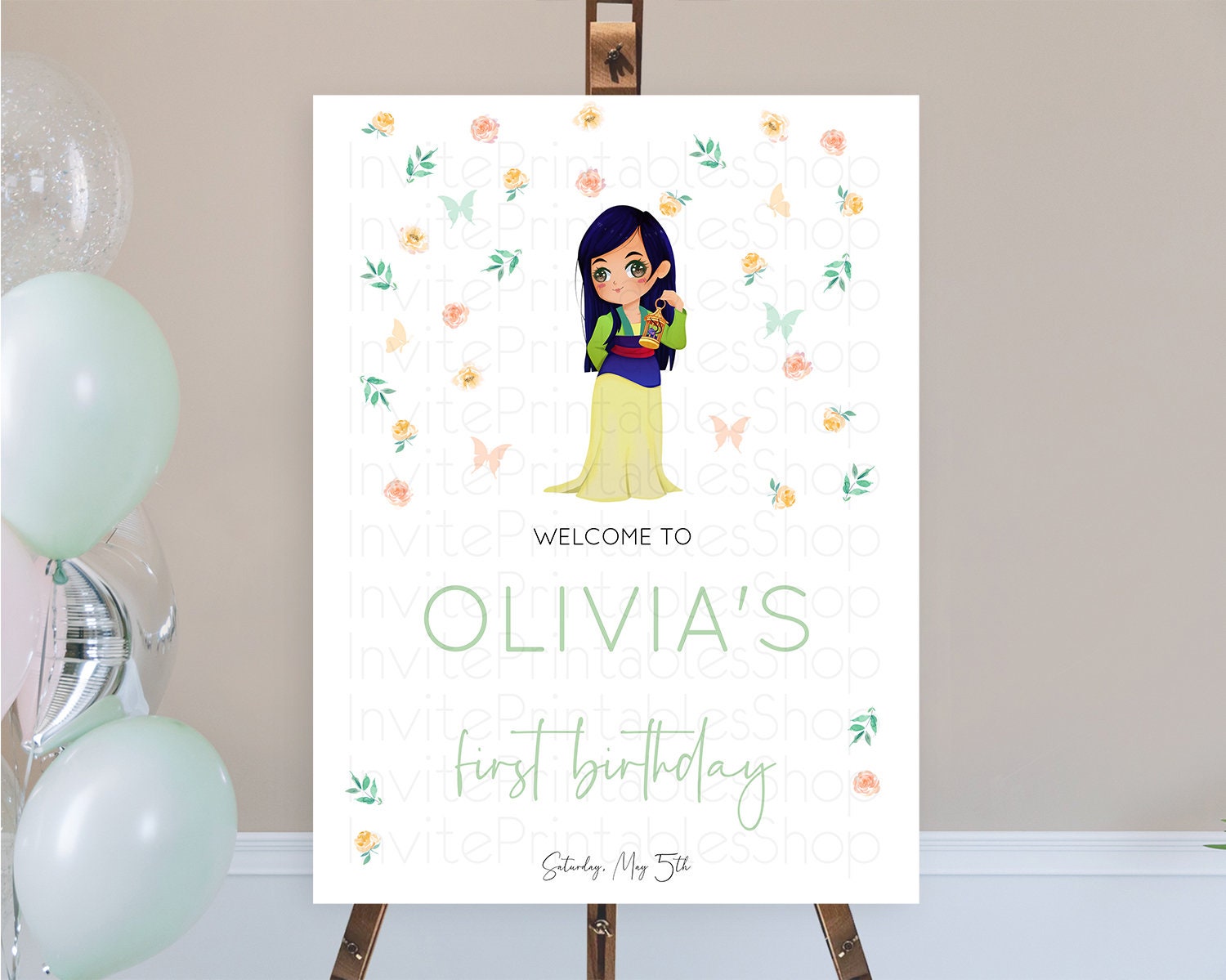 Princess Birthday Welcome Sign Castle Welcome Board Secret Garden Enchanted Castle Pastel Floral Garden First Birthday Welcome Sign D10357