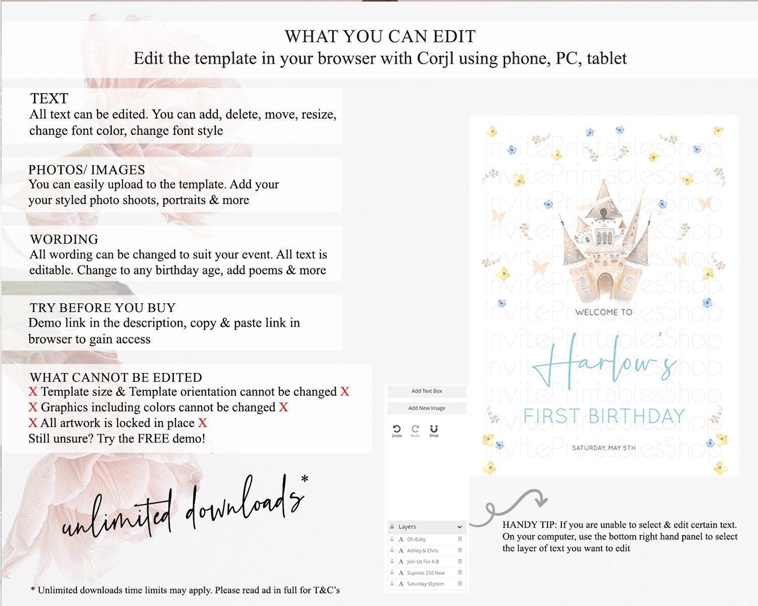 • After purchase, Corjl emails your editing link. Allow up to 15 minutes for delivery.