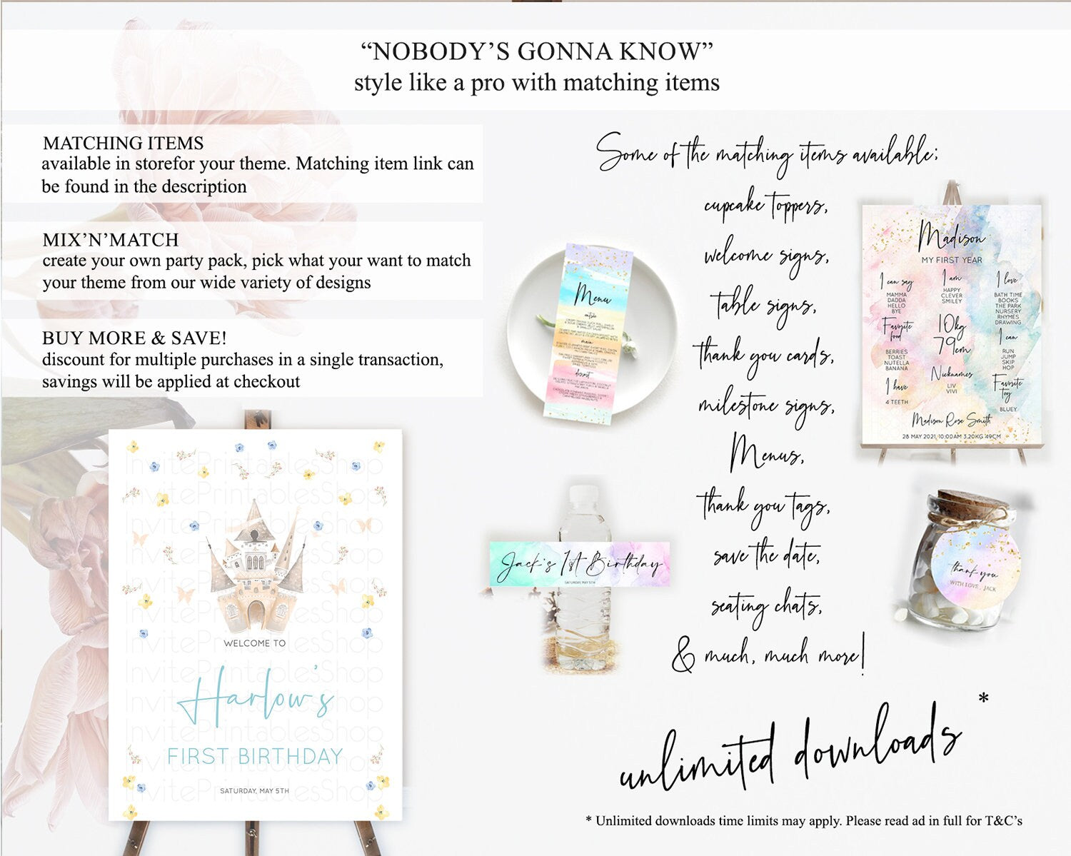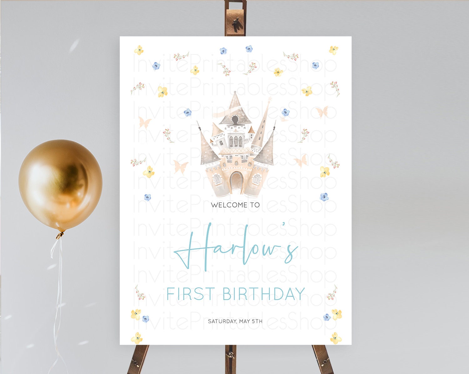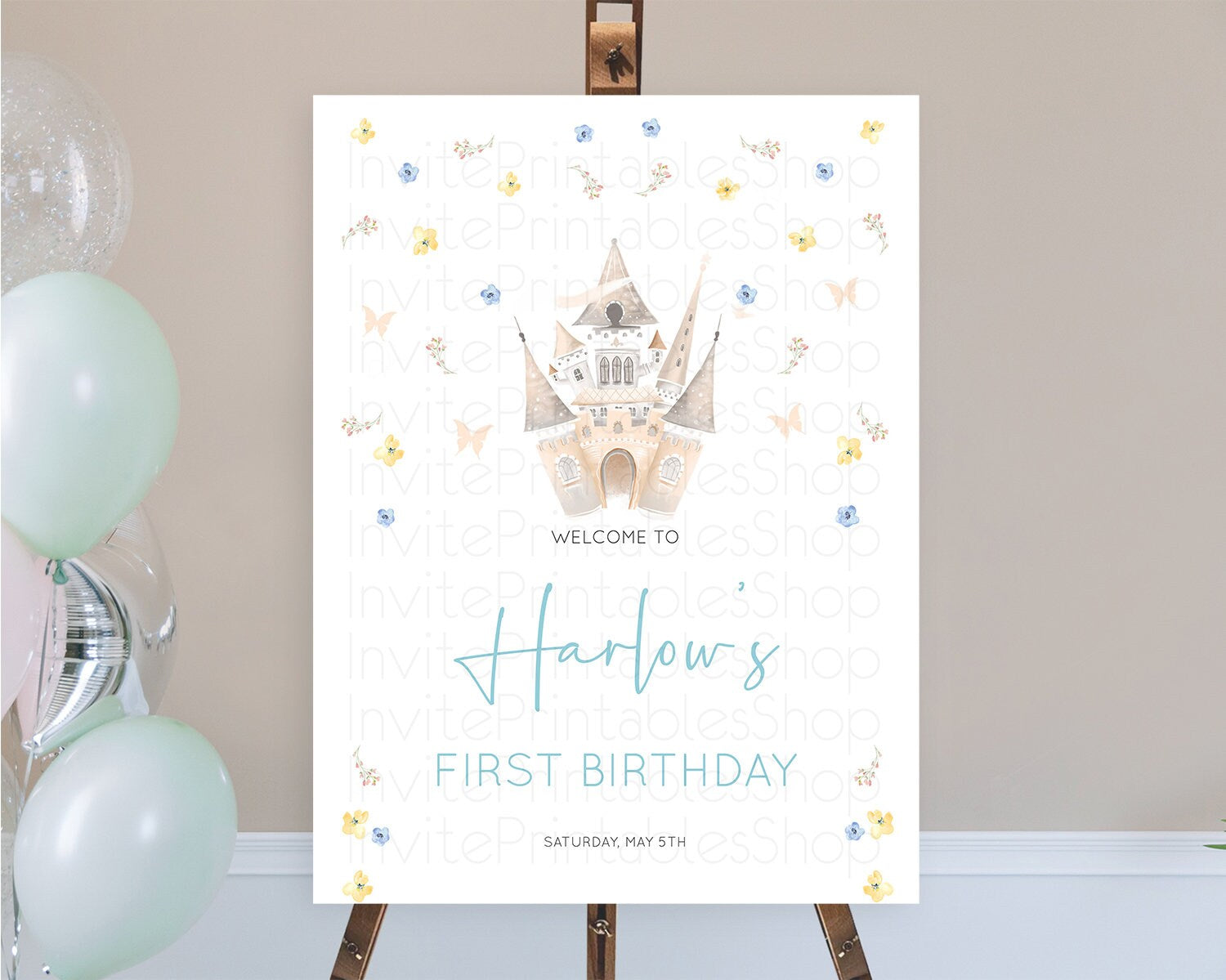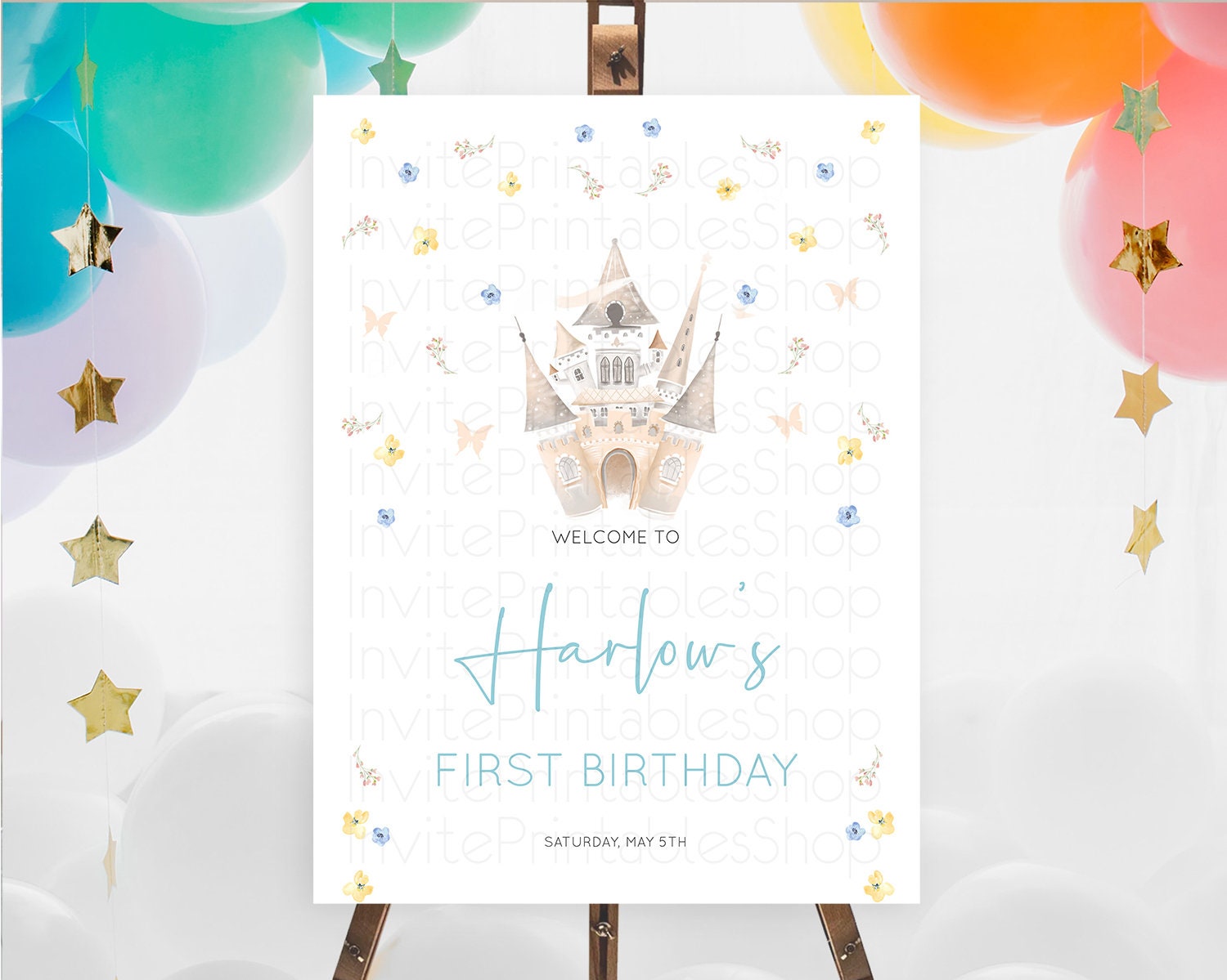 Princess Birthday Welcome Sign Castle Welcome Board Secret Garden Enchanted Castle Pastel Floral Garden First Birthday Welcome Sign D10365