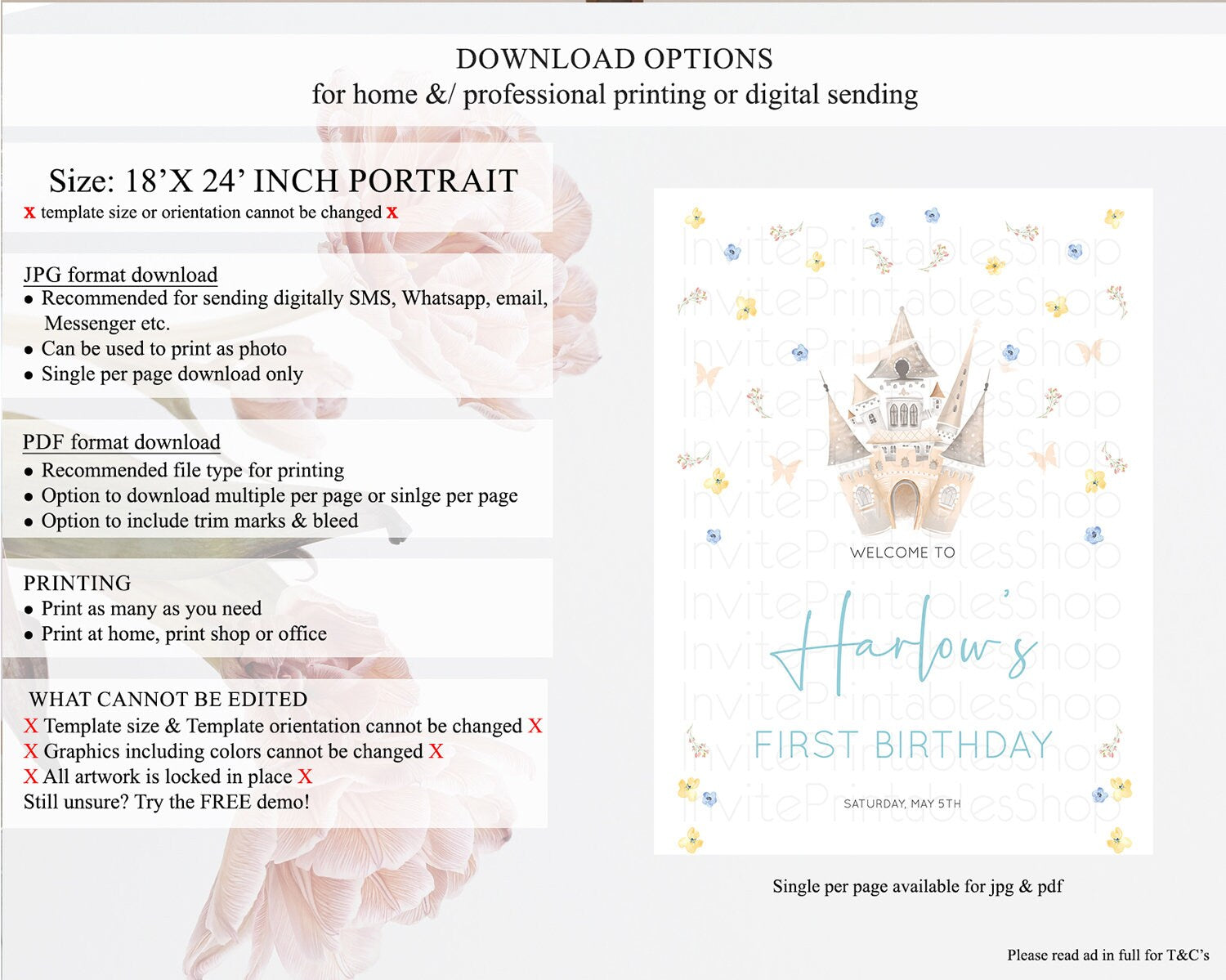 • Template size & orientation cannot be changed. Please use the demo link to confirm this product suits your needs.
