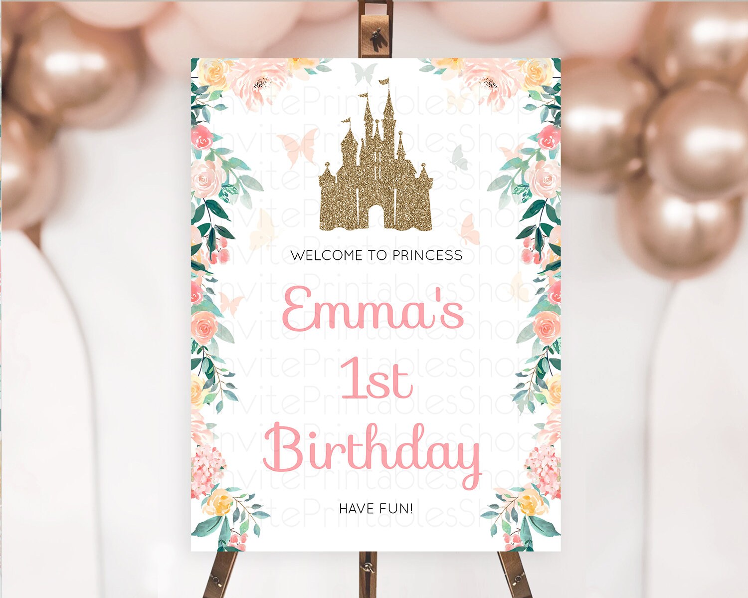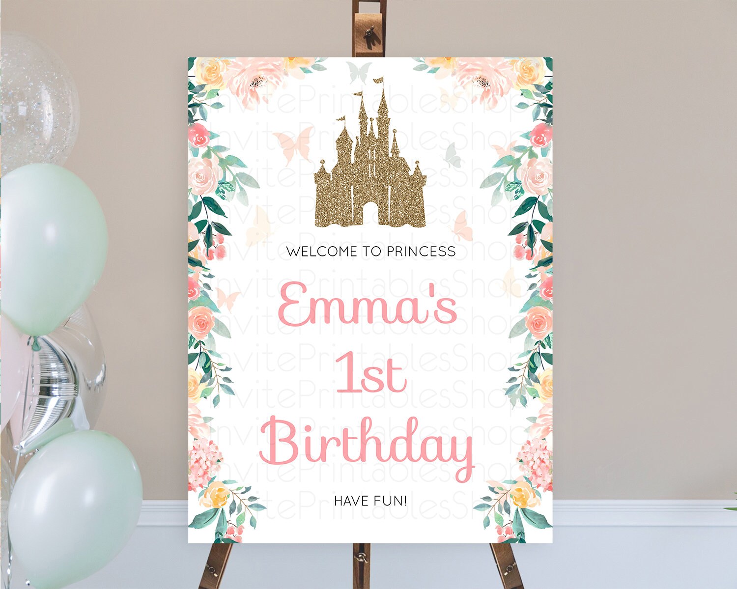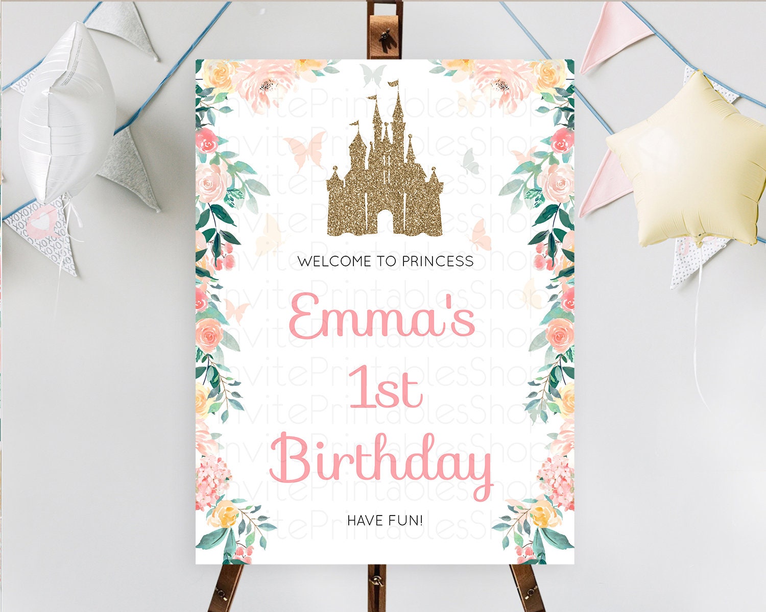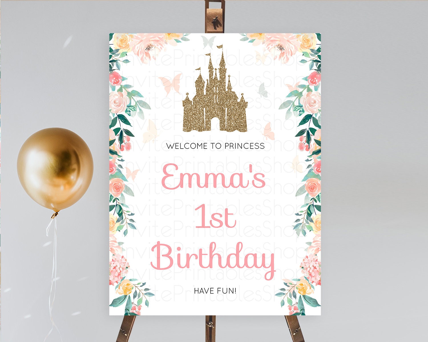 Princess Birthday Welcome Sign Castle Welcome Board Secret Garden Enchanted Castle Pastel Floral Garden First Birthday Welcome Sign D10429