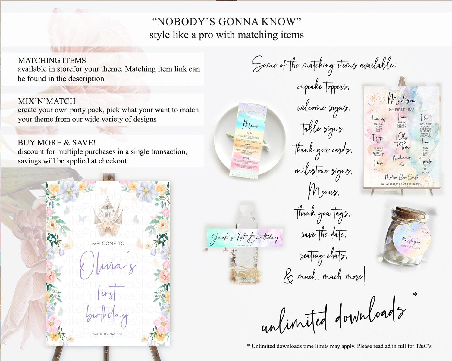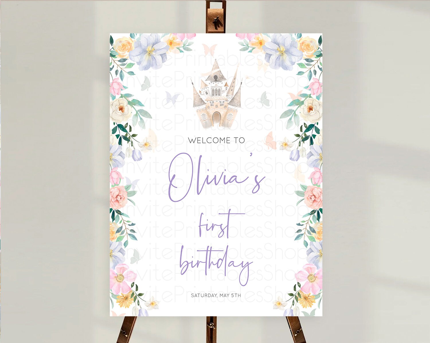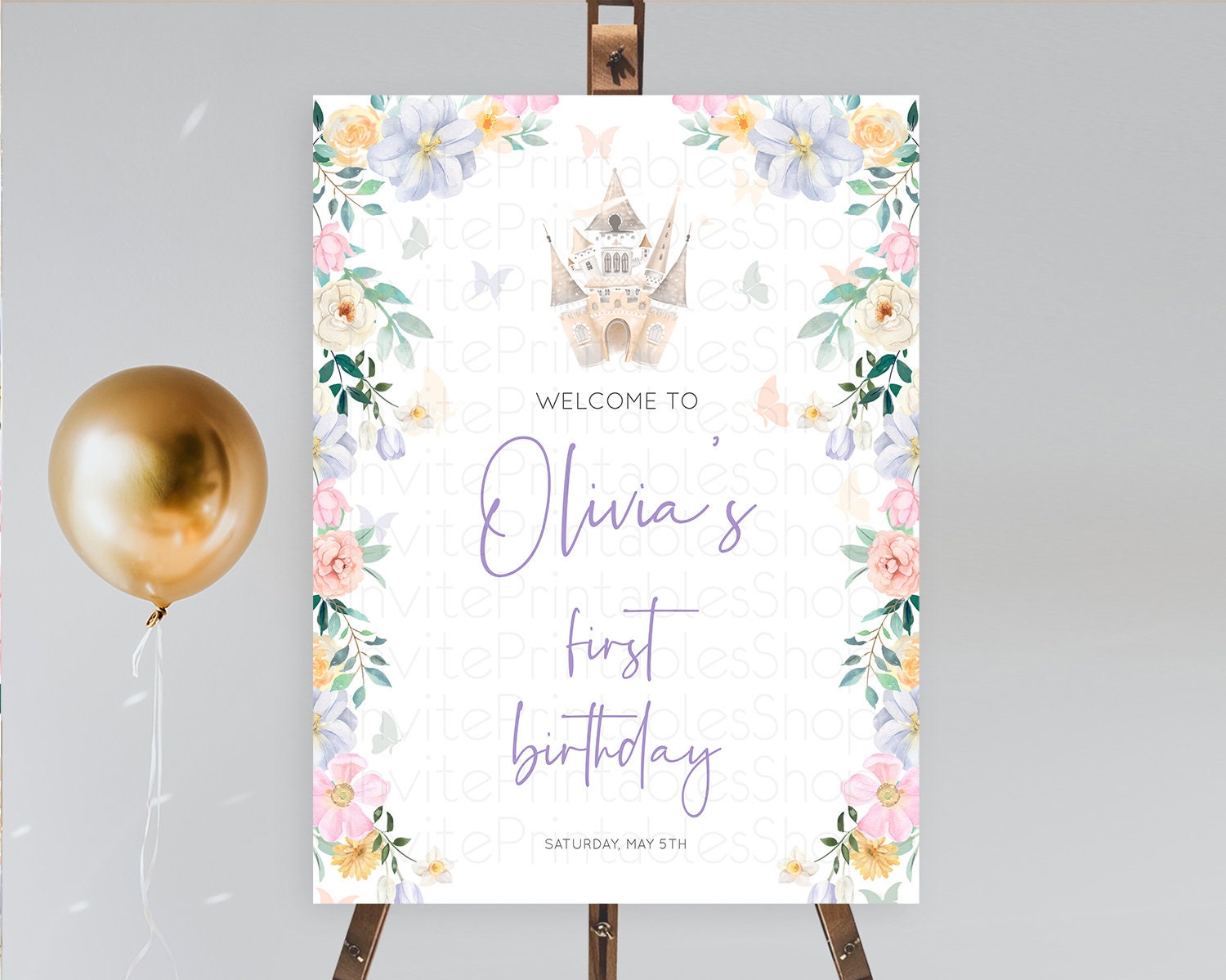 Princess Birthday Welcome Sign Castle Welcome Board Secret Garden Enchanted Castle Pastel Floral Garden First Birthday Welcome Sign D10473