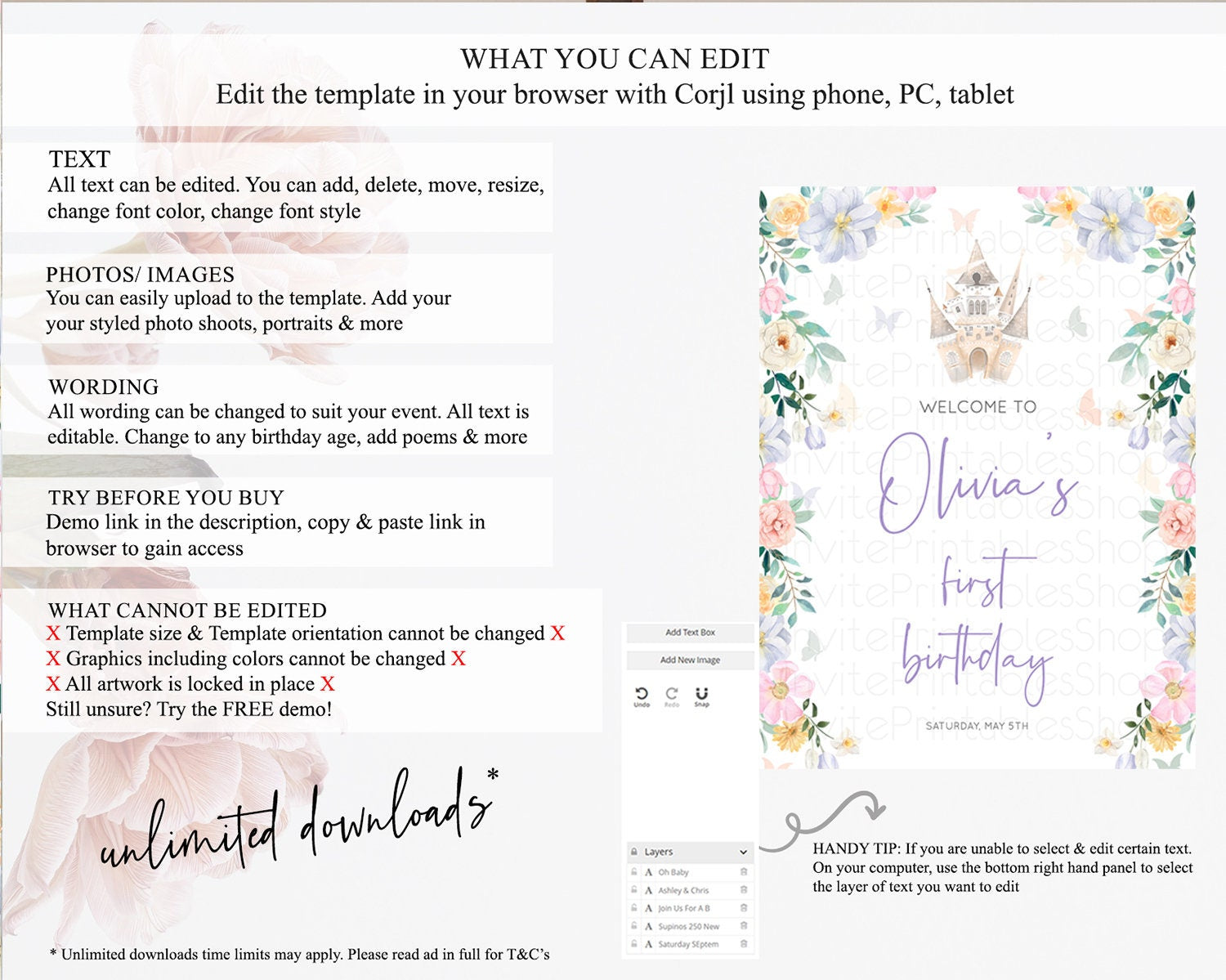 • After purchase, Corjl emails your editing link. Allow up to 15 minutes for delivery.