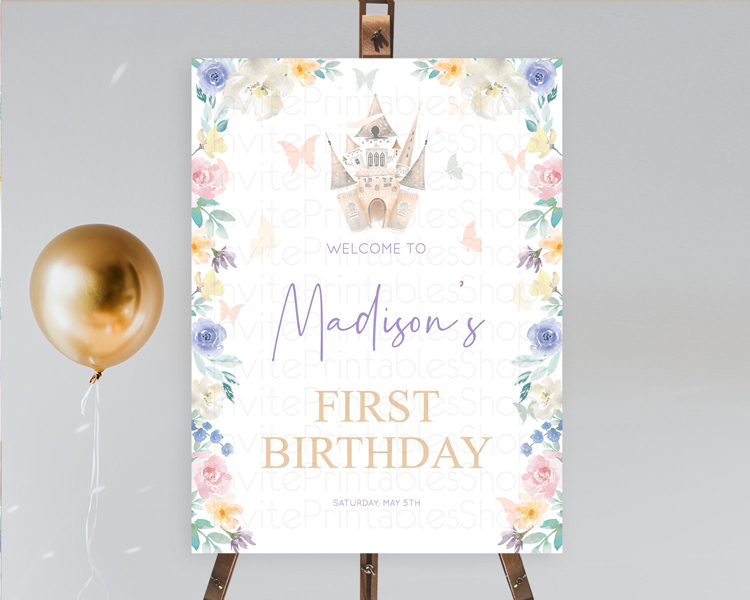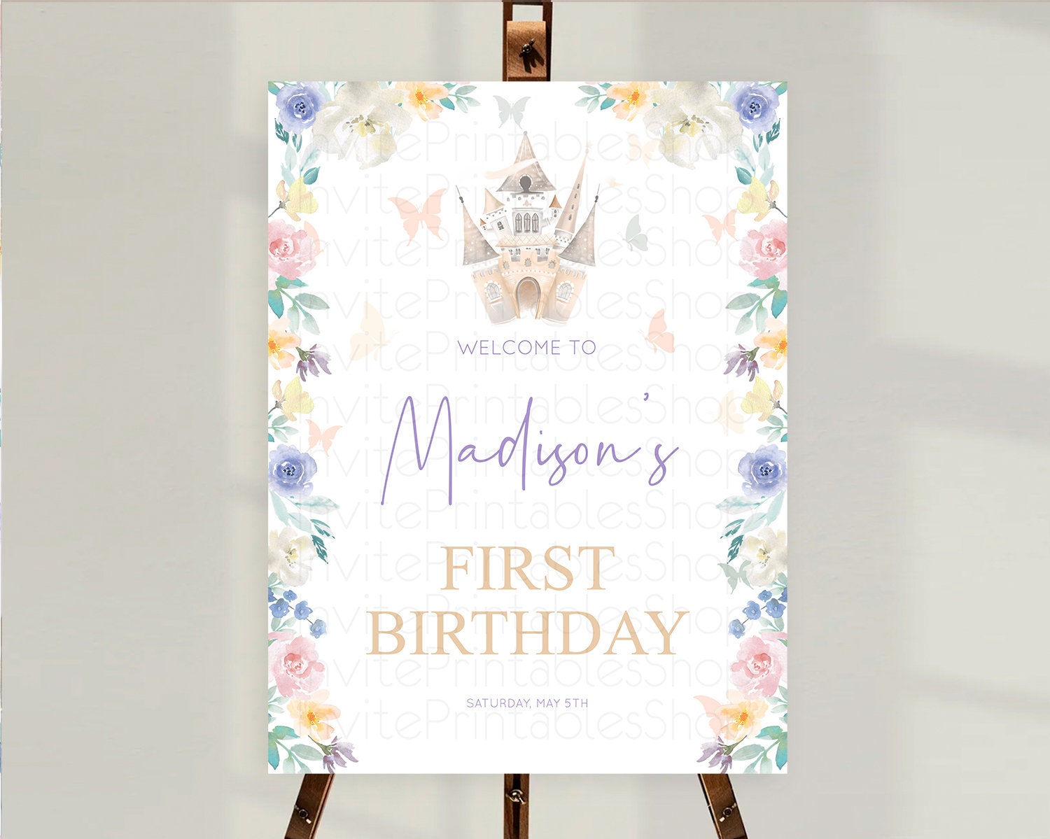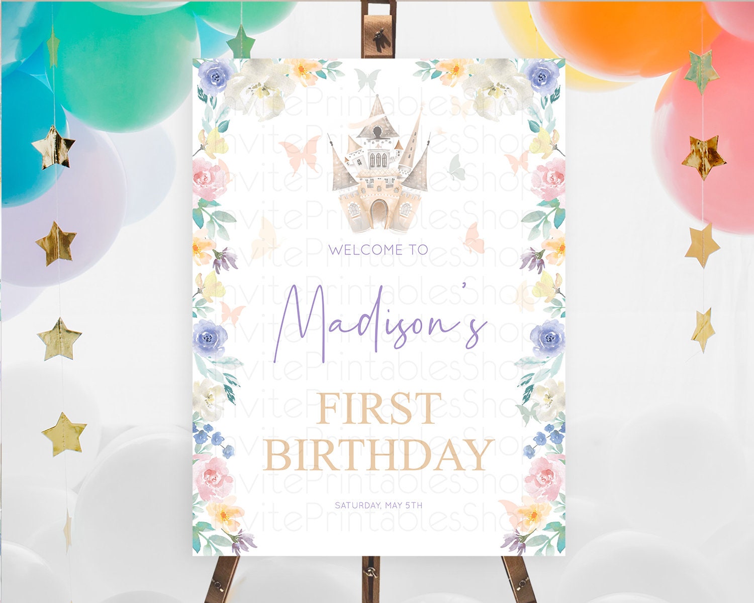 Princess Birthday Welcome Sign Castle Welcome Board Secret Garden Enchanted Castle Pastel Floral Garden First Birthday Welcome Sign D10709