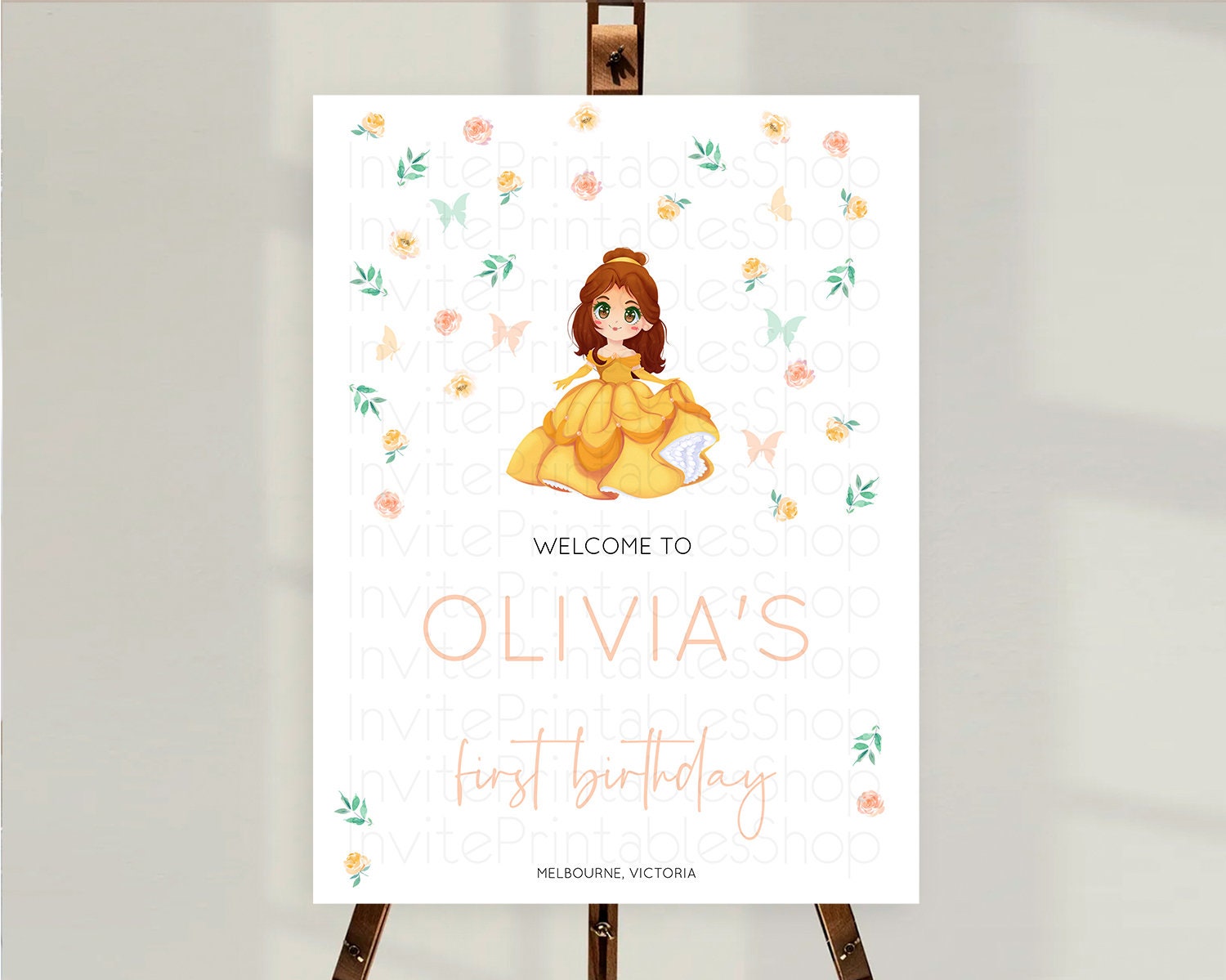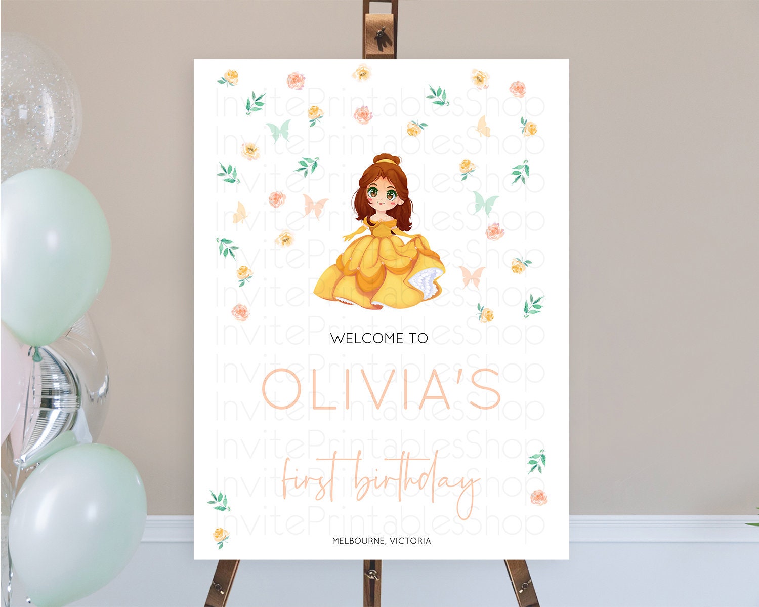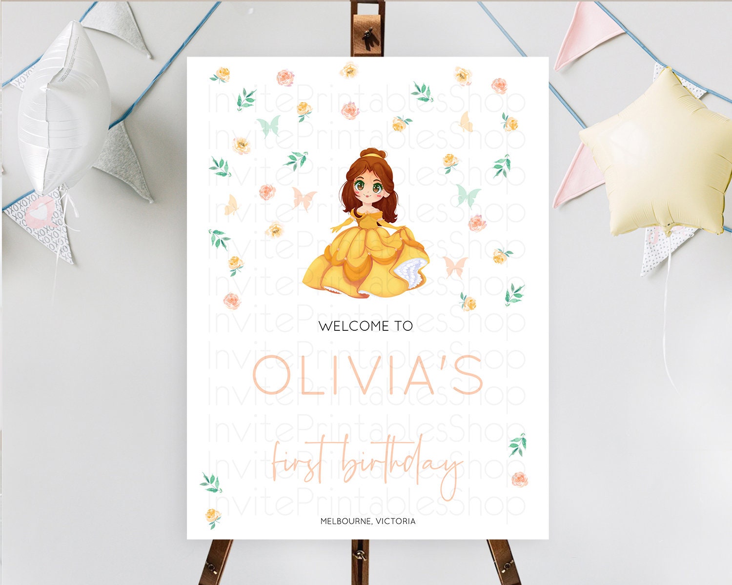Princess Birthday Welcome Sign Castle Welcome Board Secret Garden Enchanted Castle Pastel Floral Garden First Birthday Welcome Sign D10890