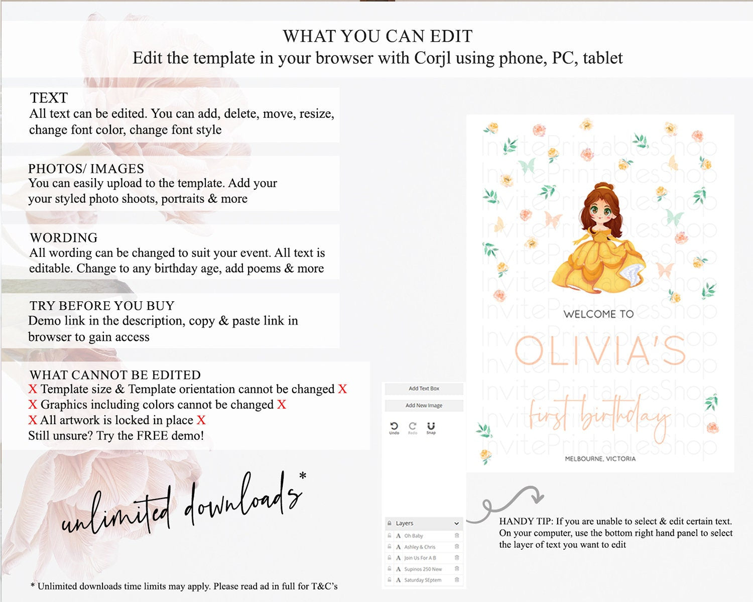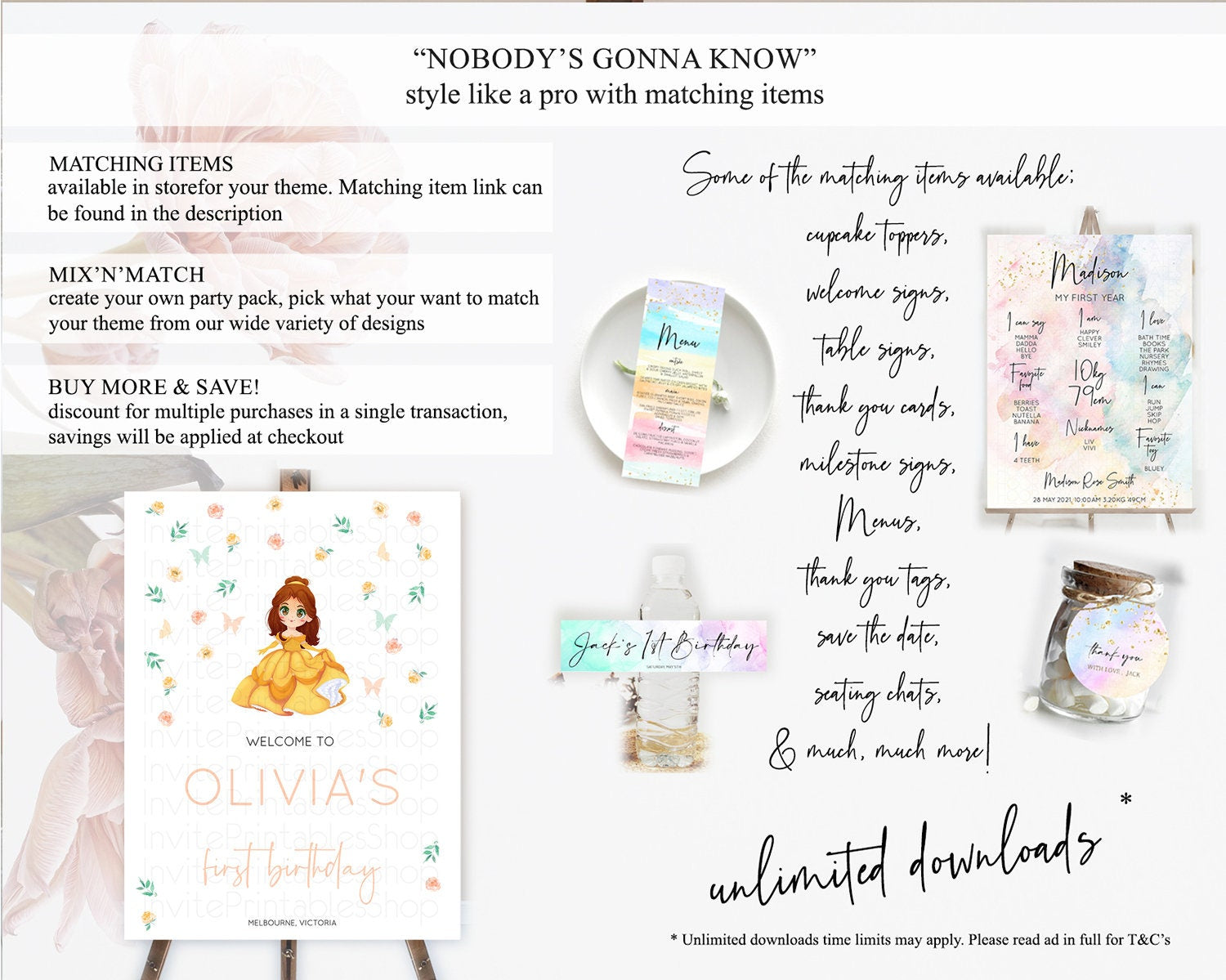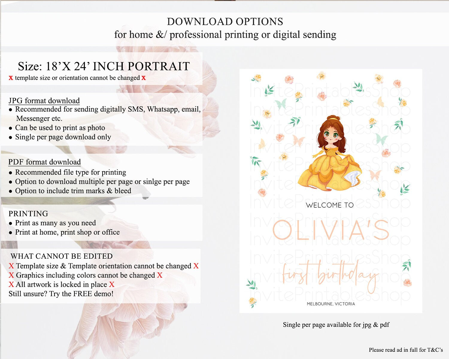 Princess Birthday Welcome Sign Castle Welcome Board Secret Garden Enchanted Castle Pastel Floral Garden First Birthday Welcome Sign D10890