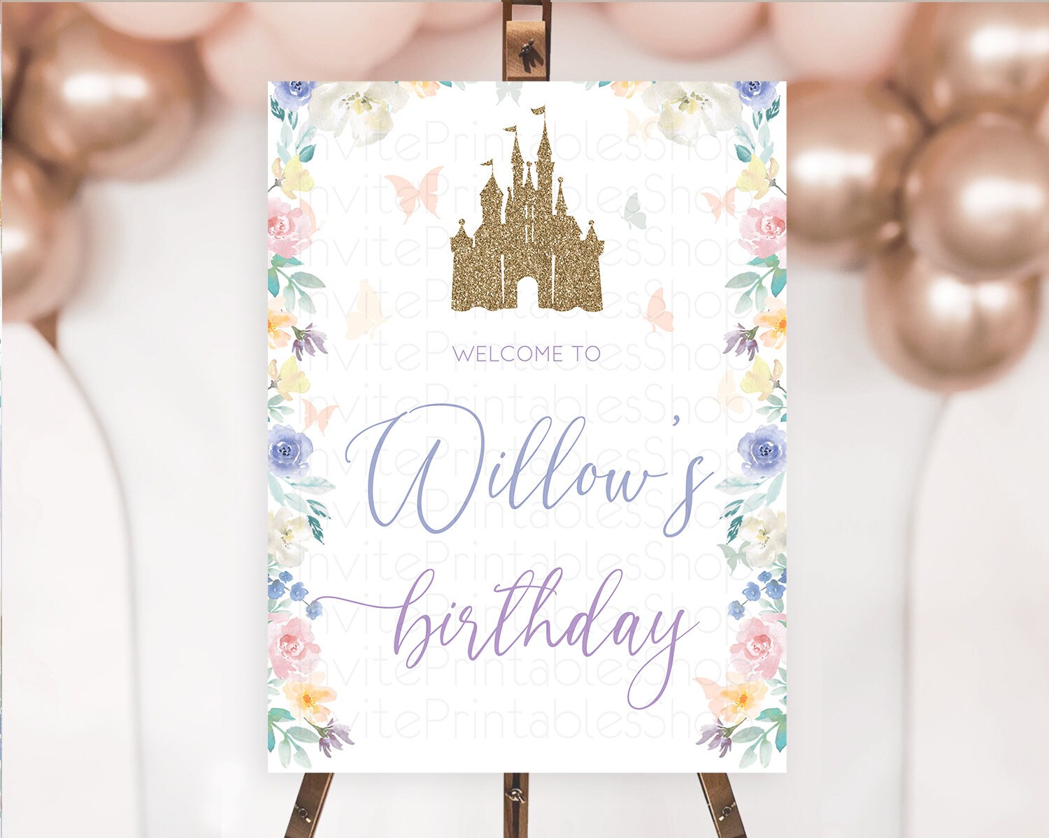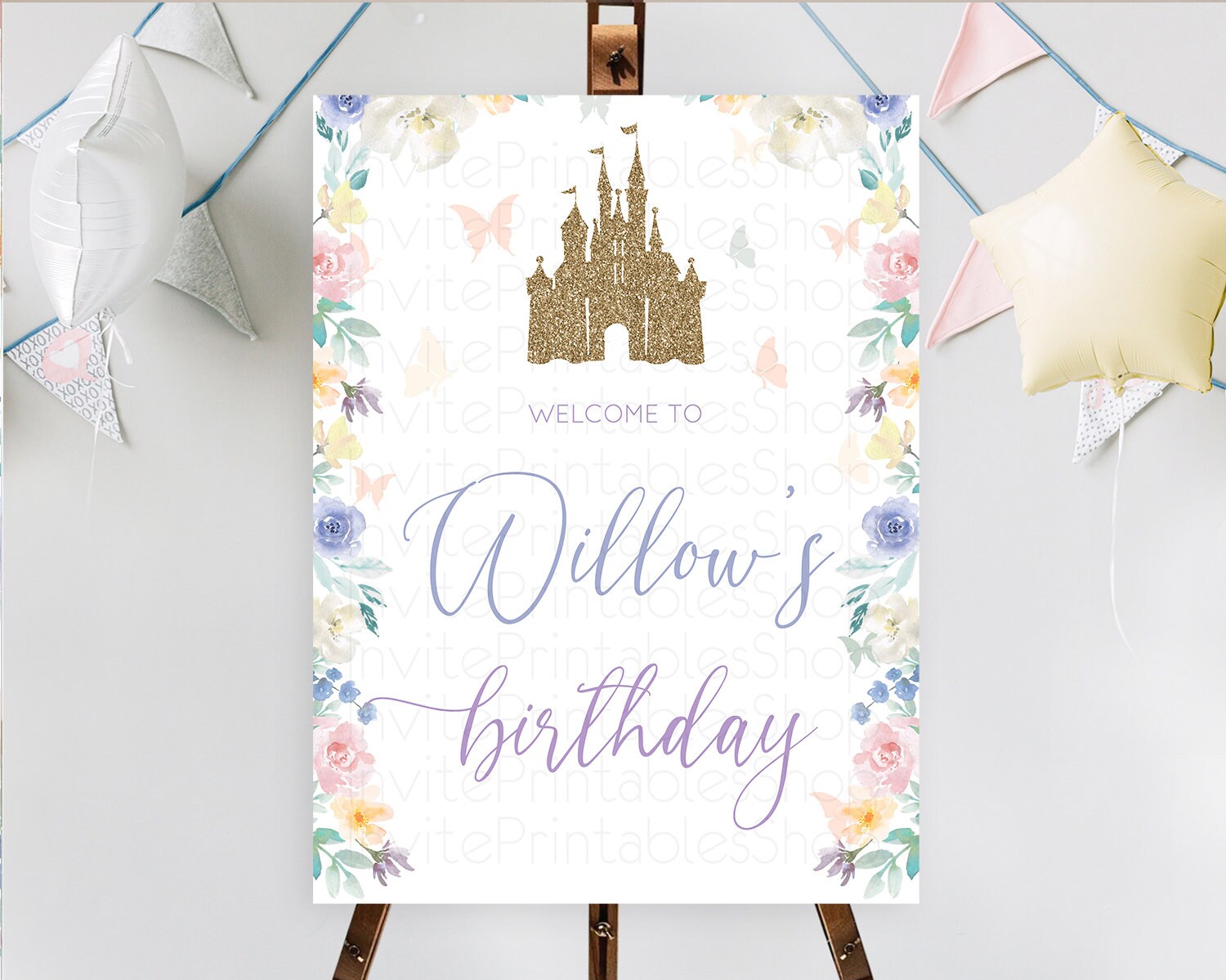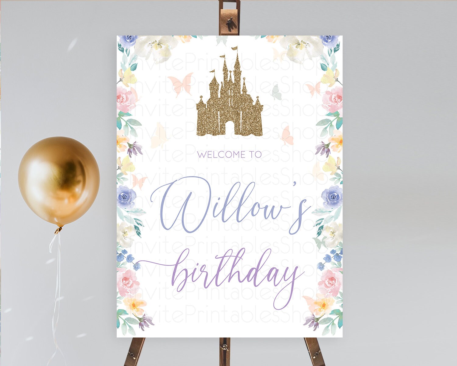 Princess Birthday Welcome Sign Castle Welcome Board Secret Garden Enchanted Castle Pastel Floral Garden First Birthday Welcome Sign D10931