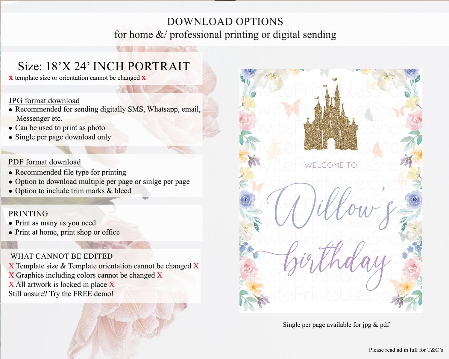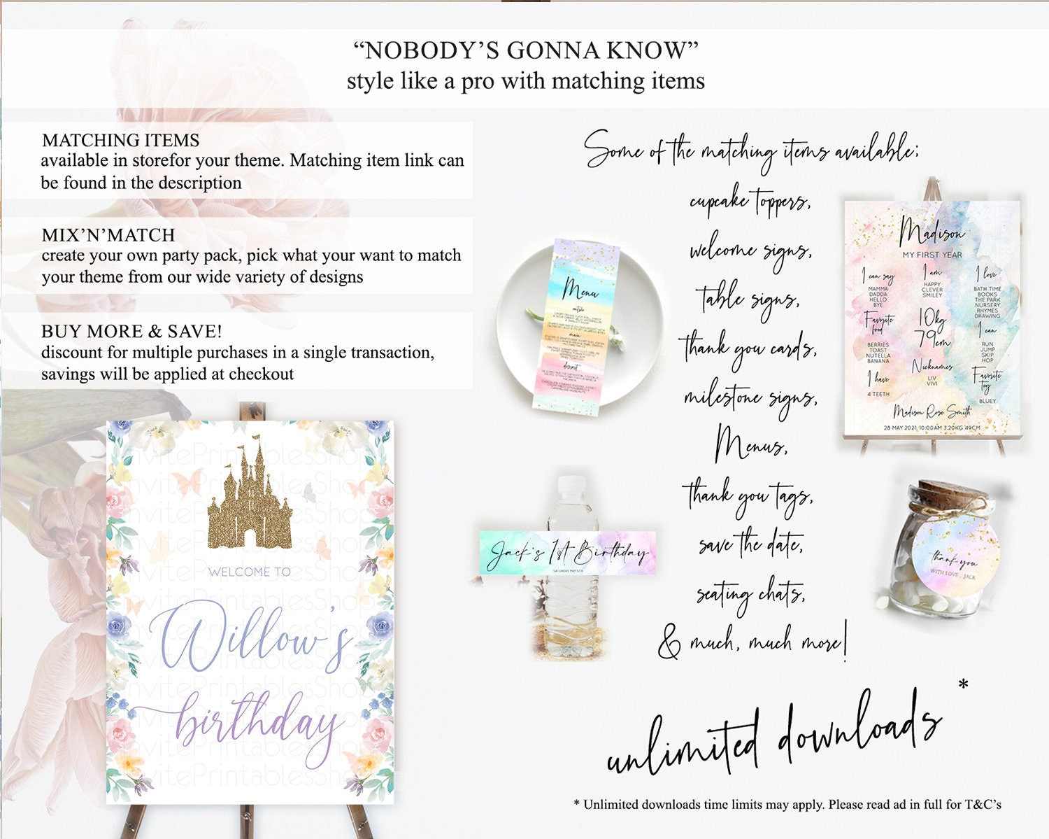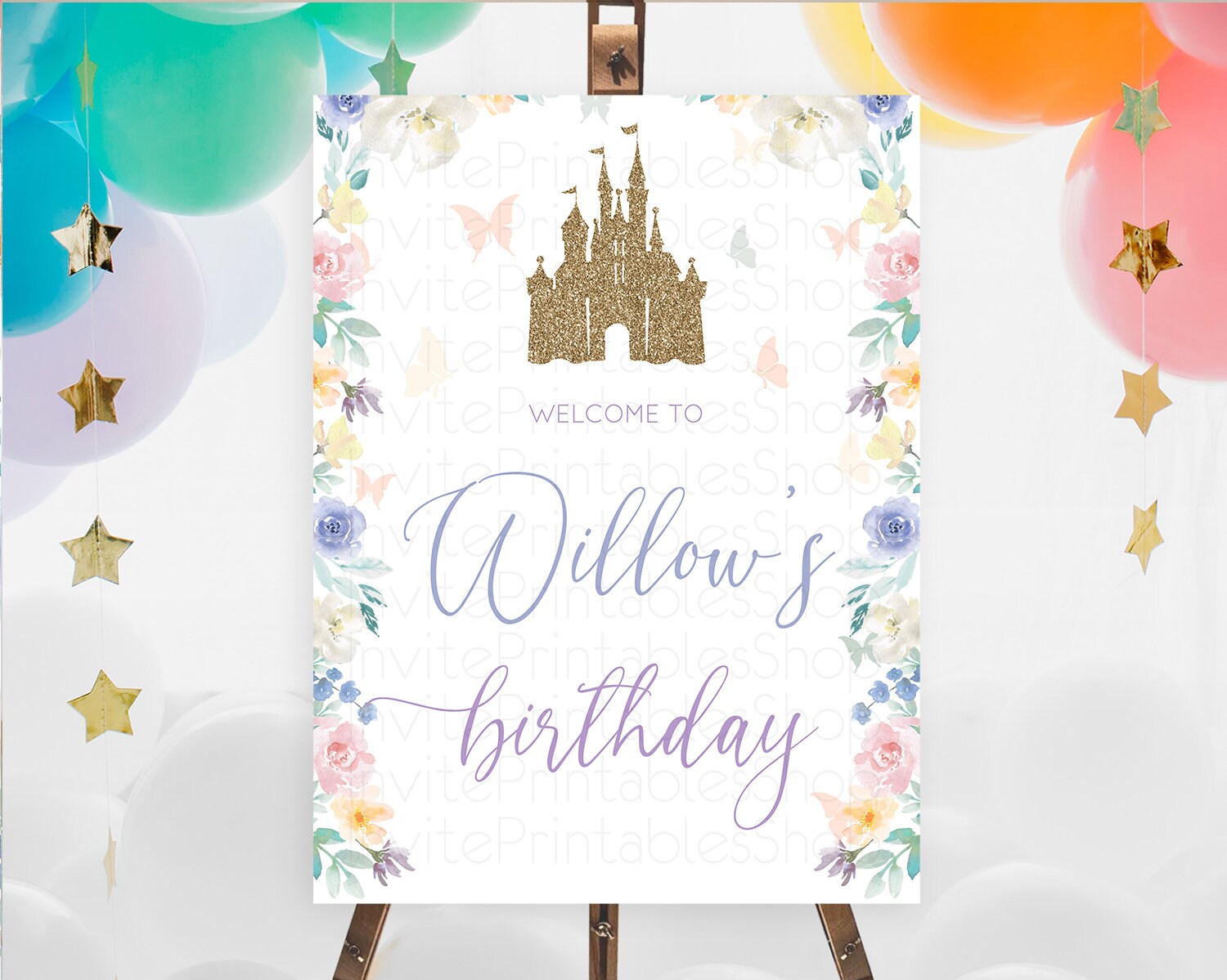 Princess Birthday Welcome Sign Castle Welcome Board Secret Garden Enchanted Castle Pastel Floral Garden First Birthday Welcome Sign D10931