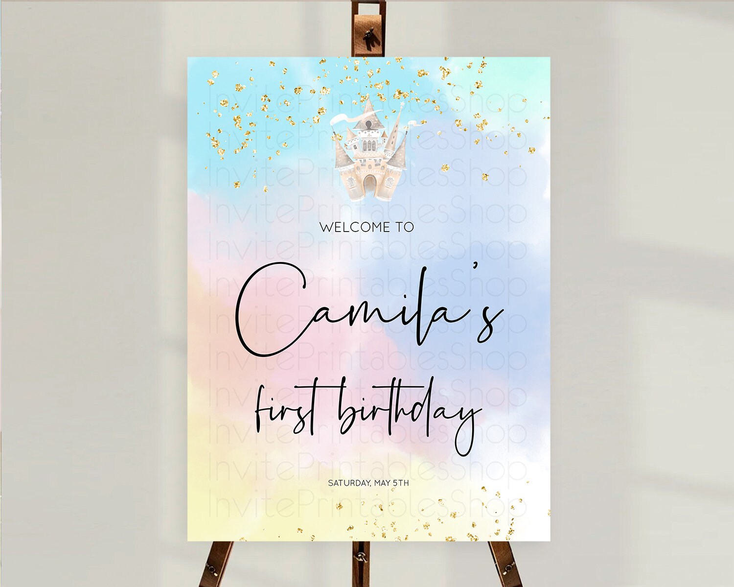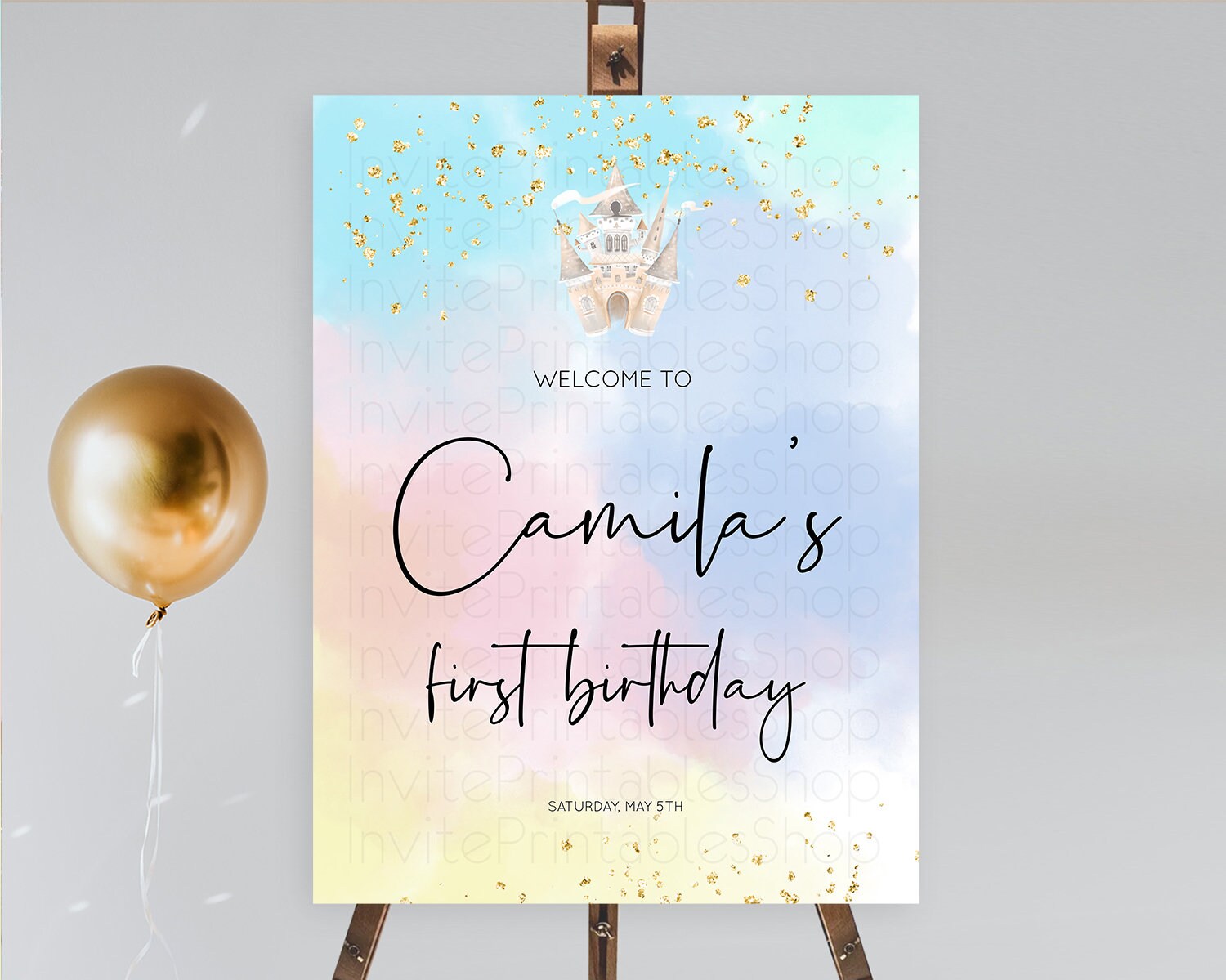 Princess Birthday Welcome Sign Pastel Princess Welcome Board Pastel Rainbow Colorful Enchanted Castle First Birthday Welcome Sign D10376
