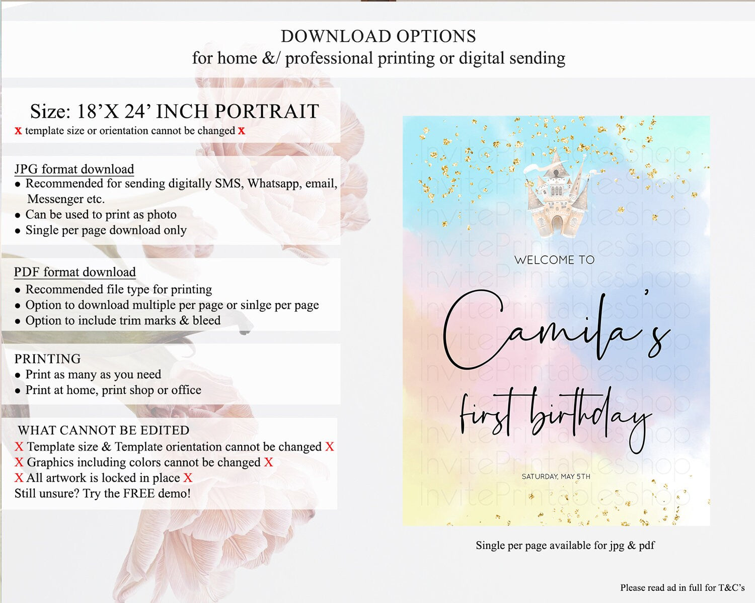 • Template size & orientation cannot be changed. Please use the demo link to confirm this product suits your needs.