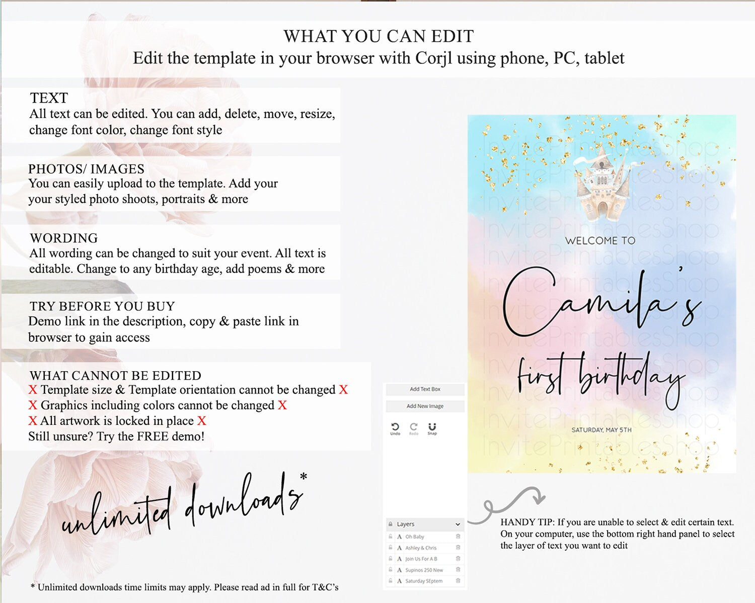 • After purchase, Corjl emails your editing link. Allow up to 15 minutes for delivery.