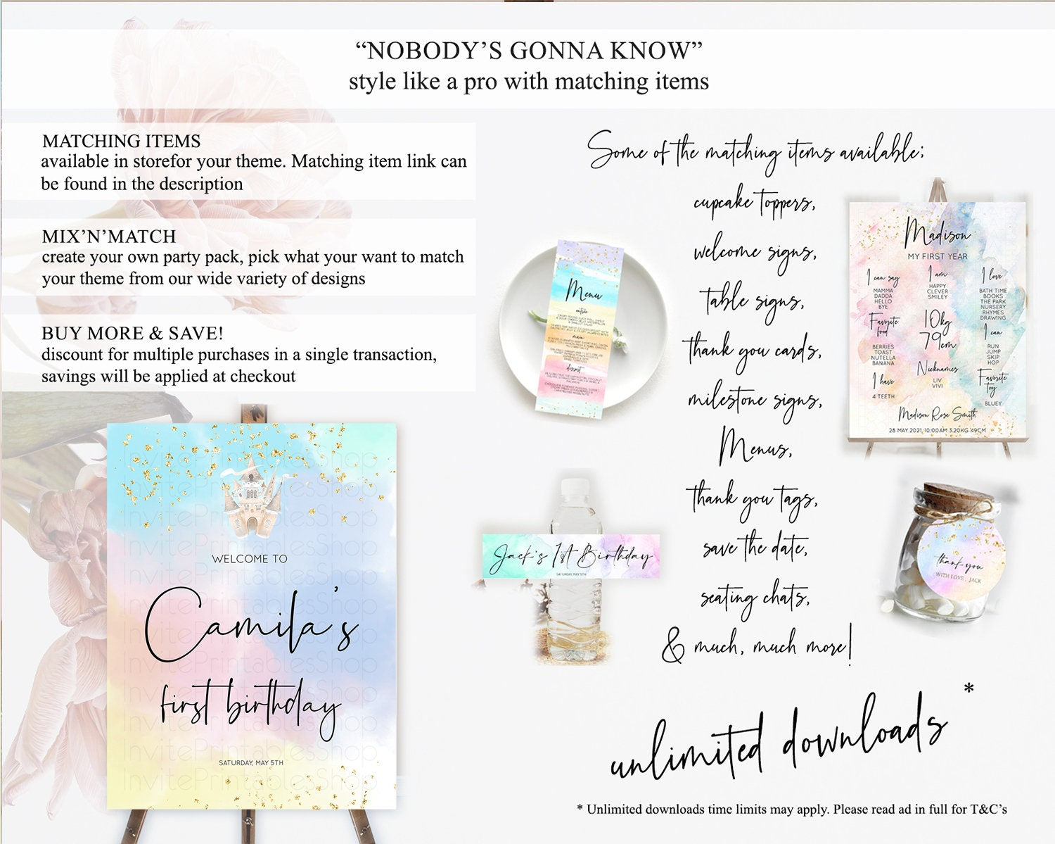 • Content shown in your gallery images is the source of truth for what’s included.