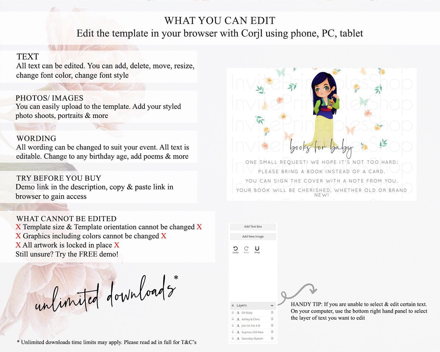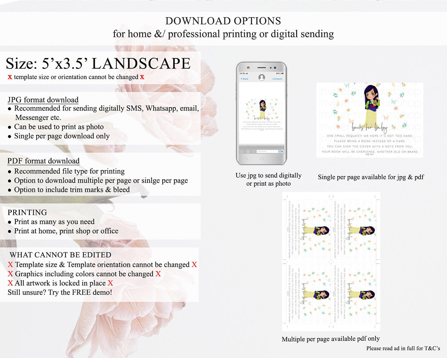 • Template size & orientation cannot be changed. Please use the demo link to confirm this product suits your needs.