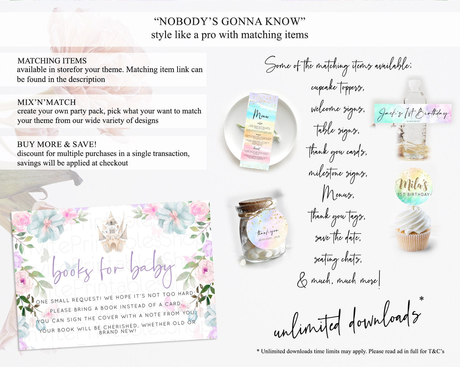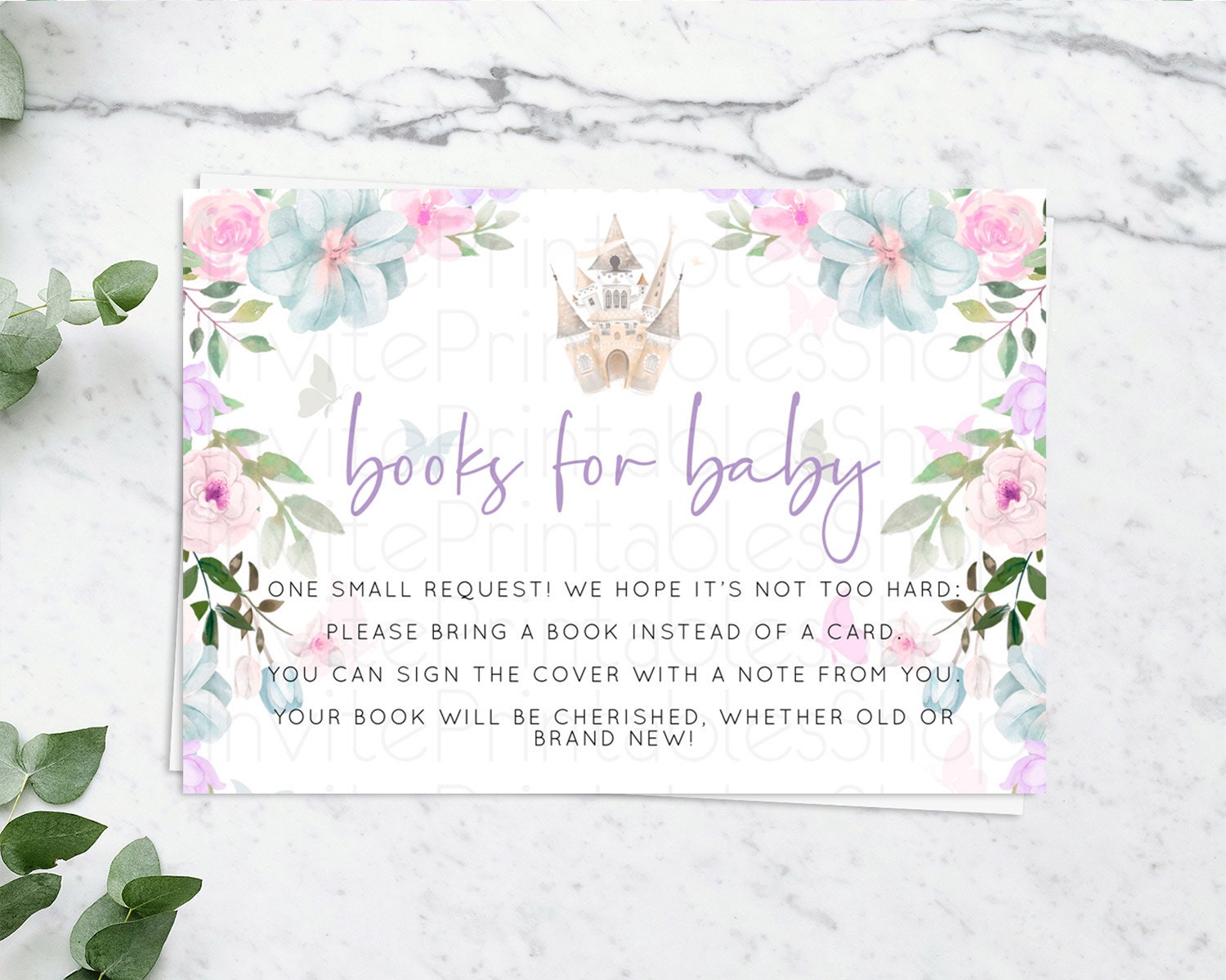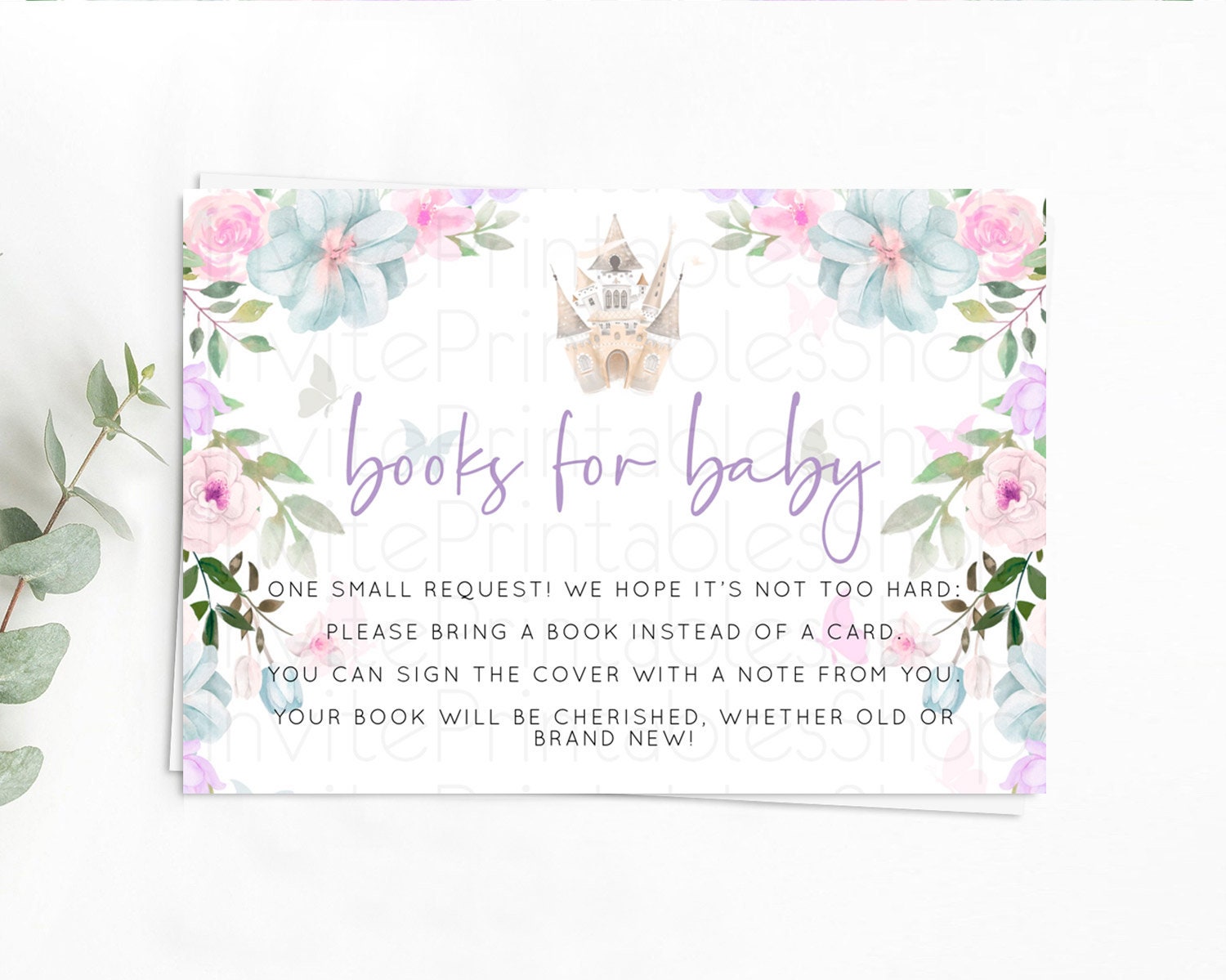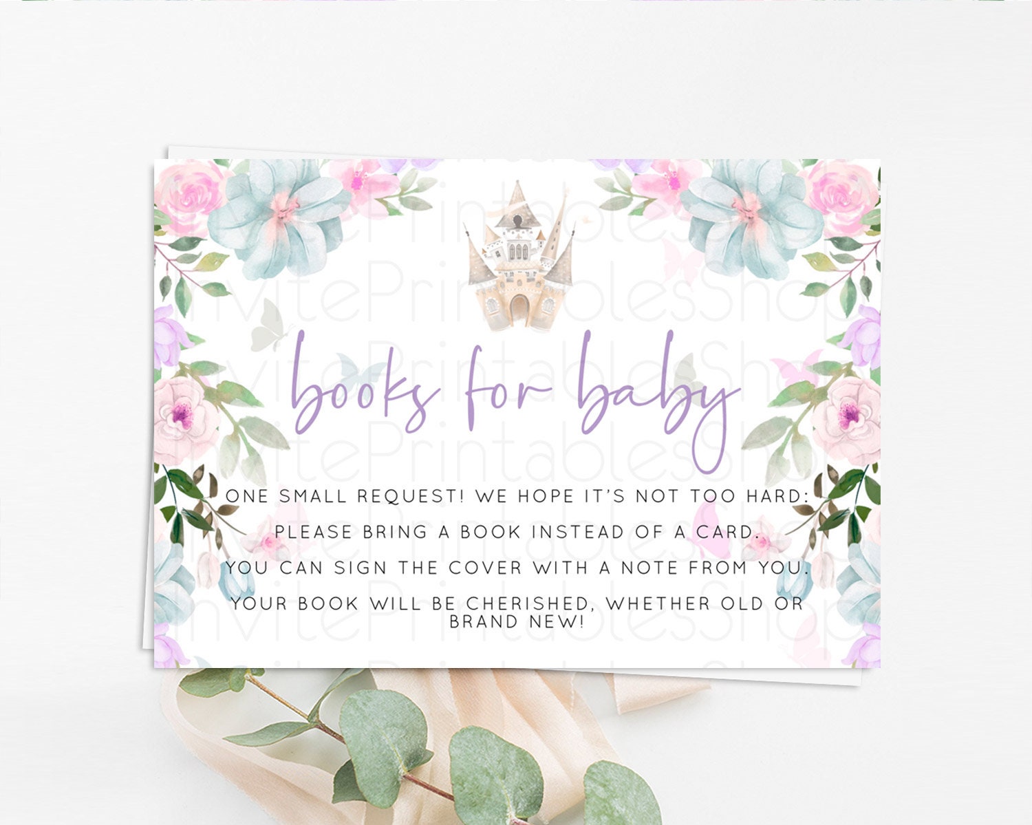 Princess Books For Baby Card Castle Book Card Insert Secret Garden Enchanted Castle Pastel Floral Garden Baby Shower Poem Request D10471
