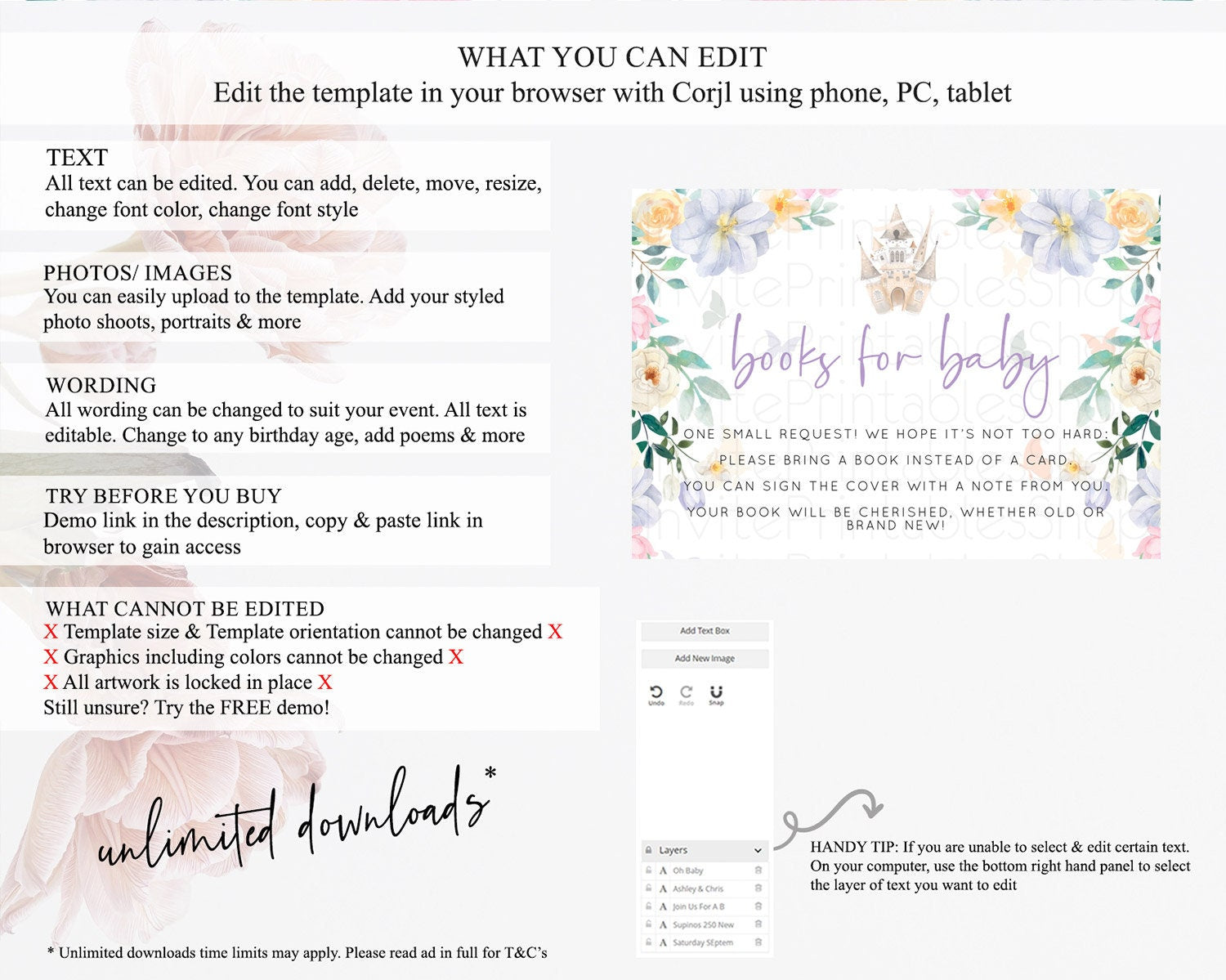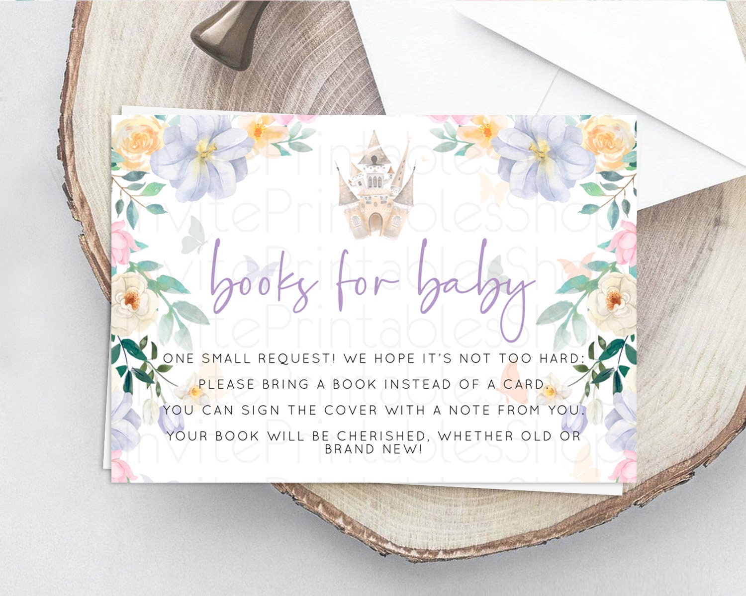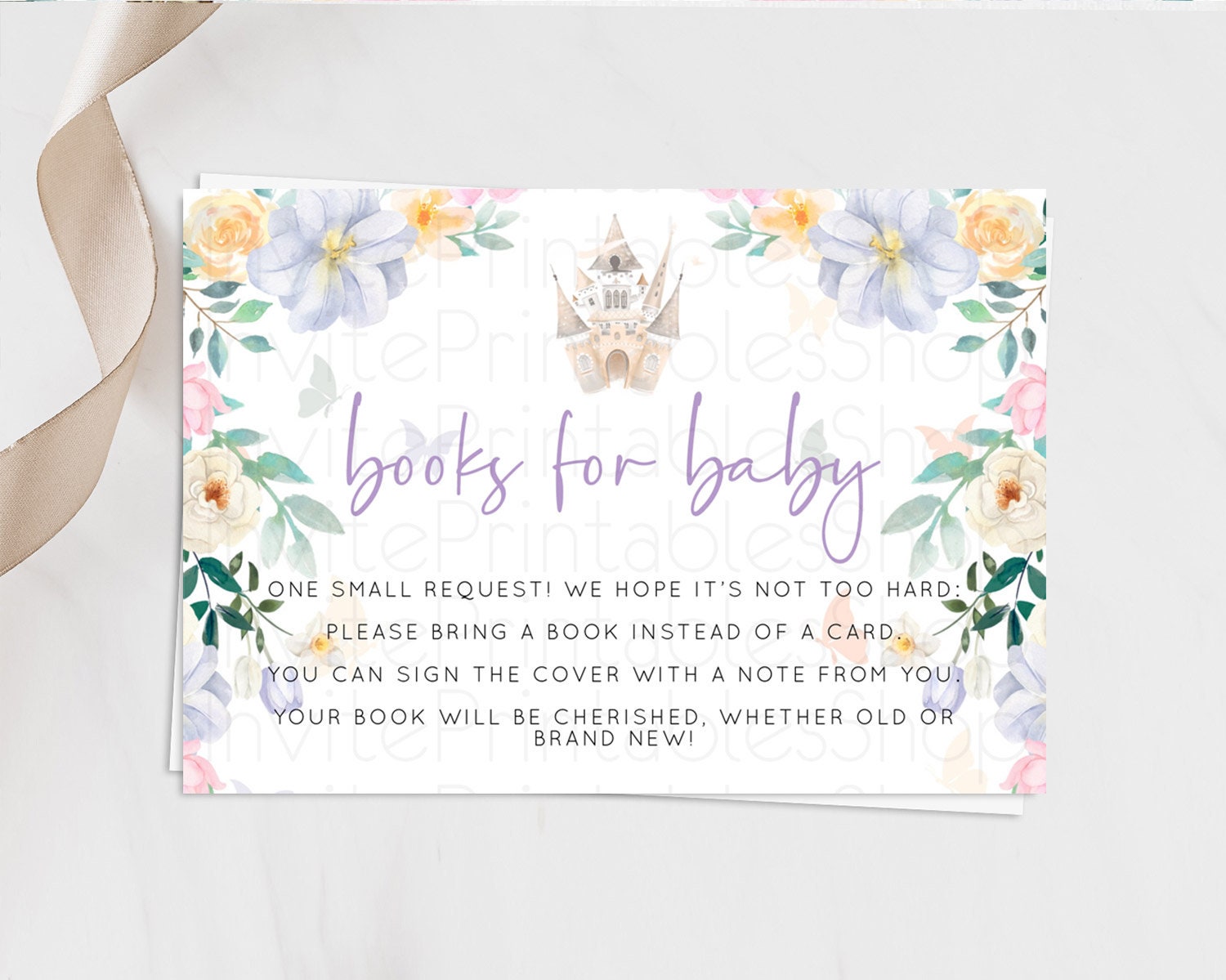 Princess Books For Baby Card Castle Book Card Insert Secret Garden Enchanted Castle Pastel Floral Garden Baby Shower Poem Request D10473