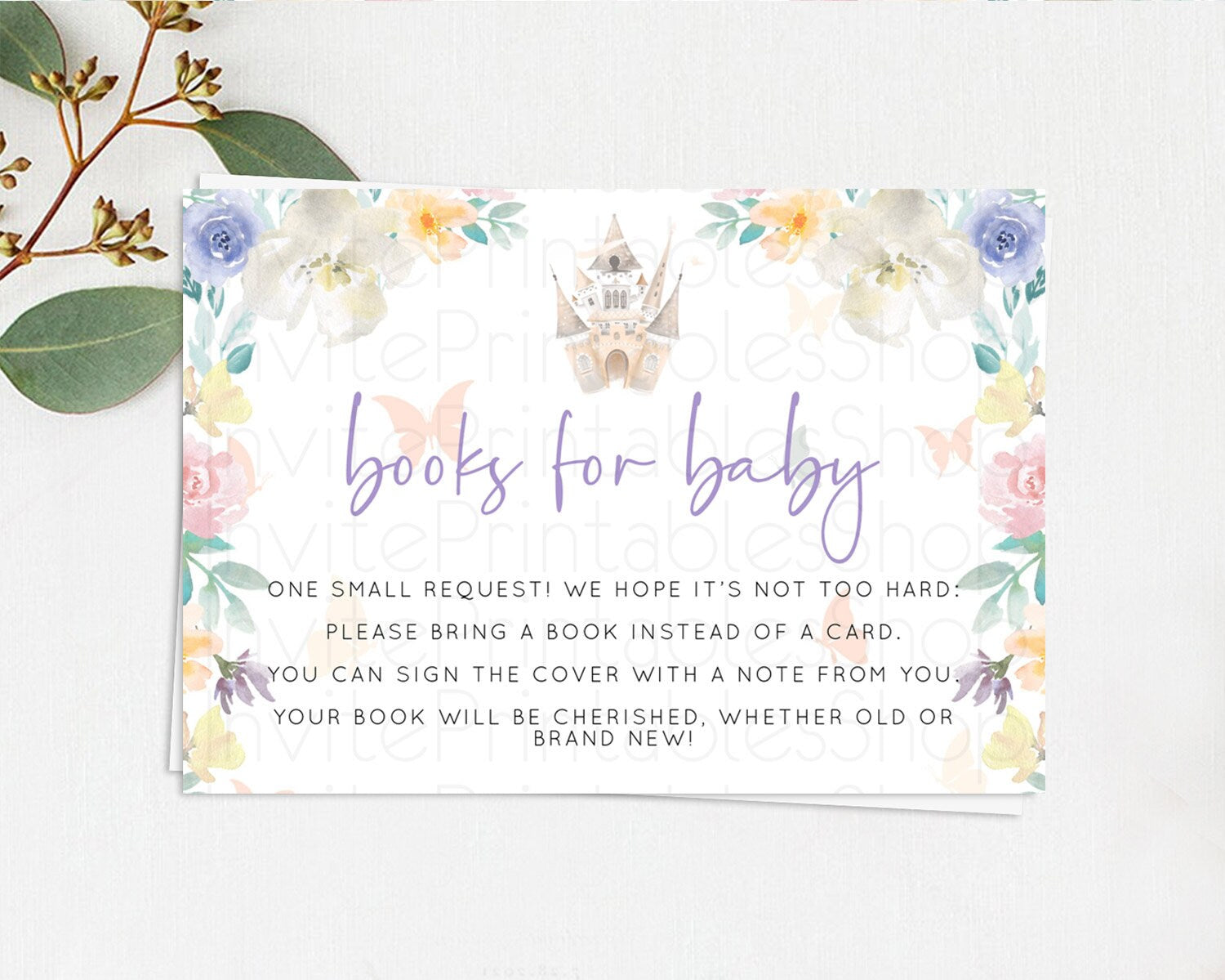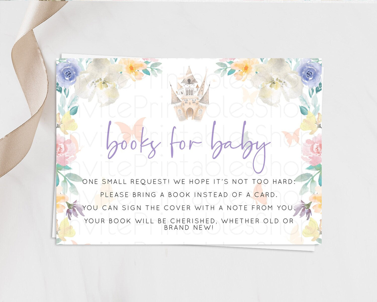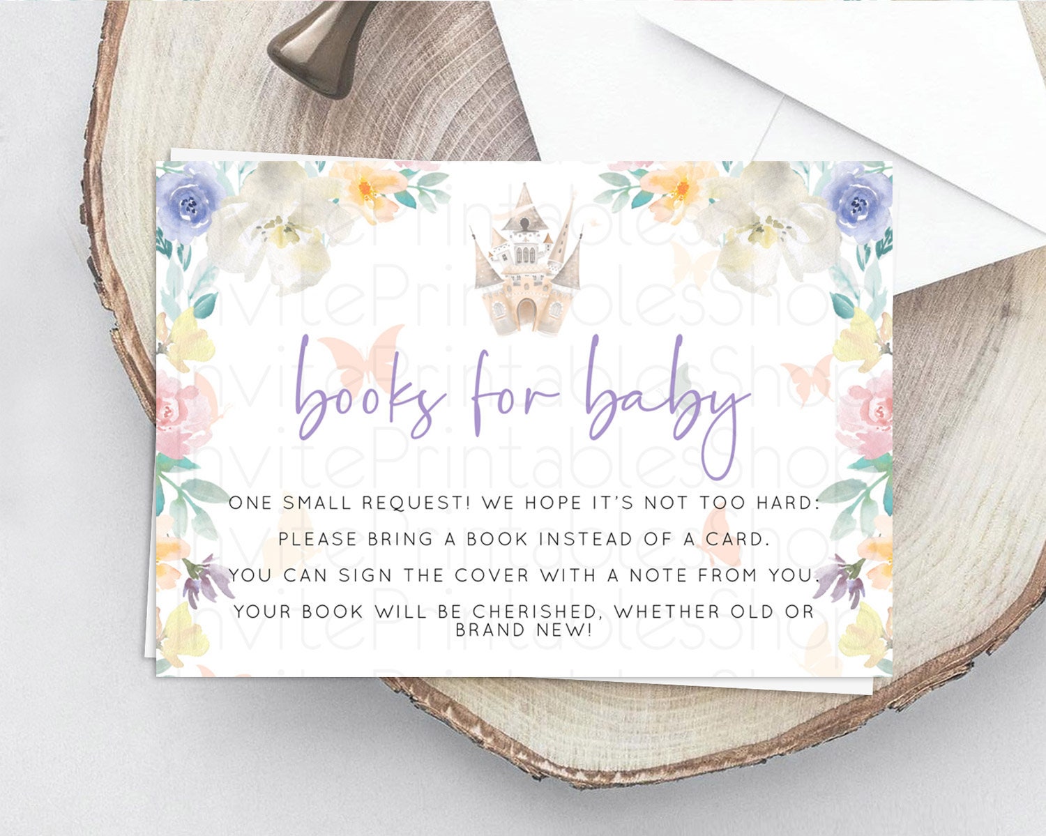 Princess Books For Baby Card Castle Book Card Insert Secret Garden Enchanted Castle Pastel Floral Garden Baby Shower Poem Request D10709