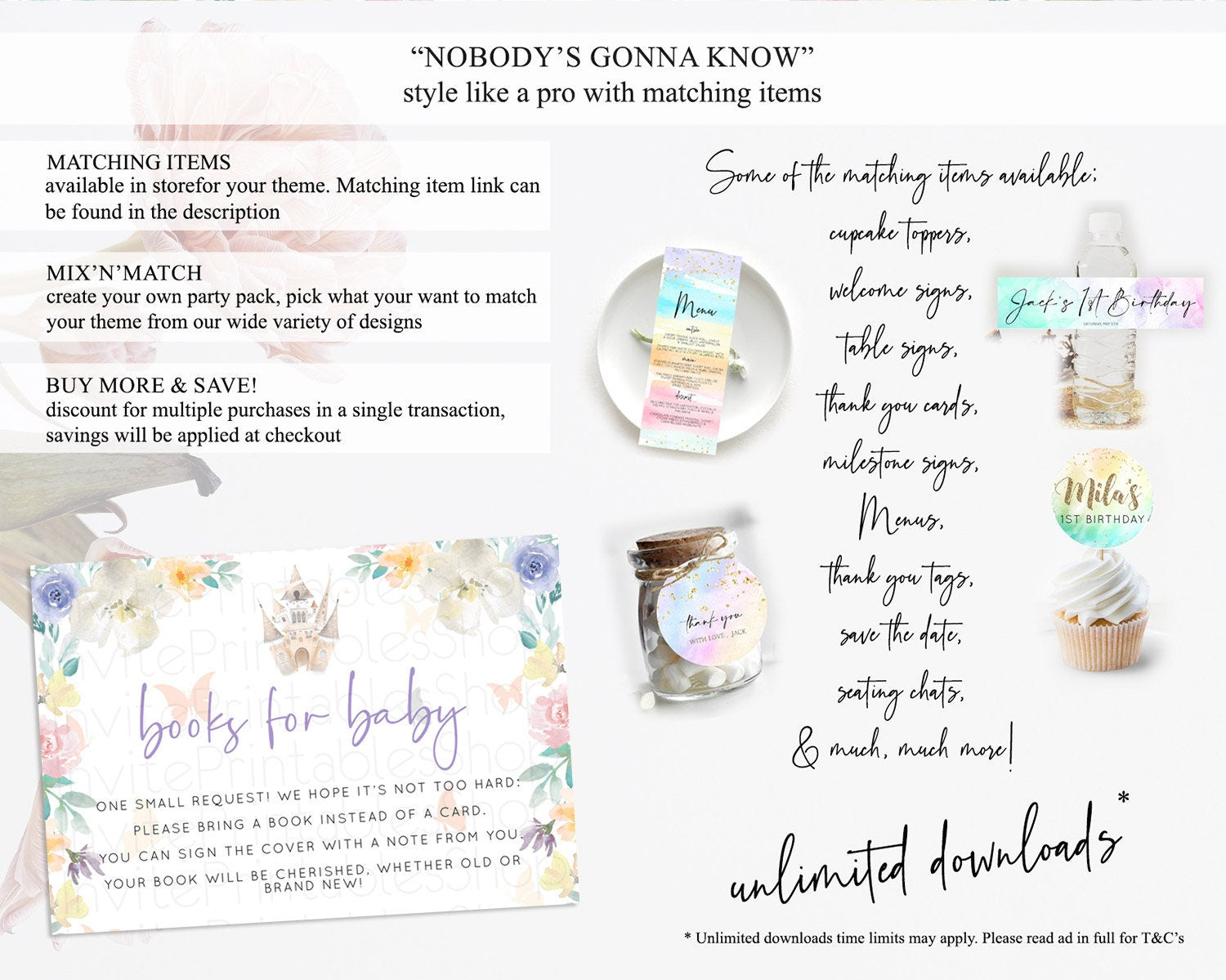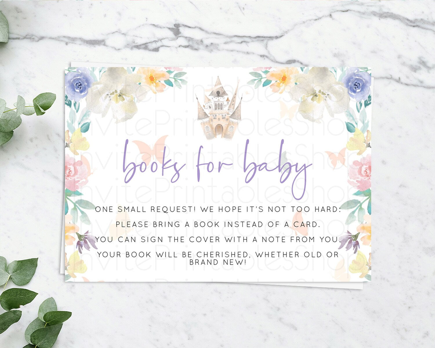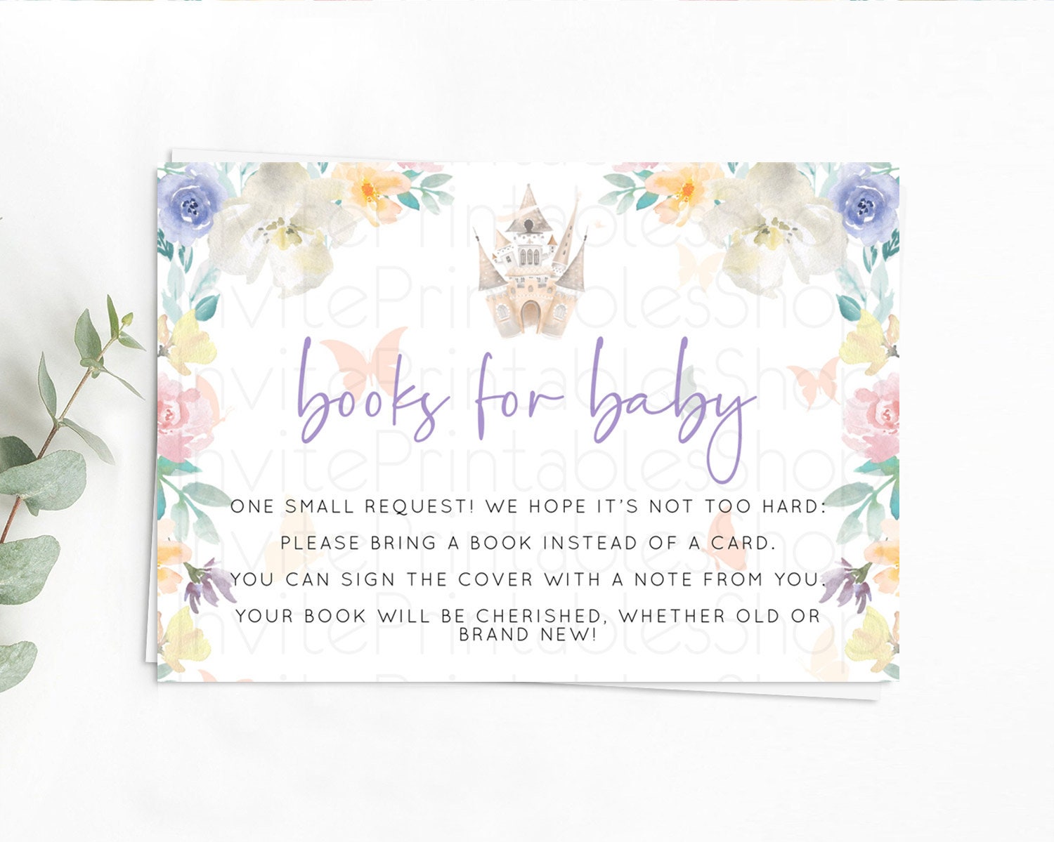 Princess Books For Baby Card Castle Book Card Insert Secret Garden Enchanted Castle Pastel Floral Garden Baby Shower Poem Request D10709