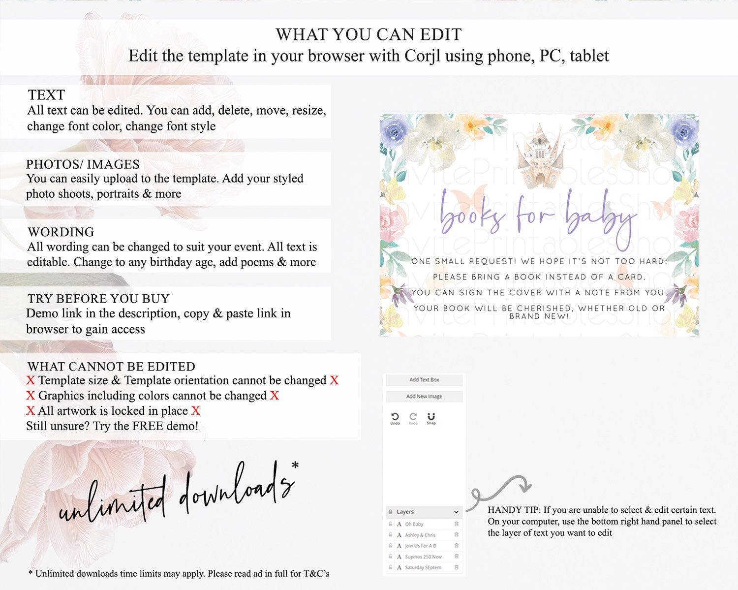 • After purchase, Corjl emails your editing link. Allow up to 15 minutes for delivery.